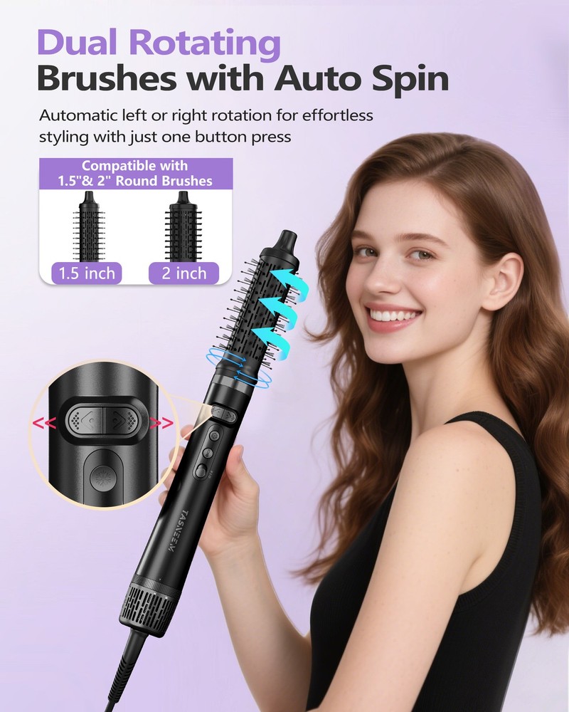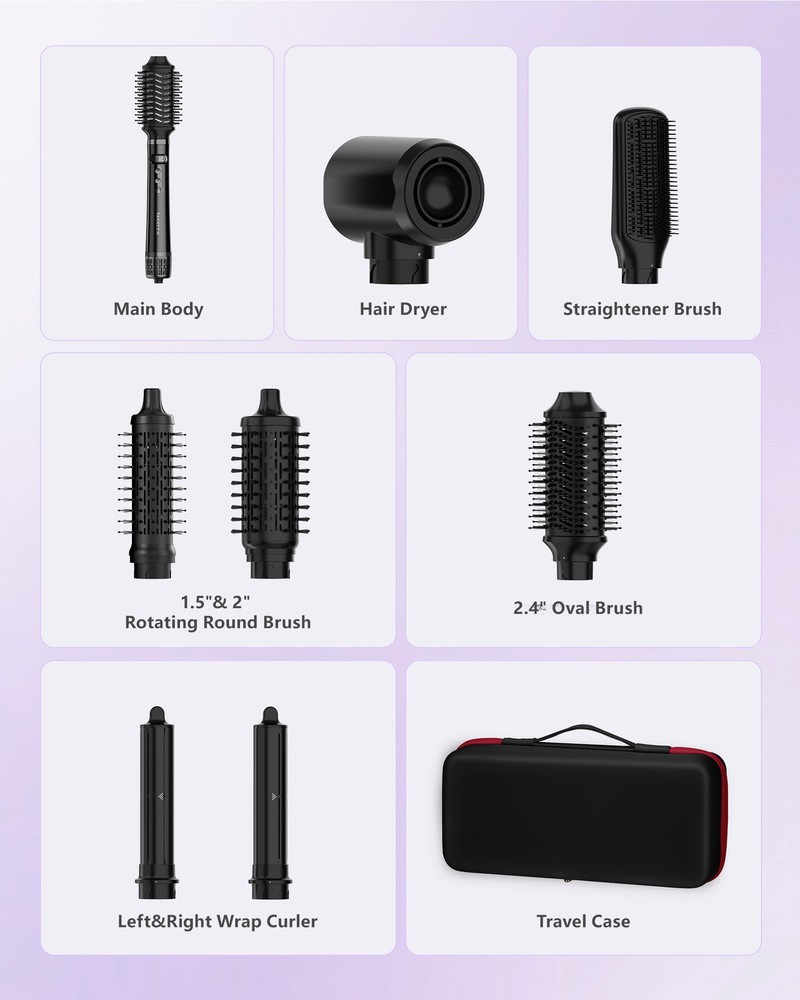 7-in-1 Hair Dryer Brush & Hair Styler, Fast Drying Blow Dryer & Curling StylingTool, Hot Air Styler No Heat Damage, Powerful Multi-Styler for Curling Volumizing Straightening Styling (Blush Pink) 【7 in 1 Hot Air Hair Brush Styler Set】CrazyMar are your all-in-one solution for versatile hair styling. This innovative tool features 7 interchangeable attachments for drying, straightening, curling, and volumizing, making it suitable for all hair types. With a powerful 110,000 RPM brushless motor and airflow up to 23 m/s, it dries hair 3 times faster than traditional dryers while minimizing heat damage. The negative ion technology reduces frizz and enhances shine, leaving your hair silky and smooth. Lightweight and ergonomic, this styler ensures effortless, salon-quality results every day. Transform your hair style with CrazyMar! 【Auto-Wrap Curlers】Utilizing innovative Coanda Effect technology, these curlers wrap your hair around the barrel using powerful airflow—no extreme heat required. The set includes two directional curlers for creating symmetrical, bouncy curls. With a high-speed brushless motor and an aluminum alloy body featuring a ceramic coating, these curlers ensure even heat distribution and protect your hair from damage. Enjoy voluminous, smooth curls that last for hours with ease! 【Powerful High-Speed Hair Dryer】The hair dryer brush blow dryer featuring a 110,000 RPM brushless motor that delivers powerful airflow up to 23 m/s — 3 times faster than standard dryers. This innovative design minimizes heat exposure, reducing styling time by half while enhancing shine and strength. The unique arc-shaped nozzle creates concentrated airflow for ultra-fast drying, and the ionized brush head releases negative ions to smooth and strengthen your hair. Say goodbye to heat damage and hello to gorgeous, healthy hair! 【Damage-Free Styling】This hair styler and dryer designed for quick drying at low temperatures. Featuring smart temperature control, it adjusts airflow temperature 1,000 times per second to stay below 220°F protecting your hair from heat damage. With 3 temperature settings and 2 wind speeds, it accommodates all hair types while minimizing frizz for a silky finish. Enjoy healthier, beautifully styled hair without the worry of excessive heat! 【Negative Lonic Hot Air Brush】This Air styling brush features a ceramic coating for even heat distribution and temperature protection, releasing thousands of negative ions to smooth and enhance shine. The nylon pins and tufted bristles effortlessly detangle hair, minimizing breakage while delivering luxurious salon-quality results at home. Enjoy fast drying and styling without heat damage, leaving your hair smooth, resilient, and beautifully voluminous! 【Prioritizing safety】The hot air system features an NTC feedback, bi-metal thermal switch, and irreversible fuse for peace of mind. Enjoy easy one-handed operation with ergonomically designed buttons and a 360° rotating cord. The quick cooling function, heat-insulating gloves, and ALCI safety plug ensure a secure styling experience, making it the perfect travel companion for salon-quality results at home. 【Perfect for Lovers & Friends】The 7-in-1 air-wrap hair styler is travel companion, elegantly packaged in a luxurious waterproof travel bag, perfect for travel. And ideal for beauty enthusiasts, this multi styling tools save time and money while delivering salon-quality results. Its portable design make it making it a thoughtful gift for mothers, daughters, or friends on any occasion! On Nov 21, 2025 at 00:30:04 PST, seller added the following information: