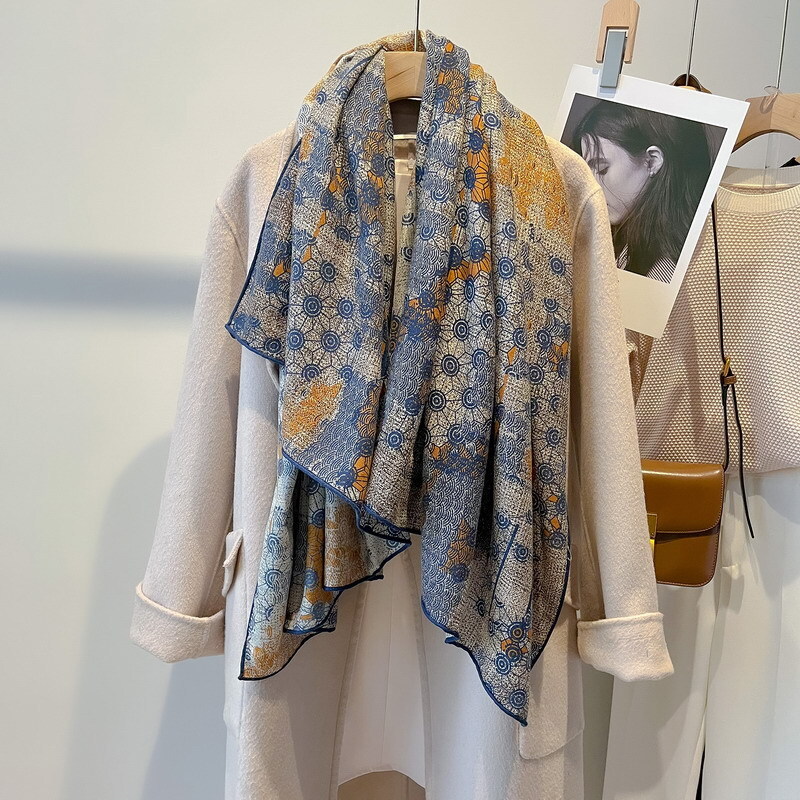 $ 7.9270% Cashmere 30% Silk Double Face Square Shawl with Chain Print 53 Inch
