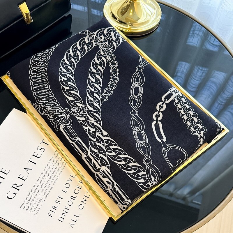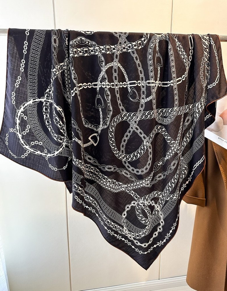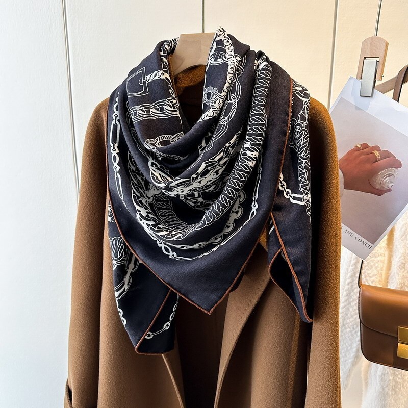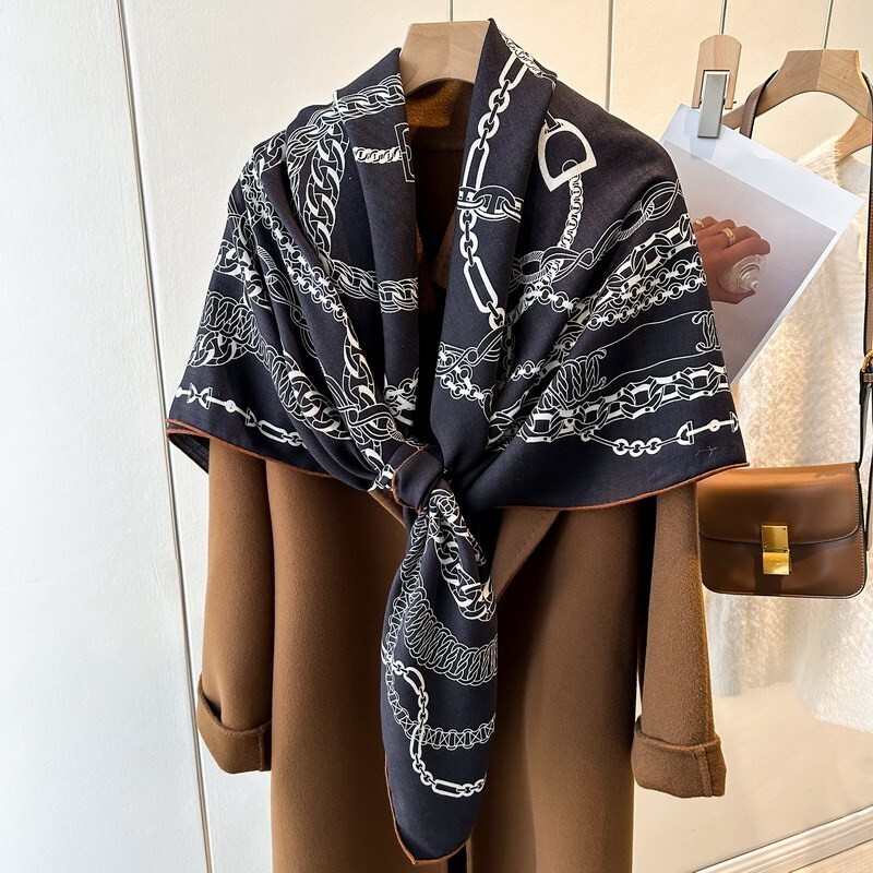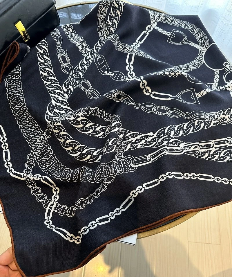 70% Cashmere 30% Silk Double Face Square Shawl with Chain Print 53 Inch