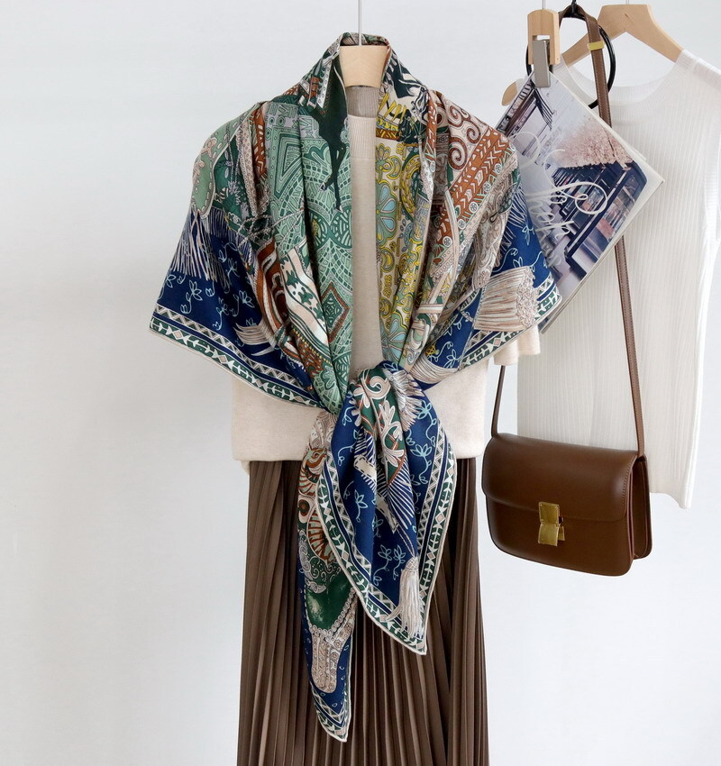 I love my gorgeous silk scarf which is more beautiful than the picture!! Exactly what I wanted and looks perfect with my sweater! I was amazed by how quickly it arrived— I got an excellent price on the scarf and on shipping, too! I will definitely keep this seller!! THANK YOU SO MUCH!!