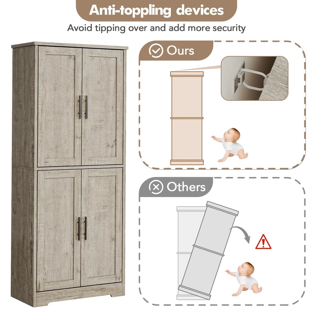 About this item Modern Design: Create an organized space that enhances your home’s aesthetic. This tall kitchen pantry cabinet features a stylish plain color panel design paired with modern metallic handles, making it a perfect fit for any decor style, whether in the bathroom, living room, kitchen, or dining room. Organize your belongings while adding a touch of contemporary elegance to your living space. Multi-Functional Storage Solution: Maximize your space and unlock its potential! With dimensions of 30"W x 14"D x 70"H, this tall pantry cabinet includes two spacious cabinets with shelves, providing ample storage. Customize storage areas for items of various sizes while keeping your environment neat and dust-free. Revitalize every corner and enhance your home’s quality and comfort. Optimize Your Storage Experience: Enjoy well-designed storage that offers lasting functionality. The kitchen cupboard height is tailored for the average adult's comfort. Oversized coated metal handles provide a comfortable grip and ensure durability. High-quality hinges allow for smooth door operation, perfectly blending style and practicality for a seamless storage experience. Sturdy and Durable: This tall bathroom storage cabinet is constructed from premium P2 engineered wood and metal, ensuring a robust, durable structure that withstands everyday use. The middle and bottom shelves hold up to 100 pounds, while other shelves and the central drawer can support up to 50 pounds each. An included wall anchor kit adds safety and prevents tipping. Purchase with Confidence: Home furniture comes with detailed assembly instructions for easy setup. Each part is labeled for easy identification, with a spare parts pack included for unexpected needs. We conduct thorough inspections before shipping, and if you face any issues during use, please reach out; we are committed to providing a satisfactory solution. Product Description Find More Well-crafted and Functional Details Payment Delivery details Terms of sales About us Contact us Payment We accept payment either via PayPal or any of the following credit cards; Visa, MasterCard, Discover, and American Express. Delivery details 1. We will delivery out at the handing time when we receive the payment. 2. The delivery time is 3-5 business days to US by usually time.The parcel maybe delay 1-2day of the weekend.Due to the bad weather,Holidays,Hot Season ect.the parcel maybe delay,If you have any problems,mssage us,we will try our best to solve it. 3. We ship to your eBay address. Please make sure your eBay address is correct before you pay. 4. If you want to change the shipping address,message us before our send out. Terms of sales If you are not satisfied with the item for any reason, please do not quick to leave negative/neutral feedback even open request and case without any communication with us. We devote ourselves making EVERY CUSTOMER in 100% Satisfactory and resolve any problem. Thank you for your understanding and recognition,we are always leave positive feedback to all our customers. About Reply: All replies will be sent to your email box, if you do not get response within 24 hours (Sat. & Sun. excluded) please check your eBay My Messages in case that our emails will be filtered automatically by your settings. About us automobilee-01 is a brand new store but we are one of North America’s top online suppliers of specialized, high-quality aftermarket online retailers and suppliers, committed to developing new markets. We primarily offers tool sets, auto parts, home goods, etc..With over 20 years of product selection and manufacturing experience, we delivers unparalleled quality, value, service and satisfaction. Our highly-trained, professional staff offer in-depth knowledge and personalized assistance for customers worldwide. Providing our customers with a simple, hassle-free experience with best-in-class customer service is more than a goal. Contact us Any problem please rest assure to contact us by eBay message first. We will reply you as soon as we can. We will deal with it within 24hs on working days. Brand Unbranded MPN Does Not Apply Item Length 14"D x 30"W x 70"H Item Width 14"D x 30"W x 70"H Item Height 14"D x 30"W x 70"H Material Engineered Wood Number of Shelves 3 Type Cupboard Department Adults Room Living Room Features With Doors Color Rustic Gray Mounting Free Standing Assembly Required Yes Shape Rectangular Style Modern Number of Doors 4 Additional Parts Required No Item Depth 14"D Product Dimensions 14"D x 30"W x 70"H Item Weight 85 pounds