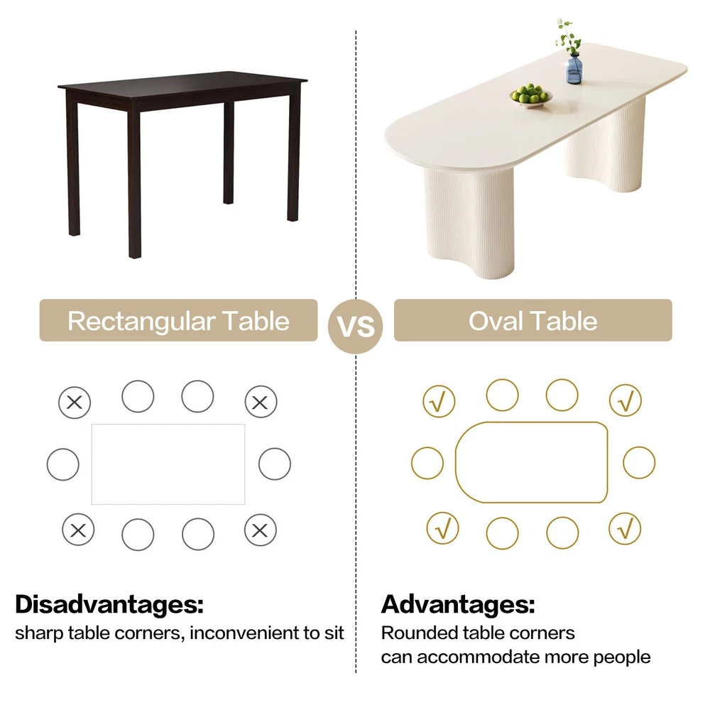 About this item ★ Size: Dining table size: 70" x 31.49" x 29.52" ★ Rounded Edge Design: Our dining table distinguishes itself with gracefully rounded corners, setting it apart from conventional rectangular designs. The soft, curved edges not only create a more inviting and warm ambiance but also enhance safety for those seated around it, making it an ideal choice for households with young children or pets. ★ Superior Construction Materials: Our dining table is meticulously crafted from robust high-quality board material, utilizing four distinctive techniques and eco-friendly board to ensure unparalleled strength and stability. The utilization of premium materials and expert craftsmanship guarantees that this dining table will not only be an aesthetically pleasing addition to your living space but also a resilient and enduring piece of furniture that can withstand the test of time. ★ Distinctive Table Legs: The Guyii kitchen table showcases exquisitely designed wavy table legs that imbue the design with a captivating three-dimensional aspect. These legs are not only visually striking but also provide steadfast support, thanks to the table's solid floor-level construction and remarkable weight-bearing capability. Whether you're hosting an elaborate dinner party or enjoying a casual meal with loved ones, this table effortlessly combines style and functionality to impress. ★ Effortless Cleaning: This dining table is thoughtfully crafted with materials that prioritize ease of cleaning without compromising on style or durability. The tabletop boasts a smooth surface that offers a seamless and wipeable finish, enabling spills, stains, and food particles to be effortlessly removed with a simple swipe of a cloth. Bid farewell to stubborn marks or lingering residue, as this table simplifies cleanup to an absolute delight. ★ 100% Customer Guarantee - Guyii provides you with quality products and excellent customer service. If you encounter any problems with the dining table, please do not hesitate to contact us, we will provide you with fast and friendly customer service. Get yours and more for family and friends TODAY!