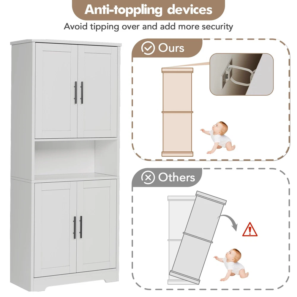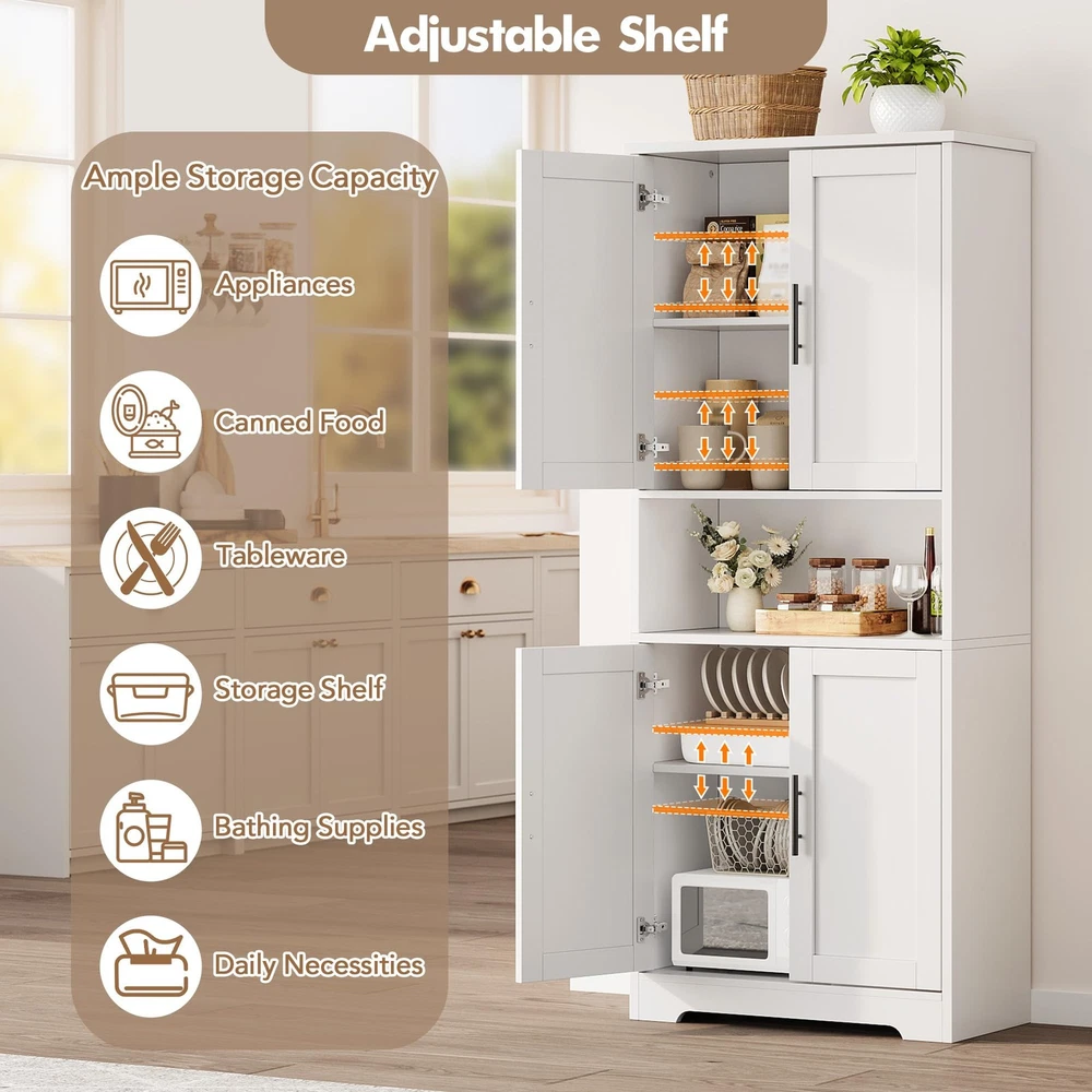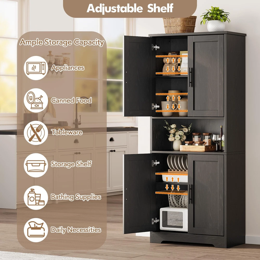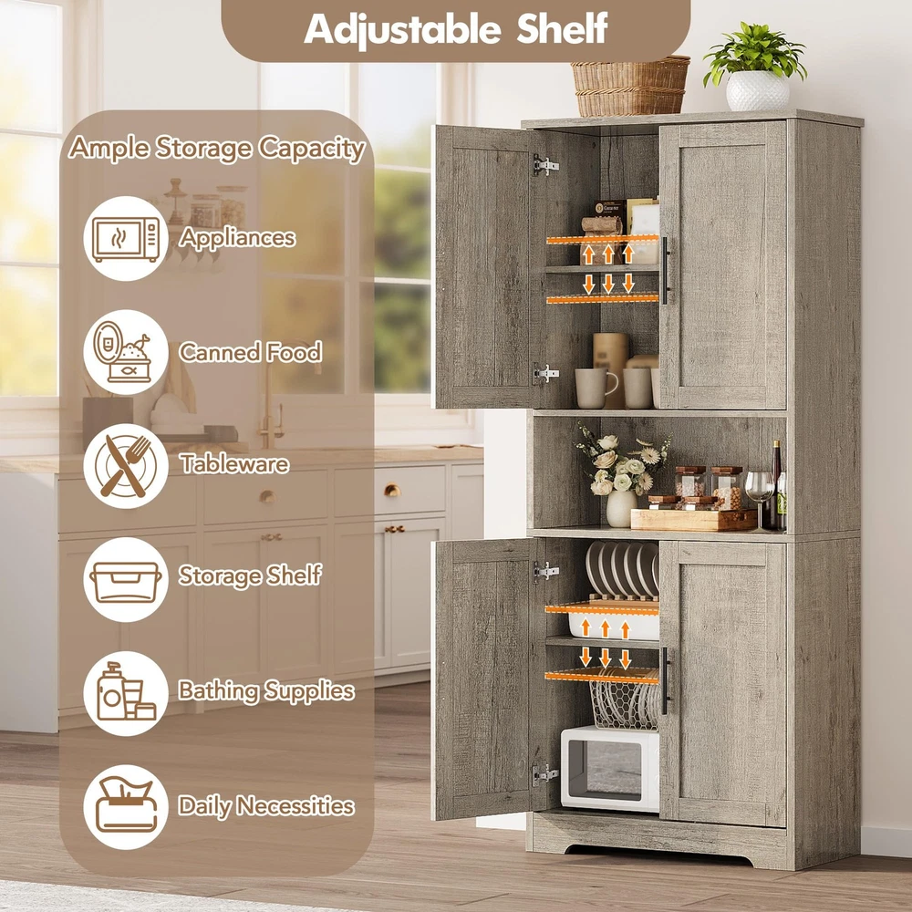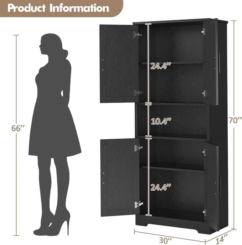 About this item MODERN STYLISH DESIGN: This tall kitchen cabinet showcases clean lines and subtle metallic handles, offering a sleek, minimalist aesthetic that enhances any contemporary space. Its neutral wood tone adds an elegant touch, seamlessly blending with your decor, making it an ideal choice for the bathroom, living room, kitchen, or dining room. ADJUSTABLE SHELVES: Maximize Your Space! Transform your storage potential with this tall pantry cabinet, measuring 30" W x 14" D x 70" H. It features two spacious cabinets equipped with three height-adjustable shelves, allowing you to customize your storage for items of all shapes and sizes. Enjoy a neat and organized environment while keeping your belongings dust-free. STURDY AND DURABLE: This freestand pantry cabinet is crafted from premium P2 MDF wood, ensuring a robust and long-lasting structure. The middle and bottom shelves hold up to 100 pounds, while others can support up to 50 each. An included wall anchor kit enhances safety and prevents tipping, providing you with reliable and secure storage! OPTIMIZE YOUR STORAGE EXPERIENCE: Enjoy well-designed storage that offers lasting functionality. The tall pantry height is tailored for the average adult's comfort. Oversized coated metal handles provide a comfortable grip and ensure durability. High-quality hinges allow for smooth door operation, perfectly blending style and practicality for a seamless storage experience. Purchase with Confidence: The pantry storage cabinet comes with detailed assembly instructions for easy setup. Each part is labeled for easy identification, with a spare parts pack included for unexpected needs. We conduct thorough inspections before shipping, and if you face any issues during use, please reach out; we are committed to providing a satisfactory solution. Product Description Versatile Tall Storage Cabinets: Perfect for Any Space Payment Delivery details Terms of sales About us Contact us Payment We accept payment either via PayPal or any of the following credit cards; Visa, MasterCard, Discover, and American Express. Delivery details 1. We will delivery out at the handing time when we receive the payment. 2. The delivery time is 3-5 business days to US by usually time.The parcel maybe delay 1-2day of the weekend.Due to the bad weather,Holidays,Hot Season ect.the parcel maybe delay,If you have any problems,mssage us,we will try our best to solve it. 3. We ship to your eBay address. Please make sure your eBay address is correct before you pay. 4. If you want to change the shipping address,message us before our send out. Terms of sales If you are not satisfied with the item for any reason, please do not quick to leave negative/neutral feedback even open request and case without any communication with us. We devote ourselves making EVERY CUSTOMER in 100% Satisfactory and resolve any problem. Thank you for your understanding and recognition,we are always leave positive feedback to all our customers. About Reply: All replies will be sent to your email box, if you do not get response within 24 hours (Sat. & Sun. excluded) please check your eBay My Messages in case that our emails will be filtered automatically by your settings. About us automobilee-01 is a brand new store but we are one of North America’s top online suppliers of specialized, high-quality aftermarket online retailers and suppliers, committed to developing new markets. We primarily offers tool sets, auto parts, home goods, etc..With over 20 years of product selection and manufacturing experience, we delivers unparalleled quality, value, service and satisfaction. Our highly-trained, professional staff offer in-depth knowledge and personalized assistance for customers worldwide. Providing our customers with a simple, hassle-free experience with best-in-class customer service is more than a goal. Contact us Any problem please rest assure to contact us by eBay message first. We will reply you as soon as we can. We will deal with it within 24hs on working days. Brand Unbranded Item Height 70 in Item Length 30 in Item Width 14 in Type Storage Cabinet Material MDF/Chipboard Mounting Free Standing Additional Parts Required No Department Adults Assembly Required Yes Item Weight 45 pounds MPN Does not apply Shape Rectangular Room Living Room, Bedroom, Home Office/Study, Kitchen Style Modern Features With Doors Number of Doors 4