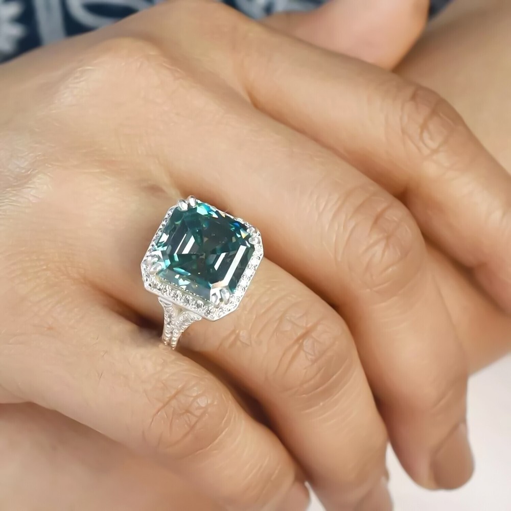 $ 72.127.00 Ct Cushion Blue Diamond Ring 925 Silver Gift for Women Birthday Sparkle