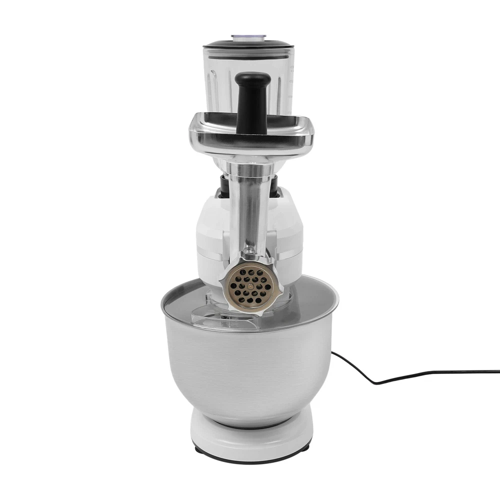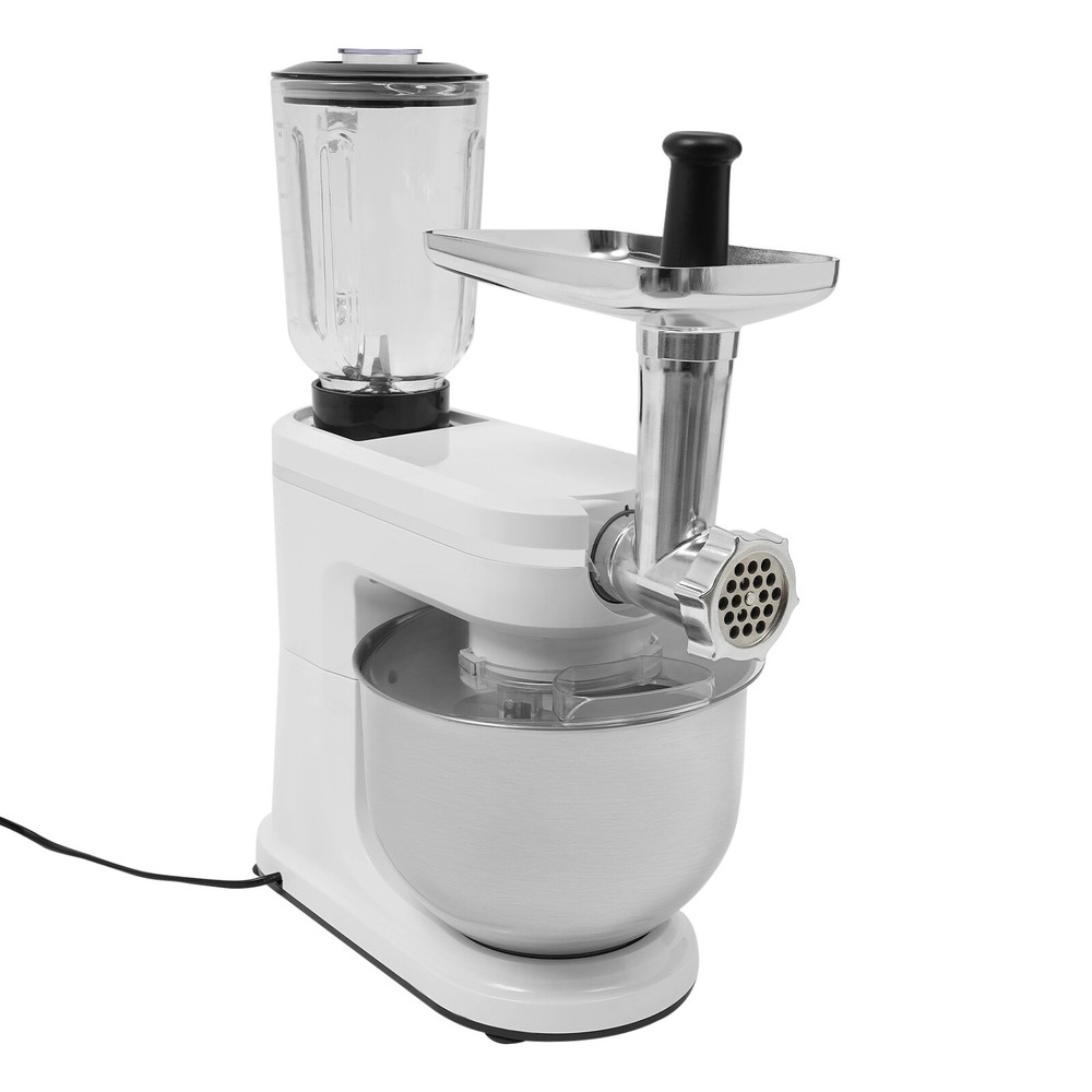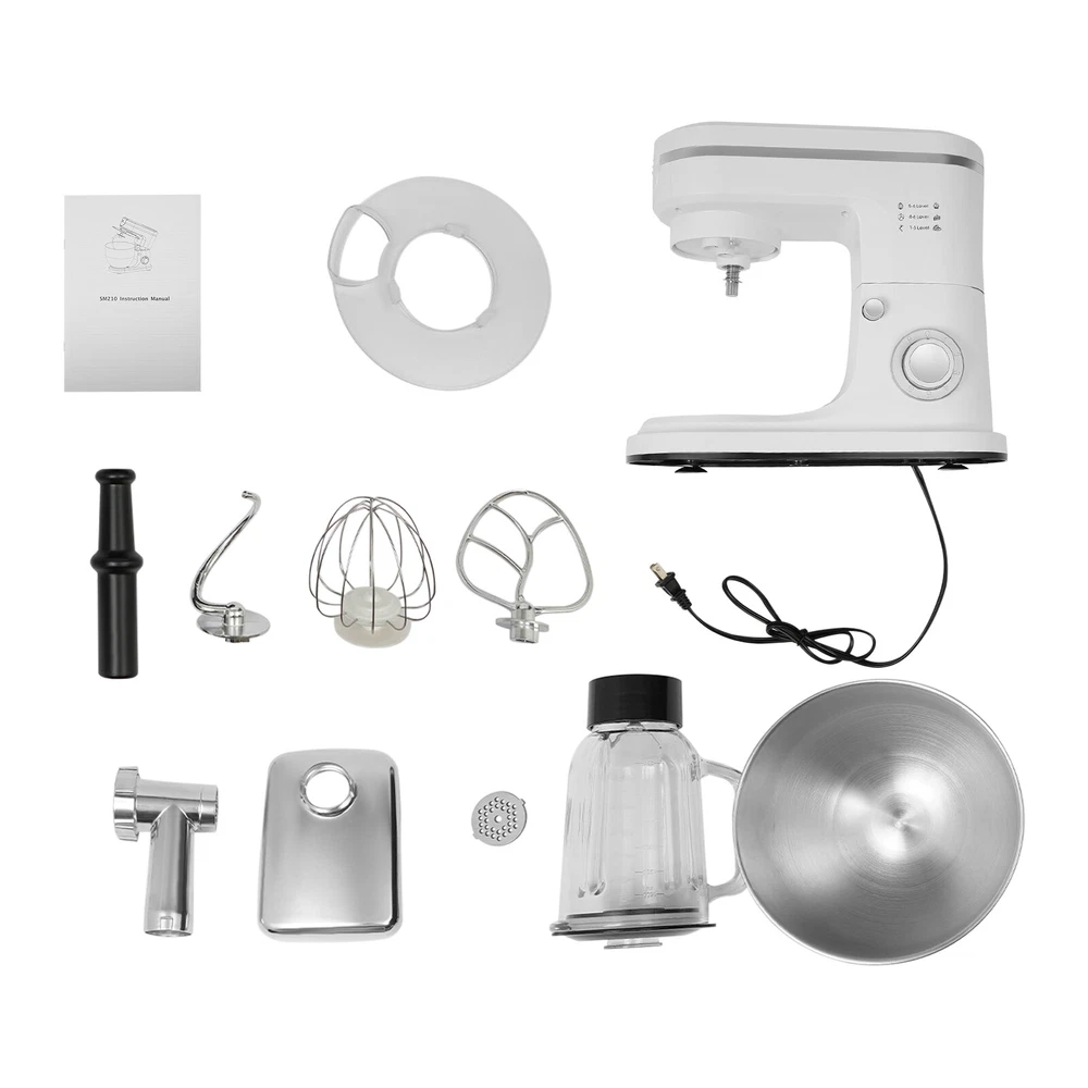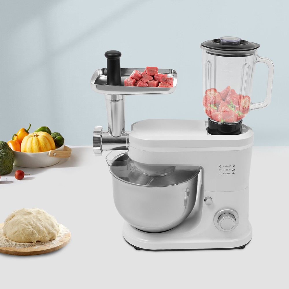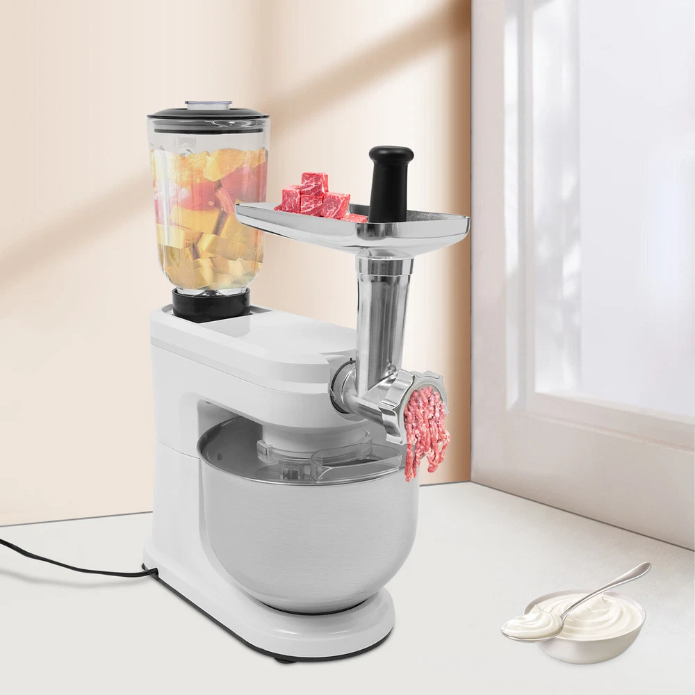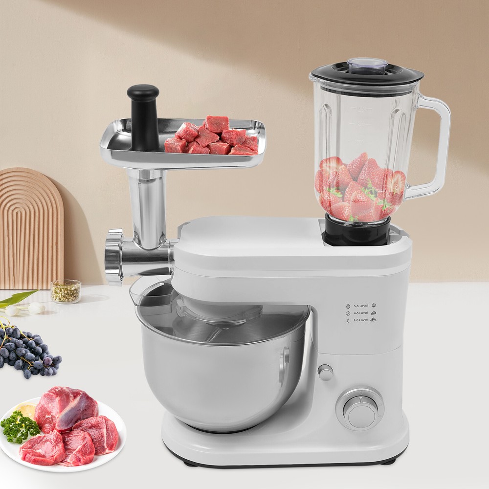 3 in 1 700W Food Stand Mixer 6.34Qt Electric Kitchen Dough Mixer 6-Speed +juicer 3 in 1 700W Food Stand Mixer 6.34Qt Electric Kitchen Dough Mixer 6-Speed +juicer Description Look at our kitchen mixer, it is a helpful assistant for your kitchen. It is made of premium materials, so it is safe to use and durable. This machine is compact and lightweight, so you can easily store it in the cabinet. As a daily mixer, it is easy to operate and clean up. The clear anti-splash guard could prevent the ingredients from making a mess. It comes with 6+1-speed options and three different mixing tools that can satisfy precise needs for various mixing tasks. Key Features Build to Last : The product is made of high-quality ABS, glass and 304 stainless steel, making it durable, and not easy to rust and corrosion, so it can remain beautiful and practical for a long time. Powerful Function: It has a strong power (700W) as well as a knob that allows you to adjust 6 mixing speeds, allowing you to finish kneading and mixing more quickly and thoroughly than human hands, and the pulse function can deliver short bursts of power at the optimal speed to blend mixtures evenly. Thoughtful Design: A deepened mixing bowl( 6.34qt ) can thoroughly mix flour, eggs, and other ingredients inside. The enhanced gear and enclosed transmission can provide powerful power to the machine and achieve the noise reduction function, ensuring smooth operation. High Safety: The Hall sensor of the machine has a motor overheating automatic power off thermal protection function that can ensure your safety as well as easy for you to replace the accessories when using, in addition, the cooling holes can dissipate the heat in time to ensure the stability of the product when using. Multi-function Machine: Its mixing bowl can hold enough ingredients and is equipped with a whisk, beater, and dough hook to facilitate the mixing of different ingredients and meet the dietary needs of you and your family. The meat grinder provides freshly ground meat when required, and the provided meat pusher offers you a safe and convenient use experience. 1.58qt glass juice container allows the sharing of more vegetable juice, fruit juice, or milkshakes, creating delightful beverages for family and friends. Ready to Use: Complete accessories and a detailed English manual make it very convenient and time-saving for you to use it directly after receiving it. Compact and Lightweight: With its compact size (13.78*7.09*21.56 inches) and lightweight ( 15.43 lbs ), you can use it conveniently or store it in your cabinet without taking up too much space, making it suitable for small kitchen, apartment, or limited storage space. Ideal Gift: Because of its powerful functions and practicality, you can give it to your friends as a Christmas, Thanksgiving, or housewarming gift. Quality Service: We are honored that you have chosen our product. We have sufficient confidence in the quality of the product so that you can buy it confidently. But if you have any questions, you can contact our customer service, he will patiently answer and solve your problems . Details 6 Suction Pads: They provide a non-slip effect to ensure product stability . Locking Groove: It helps secure the mixing bowl more accurately. Heads-up Button: It allows the attachment of the agitator section to be lifted upwards, making it easy for you to remove or replace the agitator. Splash-proof Cover: The clear anti-splash guard helps you with process monitoring and facilitates pouring water, milk, or other liquid ingredients(not included) through the small holes in the splash guard when needed while preventing ingredients from running out of the bowl, making cleanup easier. Handle: The handle on the juicer makes it easy to grip and pour your juice (not included). Application It can be used in kitchens, restaurants, bakeries, etc. for smoothies, pizza, waffles, milkshakes, bread, dough, whipped cream, marble cakes, mincemeat, juice and more! Specifications Style: Modern Color: White, Silver Material: ABS, 304 Stainless Steel, Glass Mounting Type: Free Standing Assembly Req uired: Yes Control Type: Knob Power Source: Corded Electric Plug Type: US Standard Motor Type: 8830 Motor Volatge: 110-120V, 50/60Hz Power: 700W Speed Gears: 6+1(P ulse Function ) Mixing Bowl Capacity: 6L/ 6.34qt Juice Container Capacity: 1.5L/1.58qt Noise: 90db Power Cord Length: 1m/3.28ft Gross Weight: 8.3kg/18.3lbs Net Weight: 7kg/15.43lbs Product Size: 35*18*54.75cm/13.78*7.09*21.56in Package Size: 61*36*27cm/24.02*14.17*10.63in Package Included 1* Kitchen Mixer 1* Douch Hook 1* Mixing Beater 1* Whisk 1* Juice Container 1* Anti-splash Guard 1*Mixing Bowl 1* English Manual Other Assembly Accessories Notes Please note that the mixing elements are not dishwasher safe! Please note that this product does not include any food ingredients. Before purchasing, please make sure that the capacity of this product is available for your needs. It is suitable for the new baker, 1-2 members, or small family in everyday use. If you are a pro-baker or need to handle large batches of mixing, please consider other larger-capacity mixers. Please read the English manual carefully before use and pay particular attention to the safety instructions contained therein. Please allow the slight color difference caused by the shooting light and 1-3 cm error due to manual measurement, and make sure you do not mind before ordering. Payment Delivery details Terms of sales About us Contact us Payment We accept ebay payment 。 Fees such as import duties, taxes are not included in the item price or shipping costs. These charges are the buyer's responsibility. Delivery details Shipping: 2-9 working days to: USA Terms of sales We maintain high standards of excellence and strive for hundred percent customer satisfaction. Feedback is very important to us. We hope that you contact us immediately before you give neutral or negative feedback, so that we can address your concerns. It