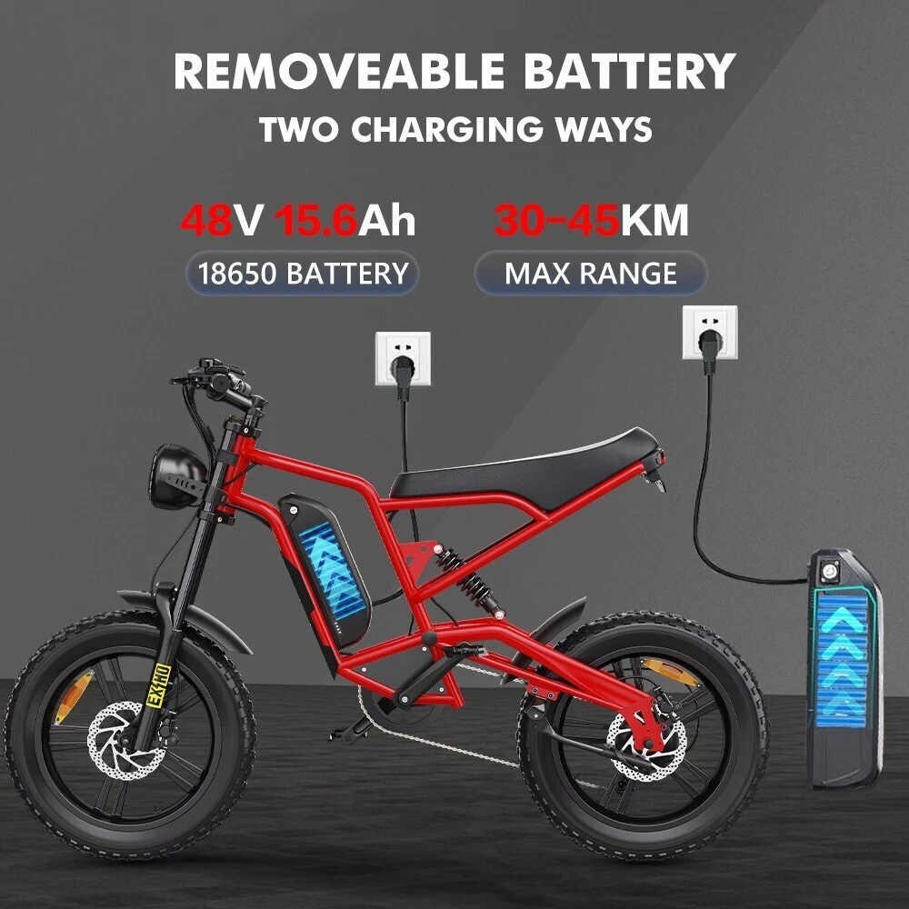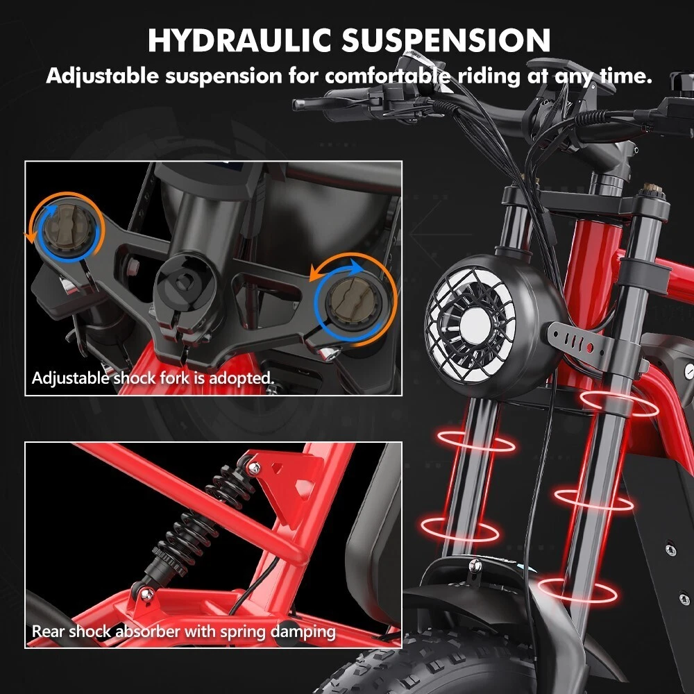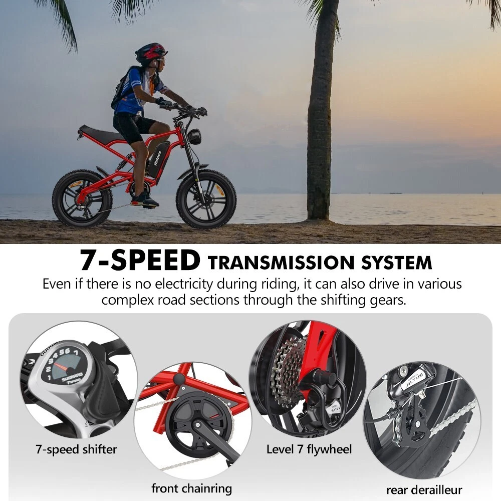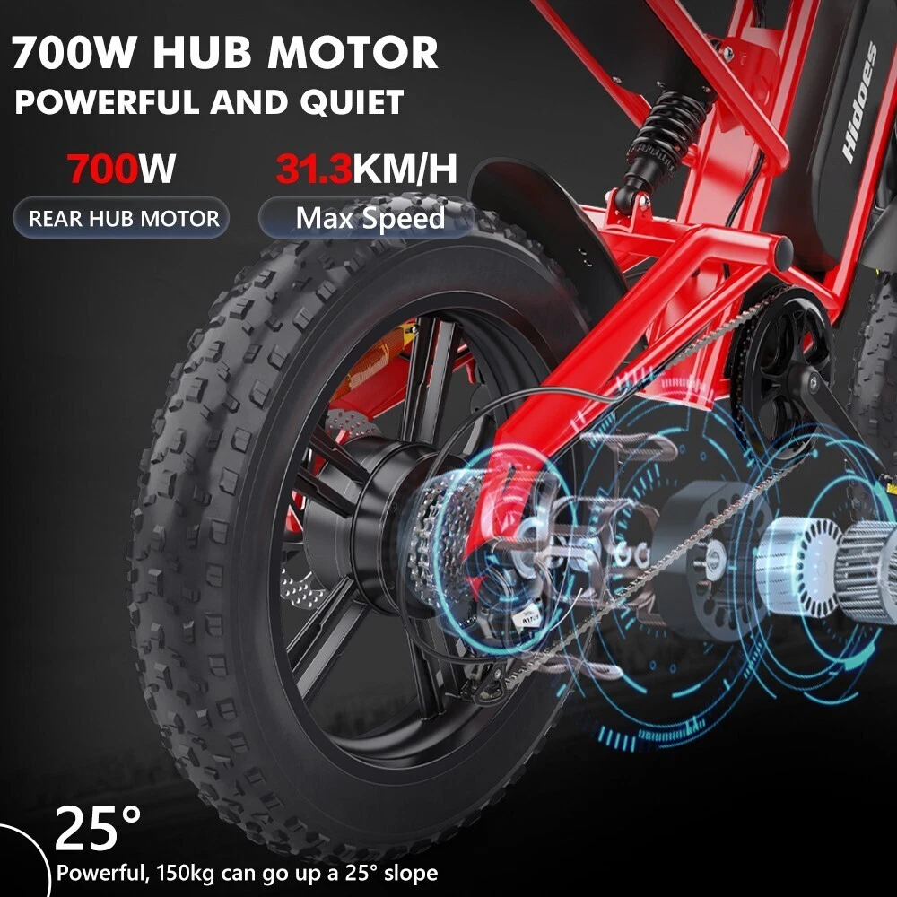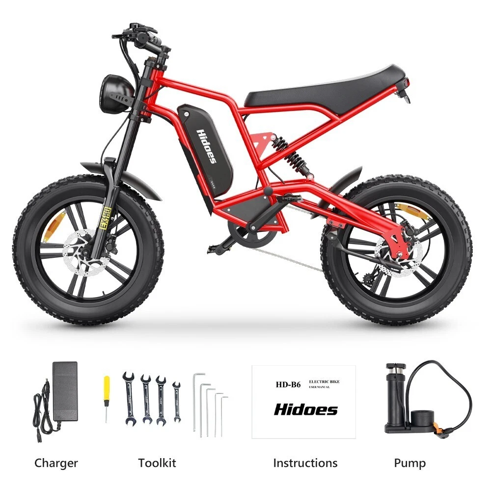 Charging Time: 6-8 Hours Brand: Hdoes Handlebar Type: Cruiser Bar Voltage: 48V 15.6Ah Material: Aluminum Alloy Department: Unisex Adults Item Length: 67 inch Country/Region of Manufacture: China Motor Type: Rear Hub Motor Suspension Type: Full Suspension (Front & Rear) Model: HD-B6 Features: Display, Front Light, Lithium Ion Battery, Pedal Assist gtin13: Does not apply Model Year: 2024 Color: Red Number of Speeds: 7 Speed Frame Size: Large Motor Power: 700 W Maximum Range: Up to 22-28 mi MPN: Does not apply Shifter Style: Thumb Shifter Frame Number: no Wheel Size: 20 in Bike Type: E-Mountain Bike Item Weight: 77 lb Brake Type: Disc Brake - Mechanical Maximum Speed: 20 mph Tire Type: Tubeless Tires UPC: Does not apply Gear Change Mechanism: Thumb Shifter Manufacturer Warranty: 1 Year