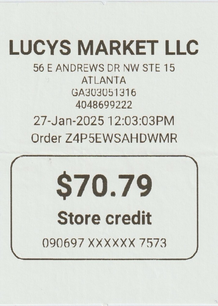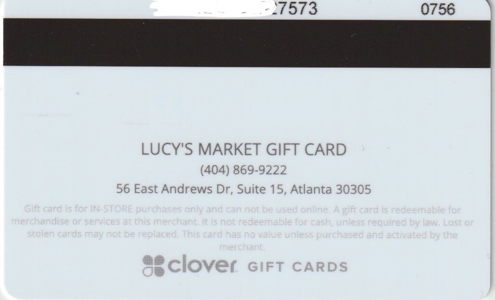 $70.79 Gift Card Lucy's Market Buckhead Shopping Area Atlanta, Georgia This great gift card has a total value of $70.79. Lucy's Market is located in the Buckhead neighborhood in Atlanta, Georgia - great gifts, and gourmet food and wine.