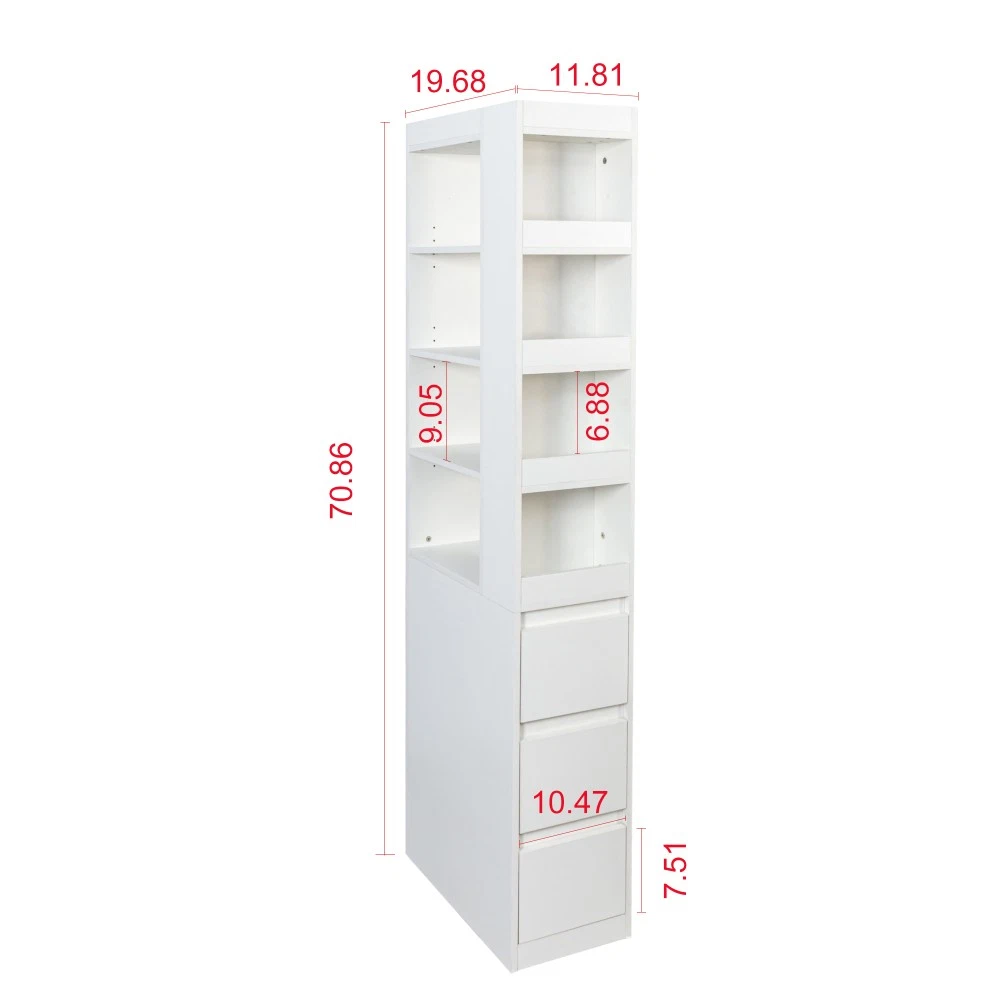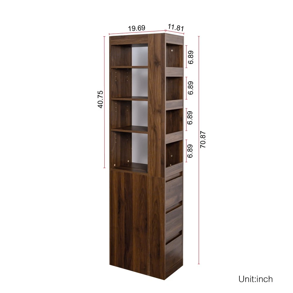 Tall Display Storage Cabine t : 3 Drawers + 4 Shelves for Multi-Space Organization Blend storage functionality with decorative display using this tall cabinet, designed to organize clutter while showcasing your favorite items. Featuring side-mounted drawers and open display shelves, it adds a modern, unique touch to living rooms, offices, kitchens, or salons—solving both storage and styling needs. P roduct Specifications Core Materials : Main Structure: 15mm particle board (sturdy, supports displayed/stored items) Backboard: 3mm MDF (enhances structural stability, prevents wobbling) Finish: Melamine coating (scratch-resistant, easy to wipe clean, durable for daily use) Storage Configuration : 3 drawers (for hidden clutter) + 4 open display shelves (for decorations, wines, etc.) Key Design Trait : Side-mounted drawers (unique layout for modern appeal, saves front-facing space) Ke y Features Dual Function: Storage + Display : This cabinet balances hidden and visible storage to keep spaces tidy and personalized: 3 Drawers : Tuck away small clutter (e.g., tableware accessories, office supplies, salon tools, or kitchen utensils) to maintain a clean look. The side-mounted design adds a modern twist—unlike traditional front-drawer cabinets, it frees up the cabinet’s front for display while keeping essentials within reach. 4 Open Shelves : Showcase decorative items (e.g., figurines, potted plants, framed photos), wines, tableware, or collectible models. The open design turns everyday items into decor, adding character to any room without feeling cluttered. Unique Modern Side-Drawer Layout : The drawers are positioned on the side (rather than the front), creating a sleek, asymmetrical look that stands out from standard storage cabinets. This design not only boosts visual interest but also makes the cabinet more compact—ideal for narrow walls or spaces where front-drawer access might be limited. Multi-Room Versatility : Built to adapt to nearly any space, it works as: Living Room : A display cabinet for wines, decor, or books + a storage spot for remote controls, coasters, or blankets. Office : A bookshelf for reference materials + drawers for files, pens, or staplers. Salon/Store : A display for products (e.g., skincare, candles) + storage for tools (e.g., hairbrushes, scissors). Kitchen/Dining Room : A pantry for dry goods (e.g., snacks, spices) + open shelves for dishware or cookbooks. Durable & Low-Maintenance Build : The 15mm particle board frame ensures the cabinet can safely hold displayed items (like wine bottles or small decor) and stored belongings (such as stacked tableware). The melamine finish resists stains, spills, and scratches—simply wipe the surface with a damp cloth to clean up messes, making it easy to maintain for busy households or commercial spaces (e.g., salons, small stores). Th is tall display storage cabinet turns ordinary storage into a design statement—where functionality meets style, and every room gets a clutter-free, personalized upgrade.