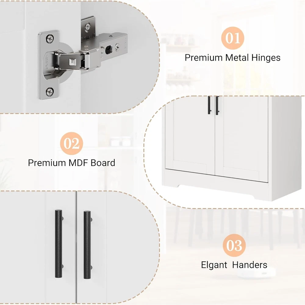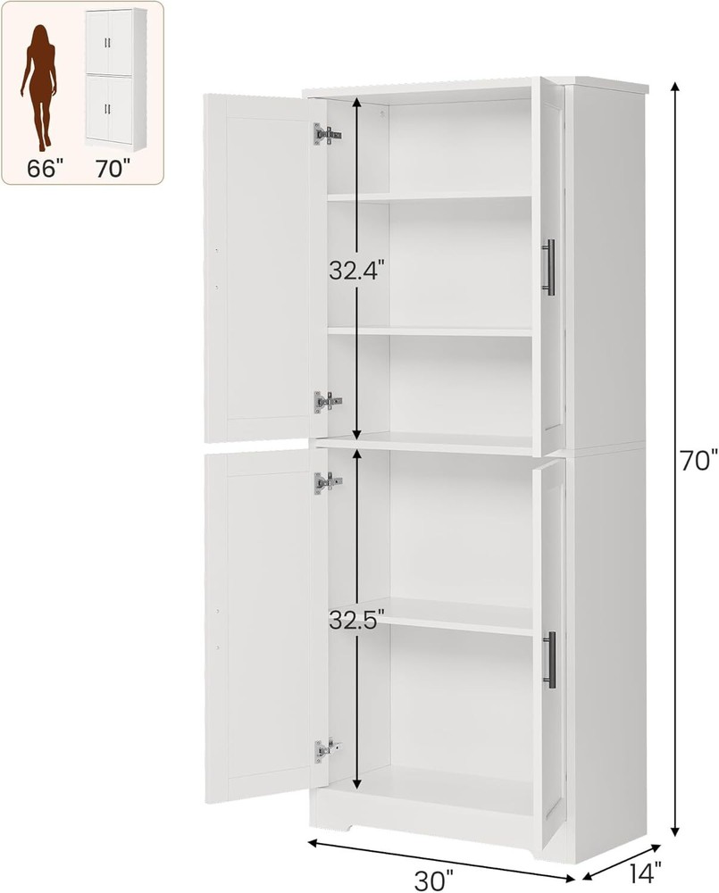 About this item: Modern Design: Create an organized space that enhances your home’s aesthetic. This tall kitchen pantry cabinet features a stylish plain color panel design paired with modern metallic handles, making it a perfect fit for any decor style, whether in the bathroom, living room, kitchen, or dining room. Organize your belongings while adding a touch of contemporary elegance to your living space Multi-Functional Storage Solution: Maximize your space and unlock its potential! With dimensions of 30"W x 14"D x 70"H, this tall pantry cabinet includes two spacious cabinets with shelves, providing ample storage. Customize storage areas for items of various sizes while keeping your environment neat and dust-free. Revitalize every corner and enhance your home’s quality and comfort Optimize Your Storage Experience: Enjoy well-designed storage that offers lasting functionality. The kitchen cupboard height is tailored for the average adult's comfort. Oversized coated metal handles provide a comfortable grip and ensure durability. High-quality hinges allow for smooth door operation, perfectly blending style and practicality for a seamless storage experience Sturdy and Durable: This tall bathroom storage cabinet is constructed from premium P2 engineered wood and metal, ensuring a robust, durable structure that withstands everyday use. The middle and bottom shelves hold up to 100 pounds, while other shelves and the central drawer can support up to 50 pounds each. An included wall anchor kit adds safety and prevents tipping Purchase with Confidence: Home furniture comes with detailed assembly instructions for easy setup. Each part is labeled for easy identification, with a spare parts pack included for unexpected needs. We conduct thorough inspections before shipping, and if you face any issues during use, please reach out; we are committed to providing a satisfactory solution Packing List: Kitchen Pantry Cabinet x1 Payment Delivery details Terms of sales About us Contact us Payment We accept payment either via PayPal or any of the following credit cards; Visa, MasterCard, Discover, and American Express. Delivery details 1. We will delivery out at the handing time when we receive the payment. 2. The delivery time is 3-5 business days to US by usually time.The parcel maybe delay 1-2day of the weekend.Due to the bad weather,Holidays,Hot Season ect.the parcel maybe delay,If you have any problems,mssage us,we will try our best to solve it. 3. We ship to your eBay address. Please make sure your eBay address is correct before you pay. 4. If you want to change the shipping address,message us before our send out. Terms of sales If you are not satisfied with the item for any reason, please do not quick to leave negative/neutral feedback even open request and case without any communication with us. We devote ourselves making EVERY CUSTOMER in 100% Satisfactory and resolve any problem. Thank you for your understanding and recognition,we are always leave positive feedback to all our customers. About Reply: All replies will be sent to your email box, if you do not get response within 24 hours (Sat. & Sun. excluded) please check your eBay My Messages in case that our emails will be filtered automatically by your settings. About us automobilee-01 is a brand new store but we are one of North America’s top online suppliers of specialized, high-quality aftermarket online retailers and suppliers, committed to developing new markets. We primarily offers tool sets, auto parts, home goods, etc..With over 20 years of product selection and manufacturing experience, we delivers unparalleled quality, value, service and satisfaction. Our highly-trained, professional staff offer in-depth knowledge and personalized assistance for customers worldwide. Providing our customers with a simple, hassle-free experience with best-in-class customer service is more than a goal. Contact us Any problem please rest assure to contact us by eBay message first. We will reply you as soon as we can. We will deal with it within 24hs on working days. Brand Unbranded MPN Does Not Apply Item Height 14"D x 30"W x 70"H Item Length 14"D x 30"W x 70"H Item Width 14"D x 30"W x 70"H Material Engineered Wood Number of Shelves 1 Department Adults Type Cupboard Room Living Room Features With Doors Color White Mounting Free Standing Assembly Required Yes Shape Rectangular Style Modern Number of Doors 2 Additional Parts Required No Item Depth 14"D