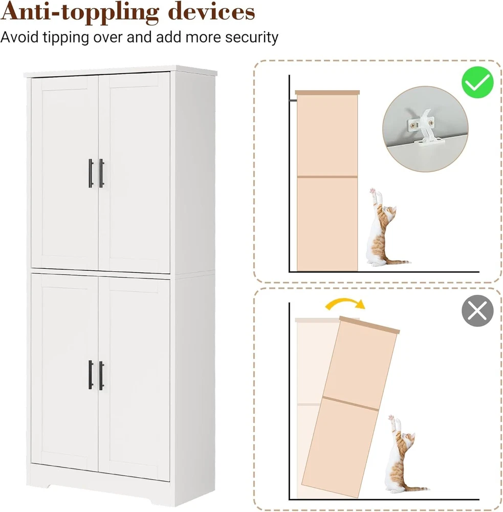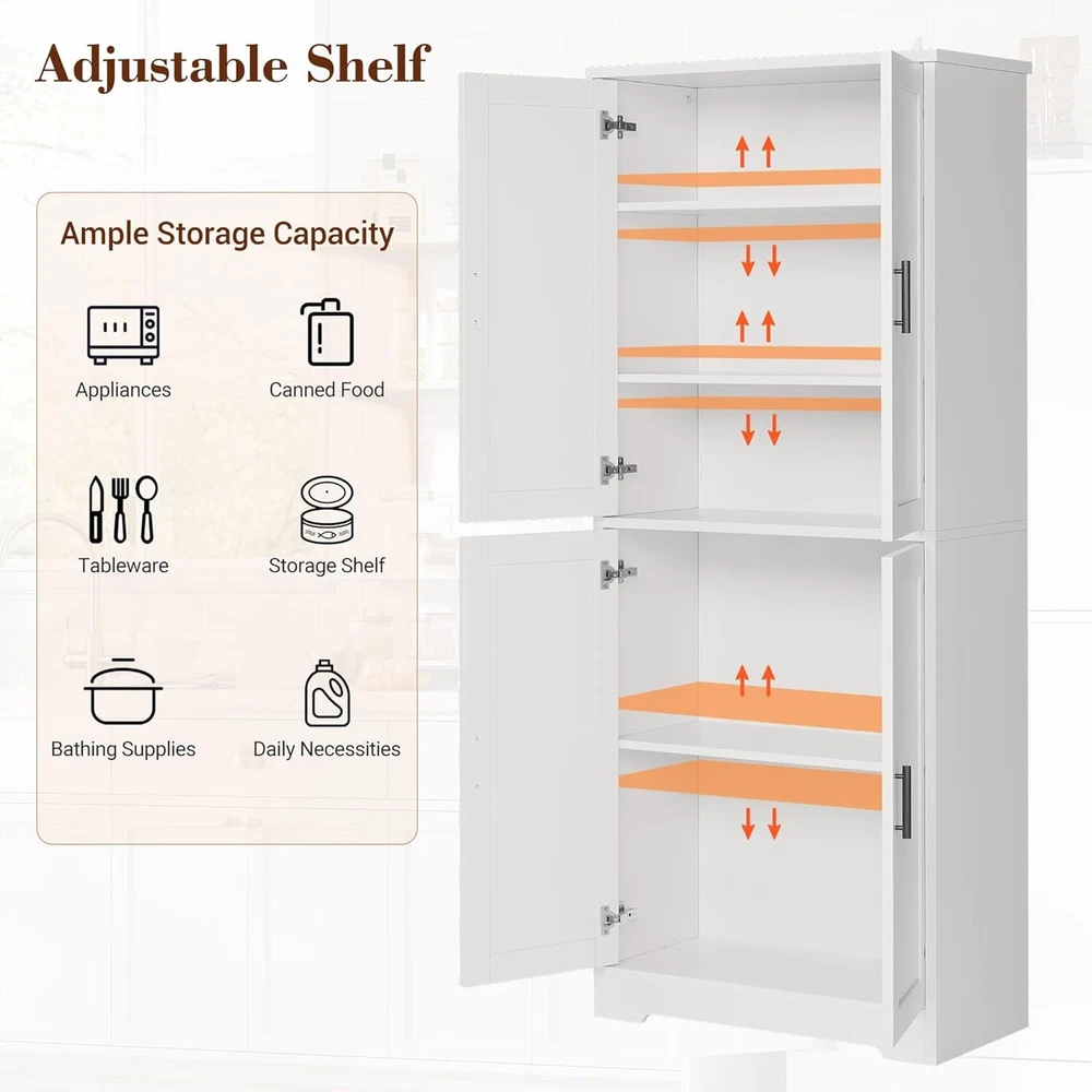 $ 47.7970-Inch Tall 4-Door Pantry Cabinet with Shelves for Kitchen Storage