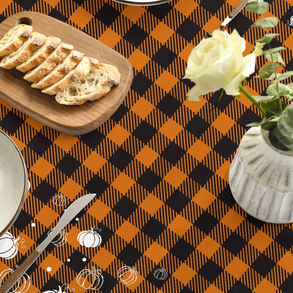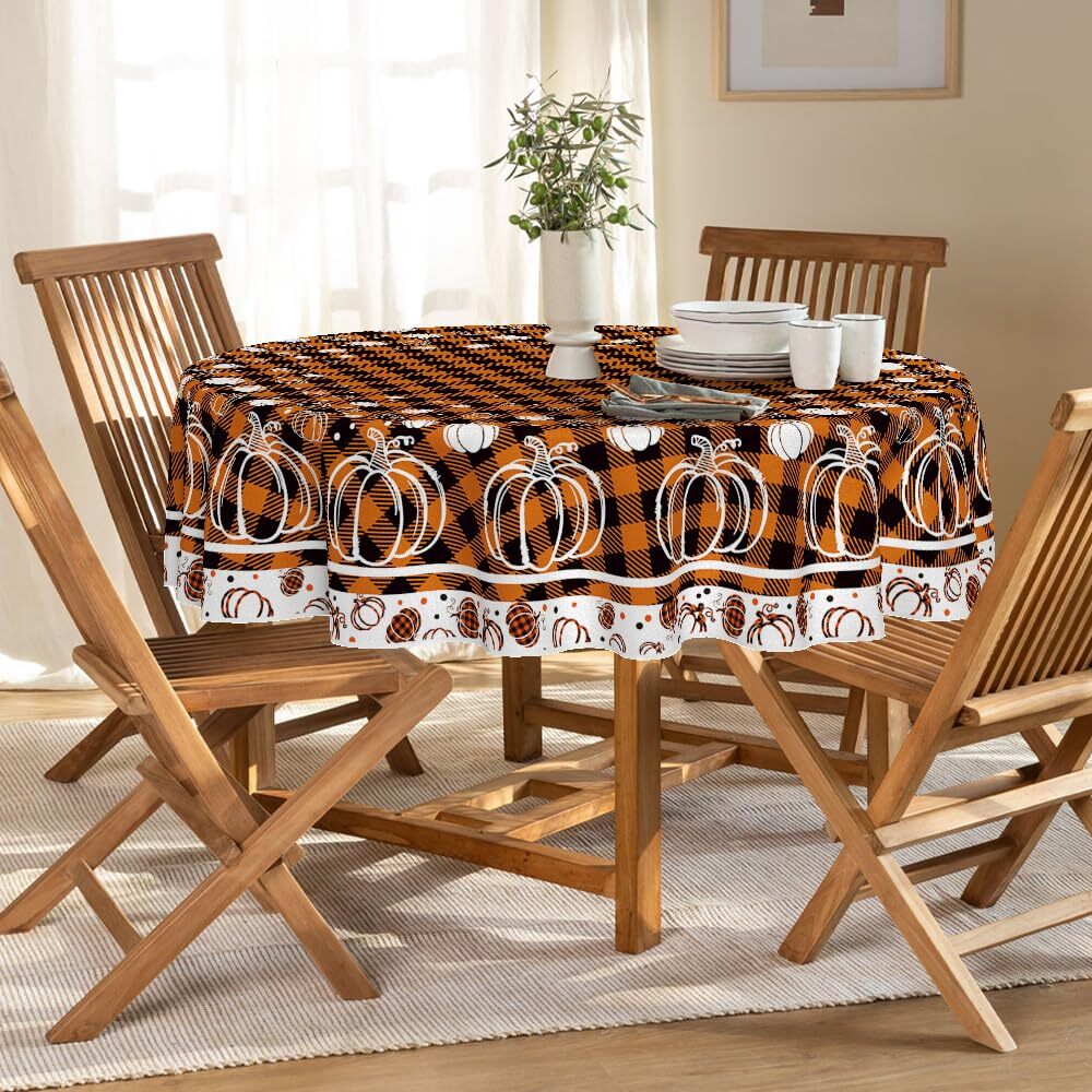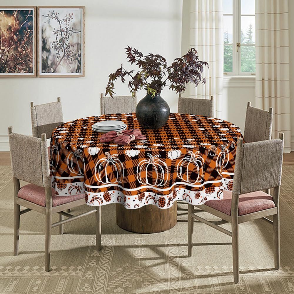 70x70 Inch Round Fall Tablecloth for Thanksgiving in Autumn Harvest Orange and Black