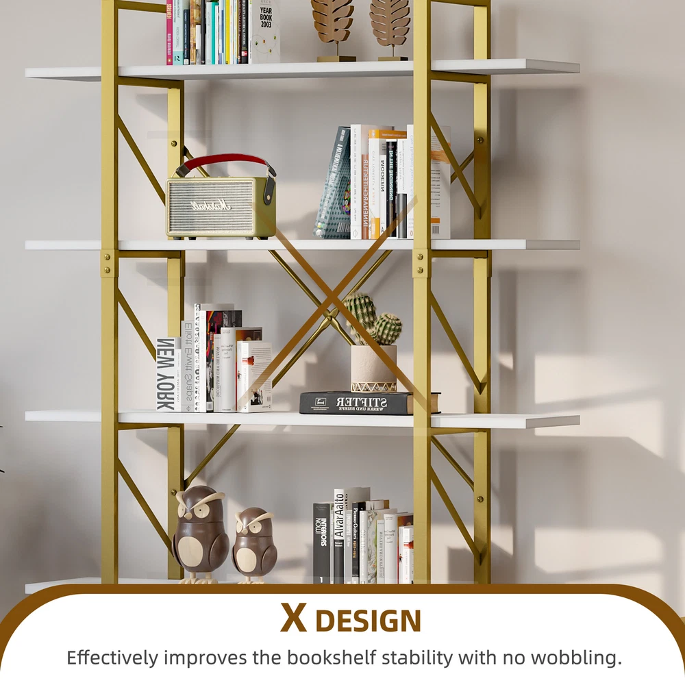 71" Tall 5-Tier Gold Bookshelf Bookcase Etagere Open Wide Display Storage Rack