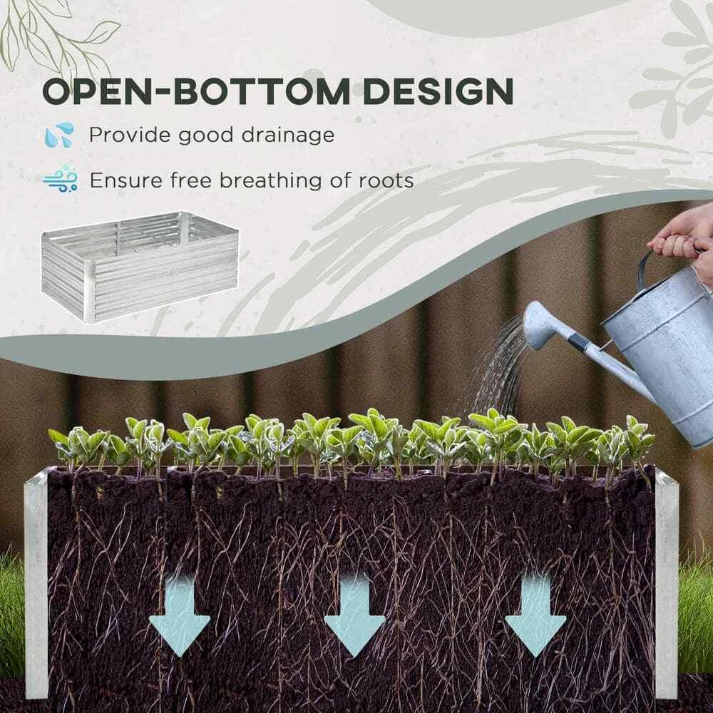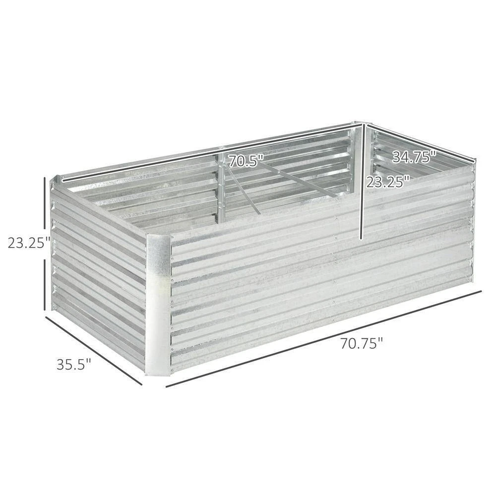 Made of water-safe galvanized steel for durability Open bottom design prevents the buildup of excess moisture 2 ft. tall raised garden bed holds more soil than regular planter Brand Outsunny Type Elevated Garden Beds UPC 196393049792 Model 845-774V00SR Richguysbrh7 Your dream home is here 71 in. x 36 in. x 23 in. Silver Raised Garden Bed for Outdoor Plants Made of water-safe galvanized steel for durability Open bottom design prevents the buildup of excess moisture 2 ft. tall raised garden bed holds more soil than regular planter Too much concrete around your condo or apartment complex? Not enough soil outside to fill the space with flowers, herbs, or vegetables? Outsunny has the raised garden box you need to get growing. It's easy to assemble and has an open bottom, so you won't have to worry about water logging. It's made of water-safe galvanized steel that isn't bulky, and if you can stick it on the soil, it has the added benefit of letting roots reach their full potential. Raise your green thumb with Outsunny. Outdoor Planter: Made with 0.5mm thick, water-safe galvanized steel with reinforcing bars, this raised planter box won't give you the same worries as wood and is not easy to loose. It can be exposed to the sun, rain, and snow season after season. 2' Tall Raised Garden Bed: Raise your plants even higher. Our two-foot reinforced raised garden bed holds more soil than your everyday planter, letting you grow longer-rooted plants on asphalt. Raised up and away from weeds and wild animals, it's a flower fortress. Open Bottom Bed: Elevate your growing conditions with our elevated garden bed. Its open-bottomed design lets you grow bigger plants with larger roots. It avoids water buildup and takes advantage of the deep, vast soil of the great outdoors. Spacious Grow Space: This extra-large 70.75" x 35.5" x 23.25" galvanized raised garden bed is long and deep enough to ensure your plants grow up healthy without having to worry about crowding. Planter Raised Bed Planting Area: 70.5" L x 34.75" W x 23.25" H. Easy to install. Click here to shop all Outsunny products Color Family:Silver|Color Family:Silver|Color/Finish:Silver|Color/Finish:Silver|Container Depth (in.):35.5 in|Container Depth (in.):35.5 in|Material:Steel|Material:Steel|Number of Tiers:1 Tier|Number of Tiers:1 Tier|Pots & Planters Type:Raised Beds|Pots & Planters Type:Raised Beds|Product Weight (lb.):35 lb|Product Weight (lb.):35 lb|Raised Bed Features:No Addional Features|Raised Bed Features:No Addional Features|Returnable:90-Day|Returnable:90-Day|Shape:Rectangular|Shape:Rectangular|Container Height (in.):23.25 in|Container Height (in.):23.25 in|Container Length (in.):70.75|Container Length (in.):70.75|Container Width (in.):35.5 in|Container Width (in.):35.5 in Item Specifics Brand Outsunny Type Elevated Garden Beds UPC 196393049792 Model 845-774V00SR Payment Returns Richguysbrh7 Your dream home is here DESCRIPTION PAYMENT SHIPPING RETURN POLICY CONTACT US 71 in. x 36 in. x 23 in. Silver Raised Garden Bed for Outdoor Plants Made of water-safe galvanized steel for durability Open bottom design prevents the buildup of excess moisture 2 ft. tall raised garden bed holds more soil than regular planter Too much concrete around your condo or apartment complex? Not enough soil outside to fill the space with flowers, herbs, or vegetables? Outsunny has the raised garden box you need to get growing. It's easy to assemble and has an open bottom, so you won't have to worry about water logging. It's made of water-safe galvanized steel that isn't bulky, and if you can stick it on the soil, it has the added benefit of letting roots reach their full potential. Raise your green thumb with Outsunny. Outdoor Planter: Made with 0.5mm thick, water-safe galvanized steel with reinforcing bars, this raised planter box won't give you the same worries as wood and is not easy to loose. It can be exposed to the sun, rain, and snow season after season. 2' Tall Raised Garden Bed: Raise your plants even higher. Our two-foot reinforced raised garden bed holds more soil than your everyday planter, letting you grow longer-rooted plants on asphalt. Raised up and away from weeds and wild animals, it's a flower fortress. Open Bottom Bed: Elevate your growing conditions with our elevated garden bed. Its open-bottomed design lets you grow bigger plants with larger roots. It avoids water buildup and takes advantage of the deep, vast soil of the great outdoors. Spacious Grow Space: This extra-large 70.75" x 35.5" x 23.25" galvanized raised garden bed is long and deep enough to ensure your plants grow up healthy without having to worry about crowding. Planter Raised Bed Planting Area: 70.5" L x 34.75" W x 23.25" H. Easy to install. Click here to shop all Outsunny products Color Family:Silver|Color Family:Silver|Color/Finish:Silver|Color/Finish:Silver|Container Depth (in.):35.5 in|Container Depth (in.):35.5 in|Material:Steel|Material:Steel|Number of Tiers:1 Tier|Number of Tiers:1 Tier|Pots & Planters Type:Raised Beds|Pots & Planters Type:Raised Beds|Product Weight (lb.):35 lb|Product Weight (lb.):35 lb|Raised Bed Features:No Addional Features|Raised Bed Features:No Addional Features|Returnable:90-Day|Returnable:90-Day|Shape:Rectangular|Shape:Rectangular|Container Height (in.):23.25 in|Container Height (in.):23.25 in|Container Length (in.):70.75|Container Length (in.):70.75|Container Width (in.):35.5 in|Container Width (in.):35.5 in Item Specifics Brand : Outsunny Type : Elevated Garden Beds UPC : 196393049792 Model : 845-774V00SR Payment Returns All rights reserved. Hot Item New List Item Help & Info Payment Policy Shipping Policy Return Policy FAQ About Us