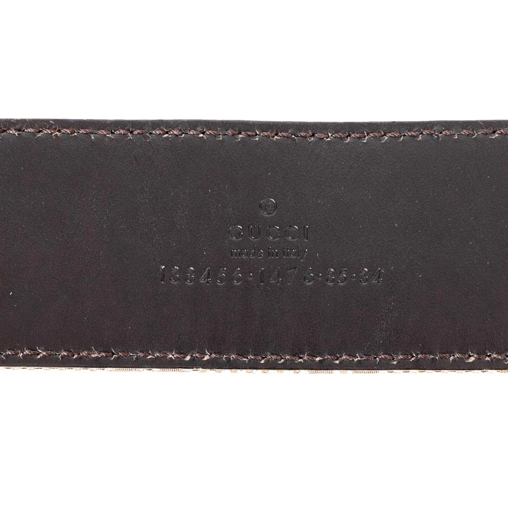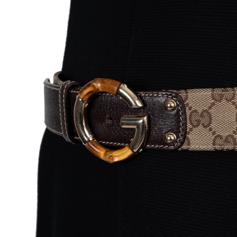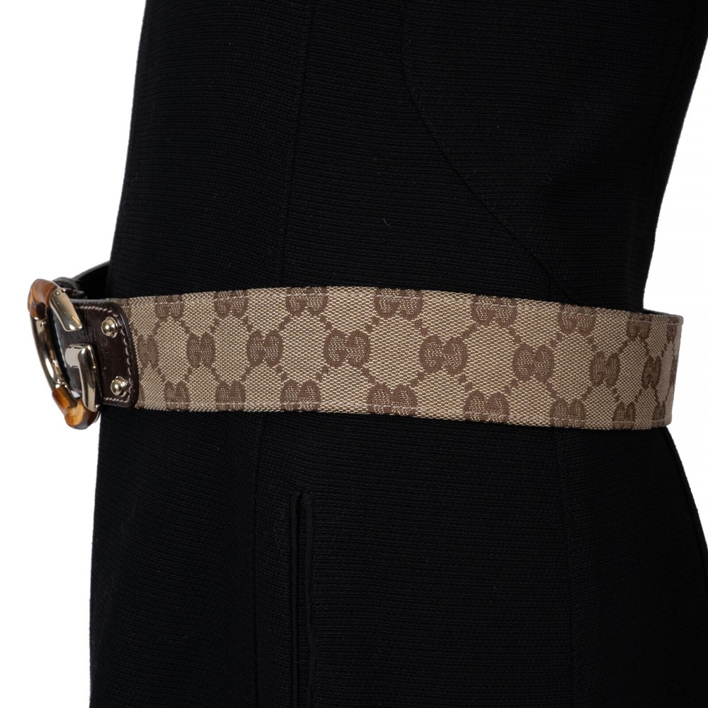 Welcome to LUX l Authentic Designer Consignment Rämistrasse 25, 8001 Zürich, Switzerland I Tue-Fri 11-18:30 & Sat 11-16:00 By bidding on our auctions you are agreeing to our Terms and Conditions below. All items come with authenticity guarantee! ------------------------------------------------------------------------------------------------------------------------------------------ Product Description: This 100% authentic Gucci belt in ebony and beige GG canvas is a refined take on the house’s iconic motif. Featuring a distinctive double G buckle in bamboo and light gold-tone metal, it blends natural elements with classic luxury. Dark brown leather trims with contrasting beige stitching add a sophisticated finish. A versatile statement piece, perfect for elevating any ensemble. Has been worn and and shows some scratches to the hardware. Overall in very good condition. Measurements Model 138456 Tag Size 85/34 Width 4cm (1.6in) Fits 82cm (32in) to 87cm (33.9in) Length 100cm (39in) Buckle Size Height 6cm (2.3in) Buckle Size Width 6cm (2.3in) Hardware Gold-Tone All our listings include only the listed item unless otherwise specified in the description above - Price does not include import duties & taxes - check your countries import laws prior purchase ------------------------------------------------------------------------------------------------------------------------------------------ Terms & Conditions Luxury-Shops is not affiliated with any of the name-brand items we offer for sale. Warranties and Liabilites: Luxury-Shops declines all responsibility and cannot be held liable for any damages caused by the use of a specific garment. We also cannot be held responsible for the quality of an item (we are not the manufacturer) or any damages resulting from a manufacturing defect. No warranties of any kind are given or implied. Condition of Merchandise: Luxury-Shops offers for sale luxury top-quality products. We fully disclose the condition of each item. In the description of each product, Luxury-Shops will specify the conditions if different from the standards set by the market (Required disclosure of prior use) The main characteristics of products are shown in great detail (through numerous photographs and in-depth descriptions). The products offered for sale MAY NOT correspond to the real garments in terms of image and color because of the Internet Browser or Monitor used (color calibration). Luxury-Shops disclaims all responsibility. Every used item offered by Luxury-Shops has been cleaned and restored to the best possible condition unless noted otherwise. Every used or vintage handbag has been polished and refinished. Your purchases will be sent to you ready to be used or worn. Please be aware that vintage items may be delicate and may not be as resilient as a brand-new item. Please take appropriate care when using a vintage item. Damage to items after receipt or use by customers is not the responsibility of Luxury-Shops. Luxury-Shops is a reseller of authentic designer and vintage merchandise. We are not an authorised dealer and are not affiliated with the brands we sell on our site. Store-new designer items are only available from an authorised dealer or the actual store. Once the item leaves the authorised dealer with a customer, the item is considered pre-owned. However, items can be pre-owned and in new condition - that is, never used by the owner. Below are the definitions of the descriptions we use. NEW : in new condition, that is, never used . This means the item may have been purchased by us from an authorized dealer or a store. New items may also be pre-owned, that is, purchased by one of our consignors and never used. These items may have minor signs of handling as would any item available at an authorized dealer or boutique given that customers would reasonably handle an item when trying it on or examining it for purchase. USED: the item has been carried or worn and may be in any of the conditions described below. PRISTINE/VIRTUALLY NEW : Appears to have been used only a handful of time and is nearly new in condition. May have very slight signs of having been used upon close inspection. EXCELLENT : Used and in top condition. There may be faint signs of wear, slight scratches, marks or nicks which are not particularly noticeable and will not affect the use or wear of the item. Our descriptions and photographs will clearly indicate the condition of the item. GOOD : Used, may be an older or well-loved item. There may be slightly more noticeable signs of wear, scratches or marks. These will not affect the wear or use of the item. Our descriptions and photographs will clearly indicate the condition of the item. VINTAGE : Typically around 20 to just under 100 years old. Our vintage items are carefully examined and selected. Most are gently or rarely used, meticulously stored or cared for and will come to you in a perfectly usable condition. However, these are unique items which may be of a finer and more delicate nature than brand-new items so please be sensitive to this and have reasonable expectations of their resilience. We do not make allowances for unreasonable expectations in the condition of our items. Product Descriptions: We make every effort to display the products featured on our web site as accurately as possible, using a large array of unaltered digital photographs and detailed descriptions. Our examination and assessment of merchandise is meticulous and conducted with great attention to detail. Our expertise and product knowledge comes from many years of experience with authentic designer and vintage items. We make as much effort as is humanly possible to disclose all relevant information required for you to be completely confident about your purchase. However, the display and colour capabilities of your computer monitor could affect the colours you see on the screen and these may differ from the actual product. Luxury-Shops is not responsible for monitor limitat