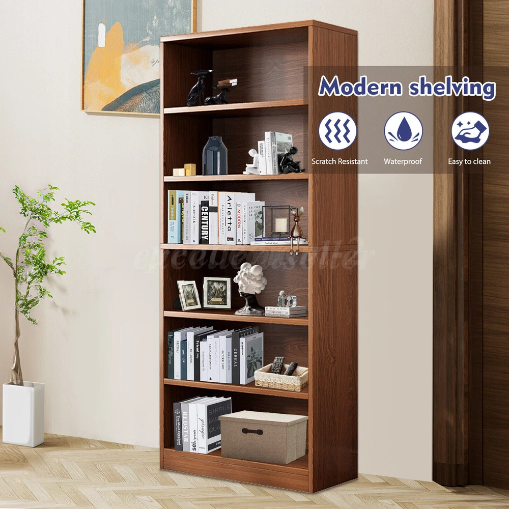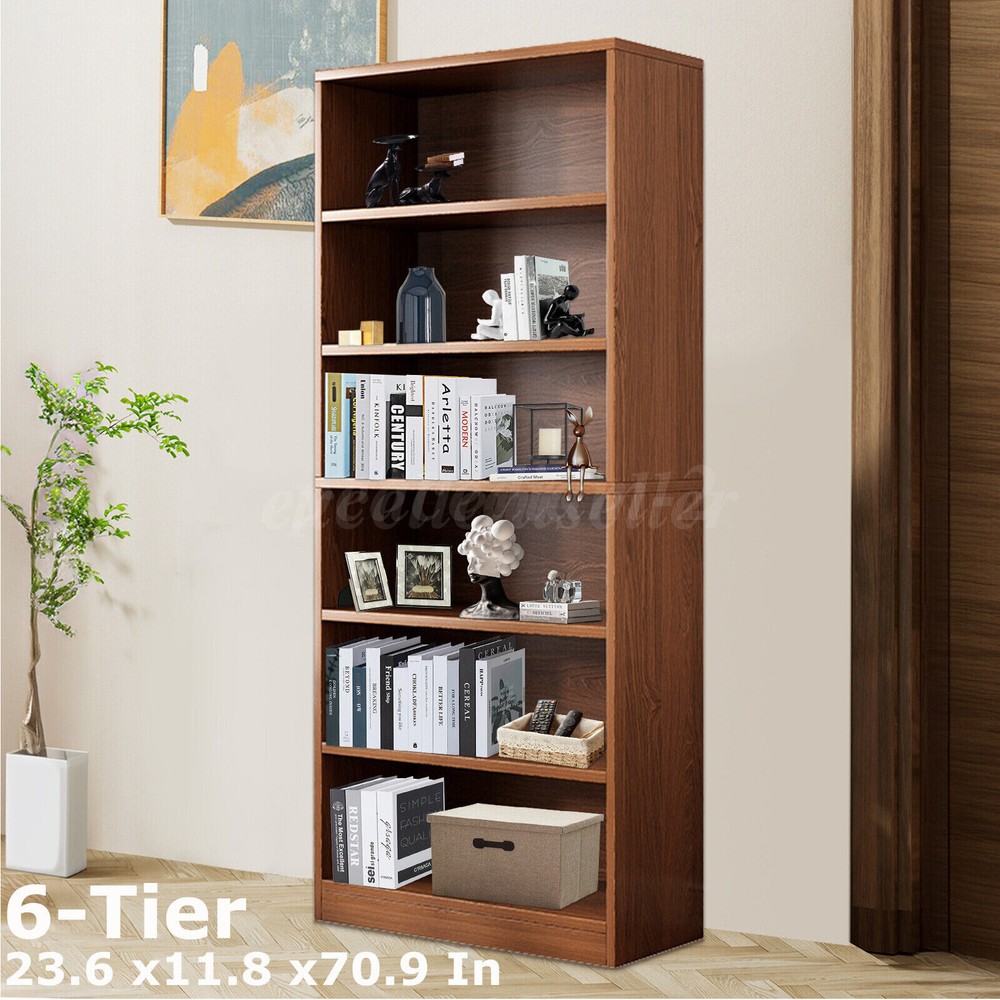 71'' Tall Adjustable 6-Shelf Wood Bookcase Storage Shelving Book Wide Bookshelf PRODUCT DETAILS The storage bookshelf is made from high-density MDF particleboard, ensuring durability and strong load-bearing capacity to protect your books and treasured items. Reinforced screws securely connect each shelf, ensuring a stable and safe structure. The six-tier design features smooth lines, blending rustic charm with modern simplicity, suitable for various home styles. Its waterproof design makes it easy to clean and maintain a tidy appearance. Spacious storage space allows you to organize books, photos, decorative boxes, and more, keeping your home office neat and orderly. The bottom anti-slip pads provide stable placement without sliding. This storage bookshelf is the ideal choice for your home organization needs. Specification: Type: Storage Bookshelf Dimensions (LxWxH) : 23.6"x11.8"x70.9" /60x30x180cm (Large Size) Number of Tiers: 6 Material: MDF Particleboard Color: Brown Applicable Occasions: Kitchen, Living Room, Dining Room, Bedroom, Home Office Style: Simple Modern Features: -📚 【 Durable and Strong Load-Bearing 】The bookshelf is made from high-density MDF particleboard, precisely processed and quality controlled to ensure the sturdiness and durability of the board. Each shelf is designed to easily support up to 22 lbs, providing safe protection for heavy encyclopedias and valuable collectibles. -📚 【 Stable Structure, Safe and Secure 】Reinforced screws tightly connect each shelf, making the bookshelf structure more stable. -📚 【 Chic Rustic, Simple and Stylish 】The bookshelf features a six-tier design with simple and smooth lines, showcasing a unique rustic charm. The height between each shelf is suitable for placing various sizes of books and items. The edges are carefully polished to be smooth and not easy to scratch fingers. The brown design makes it versatile, fitting seamlessly into any space in your home. -📚 【 Waterproof Design, Easy to Clean 】Made from waterproof MDF boards, the bookshelf effectively resists water and stain penetration. Even if accidentally splashed with water or stained, you don't need to worry. Simply wipe with a damp cloth to restore its original condition, keeping the bookshelf clean and beautiful. -📚【 Ample Storage Space, Hassle-Free Organization 】This brown bookshelf unit offers spacious storage space for books, photos, decorative boxes, and other small items. You can categorize books according to your needs, making your home office more organized. Package Contents: A set of shelving shelves (including installation instruction) Note: 1. Please allow slight differences due to manual measurements. 2. Due to differences in display and lighting, the picture may not reflect the actual product. 3. Product details may vary slightly due to different production batches. If you are concerned about the price difference, please purchase with caution. Thank you for your understanding. 4. If you have any questions about the product, please contact us. PAYMENT We only support transactions on the ebay, do not support offline or private transactions. Please make sure the address is accurate before you pay. SHIPPING We do not ship to PO Box, Alaska/Hawaii, APO/FPO, and US Protectorates. Item(s) would be shipped out within 1~2 working days after received your confirmed payment. Weekends and holidays are not working days. We will choose different warehouses according to the customer's address and item stock, shipped from CA and PA in the United States. RETURN Buyers may return or exchange an item which damaged within 30 days. eBay & PayPal money back guaranteed. CUSTOMER SERVICE We are committed to provide the best purchase experience for our customers. If you have any questions, just feel free to contact us, we respond queries within 24 hours in business days.