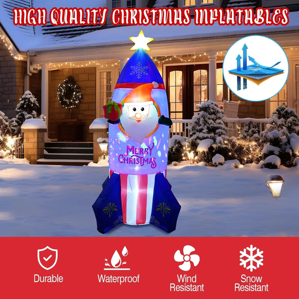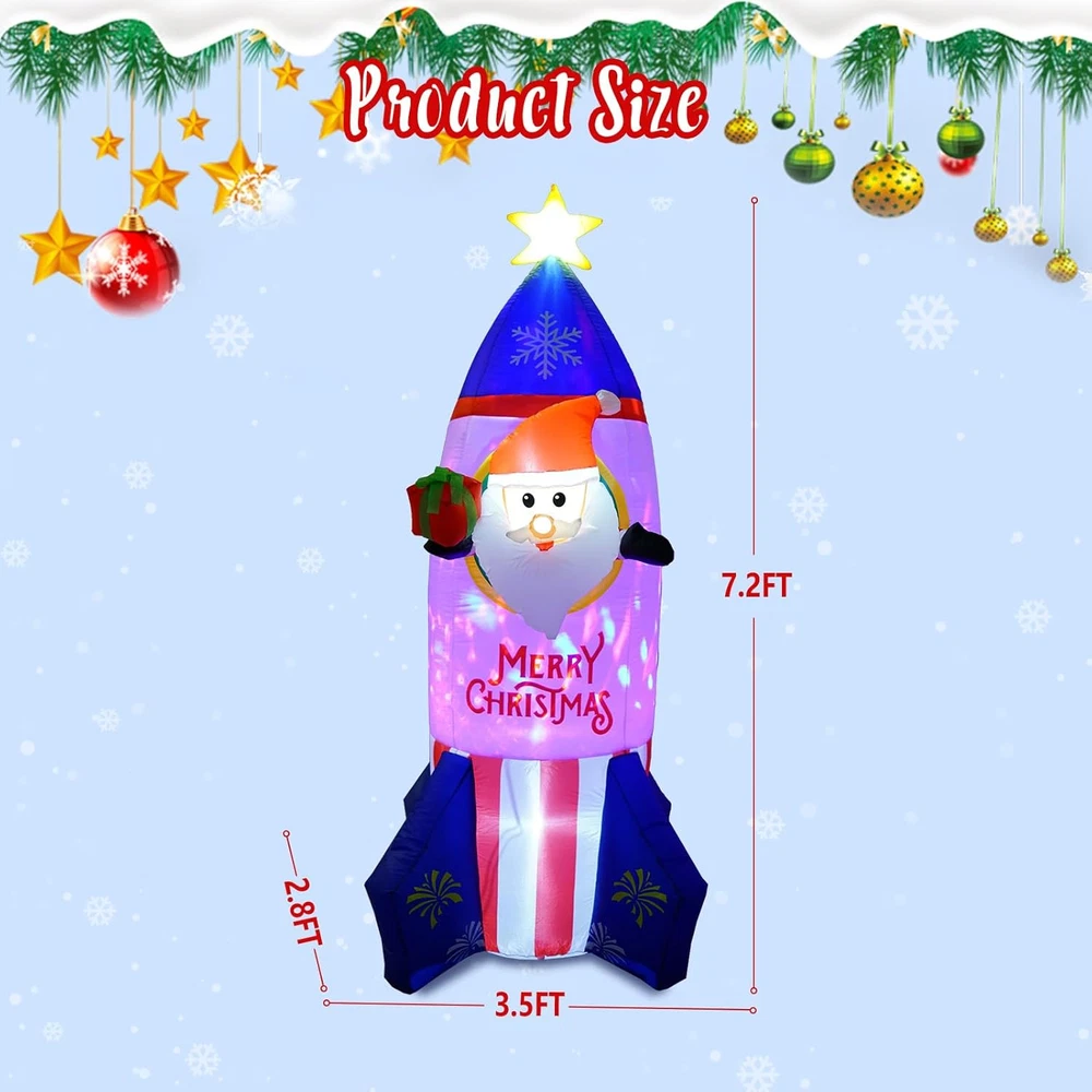 7.2 FT Christmas Inflatable Santa Ride Rocket Decoration Blow up LED Light Decor Description Item model number Santa Claus Ride Rocket Item dimensions L x W x H 42 x 33.6 x 87 inches Product Dimensions 42 x 33.6 x 87 inches Color White & Blue Material Polyester Country of Origin China Style 7.2FT Santa Ride Rocket Item Weight 2.35 pounds Theme Christmas Occasion Christmas Special Feature Weather Resistant Light Color Colourful Cartoon Character Santa Claus 【Premium Quality & Safety】 The Christmas inflatable Santa Claus rides rocket decoration features lightweight and weather-resistant polyester as well as a compact design, which is equipped with a built-in upgrade waterproof air blower with a UL-certified plug and it is also very safe for children. A must-choice for your Christmas decoration 【Unique Design 】 Christmas Inflatables Santa ride rocket(7.2*2.8*3.5 FT) is great for your home and yard which will get your family and friends in the festive spirit and create a more atmosphere 【4 Bright Led】 This cute blow up Christmas decoration has built-in fan, 3 internal bright LEDs and 1 RGB light. Freely change red, blue, and yellow lights in a few seconds. Plugging it into a standard electrical outlet will inflate in seconds and illuminate your Christmas 【Easy to Setup & Inflate】 The Christmas Santa inflatables are specially designed for quick and easy inflation following simple steps: close the zipper in the rear, plug it in the socket, and inflate it in seconds. The included ground ropes and tethers will keep it securely in place 【Perfect Gifts & Service】 Enjoy the 7.2FT Xmas inflatable to bring your family more fun indoors and outdoors. If you encounter any problems with our products, please get in touch with us first. We will provide you with comprehensive solutions to ensure normal use of the products. We also offer free fan motor replacement within 2 years Product Description Shipping Fast shipping is very important for us. Our expedited US shipping service is FREE. Your order will be shipped within 2 business days upon full payment received. Your order will be delivered within 2-3 business days after the handling time. Warranty & Returns 30-Day FREE Return Policy offered for unsatisfactory items. Options include: Refund or Exchange for another item. Contact us Customer satisfaction is our top priority. If you encounter any issues with our product, please don't hesitate to reach out to us. We are committed to ensuring your satisfaction and will go above and beyond to assist you. Your happiness is our goal! Copyright © 2024 BBQFLAME. | All Rights Reserved