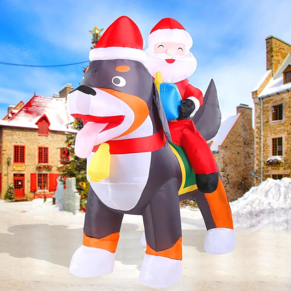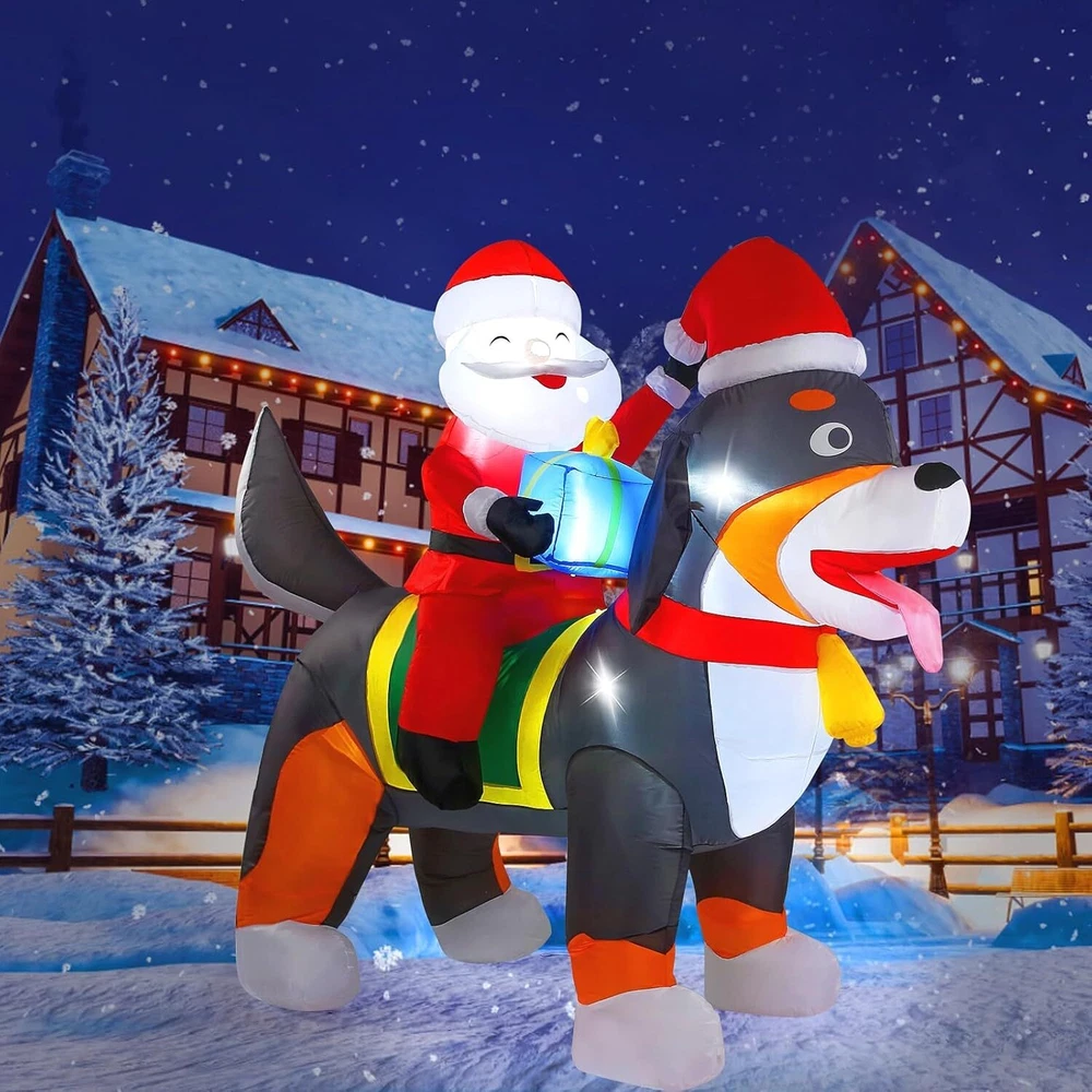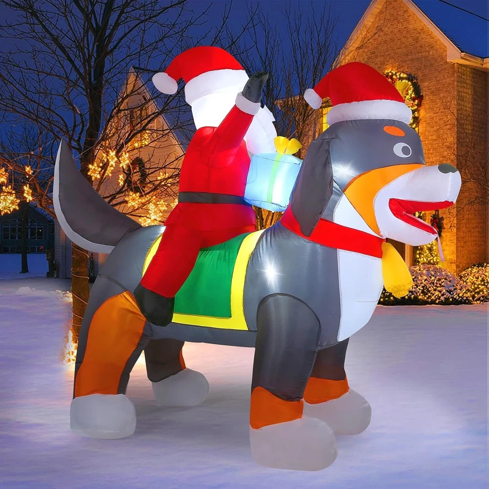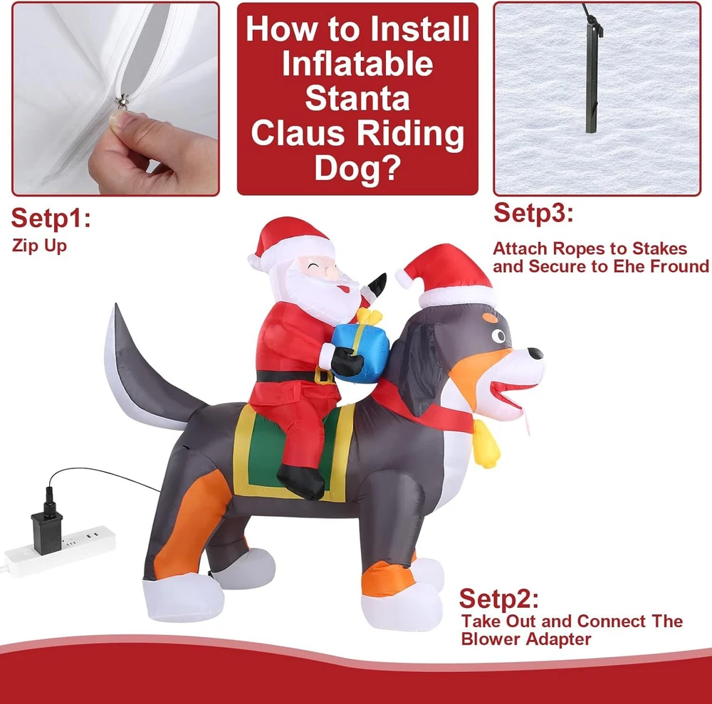 Outdoor Christmas Inflatables Decorations: This Santa Claus Riding dog inflatable decorations is 7.2 ft long and 6.9 ft high, the extra large size is sure to attract neighbors and tourists, will add countless fun to your Christmas and bring a great holiday atmosphere to everyone. Unique Christmas Inflatables Built-in LED Light: The Santa Claus with dog Christmas inflatable has a bright built-in LED white lights. Which is easy to spot this cute inflatable even at night, creating a warm and fun Christmas night for you. Easy to Use: This inflatable is equipped with a blower and only takes a few minutes to fully inflate. The 7ft long power cord can fully meet outdoor use. And ground stakes, fixed ropes and built-in waterbags, no need to worry about inflatables being blown away by the wind. It works perfectly in most weather. Premium Waterproof Christmas Yard Decorations: This Christmas inflatables are made of high quality polyester fabric, high strength and waterproof. Exquisite sewing techniques greatly increase the durability of the inflatable. Applicable Scene: Whether it is outdoor, roof, yard, lawn. This Christmas inflatable is a perfect Christmas party decorations for creating a Christmas atmosphere. Product Description 7.2 FT Christmas Inflatables Yard Decorations Outdoor Santa Claus Riding Dog Christmas Inflatables Decorations Built-in LED Lights Christmas Decorations Let's add some fun to the coming Christmas This santa claus riding dog Christmas inflatable has 5 sets of super bright built-in LED lights, which will attract neighbors and countless tourists when lit at night. It's definitely the perfect way to add fun outdoors at Christmas. Details Built-in powerful blower Built-in 5 Sets LED lights Waterproof polyester Length 7.2FT Height 6.9FT Outdoor Christmas Inflatables This santa claus riding dog inflatable Christmas decorations is sure to attract neighbors and tourists, will add countless fun to your Christmas and bring a great holiday atmosphere to everyone. Built-in Powerful Blower Just plug in the power and it will be blown up in a short time. There are also stakes, fixed ropes and built-in water bags, so you don't have to worry about it being blown away by the wind. It works perfectly in most weather. Built-in LED Light The santa claus riding dog Christmas inflatable has 5 sets bright built-in LED white lights. Which is easy to spot this cute inflatable even at night, creating a warm and fun Christmas night for you. Style 7.2FT Santa Claus Riding Dog Item Dimensions 87 x 19.99 x 83 inches Color Multicolor Light Color Bright White Material Type Polyester Item Weight 2.4 Pounds Theme Christmas Occasion Garden, Yard, Porch, Lawn, Outdoor Additional Features Led Lights, Easy Setup, Lighted, Foldable Subject Character Santa Claus Riding Dog Cartoon Character Santa Claus Riding Dog