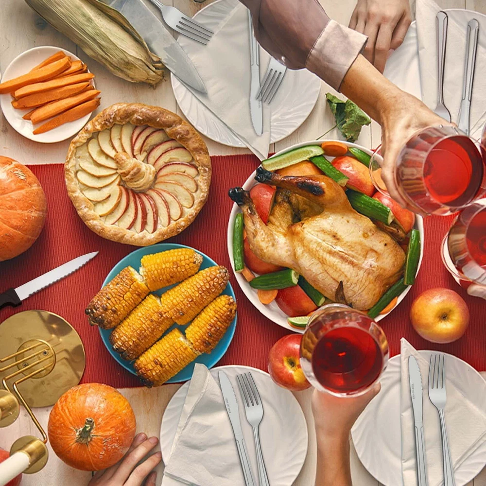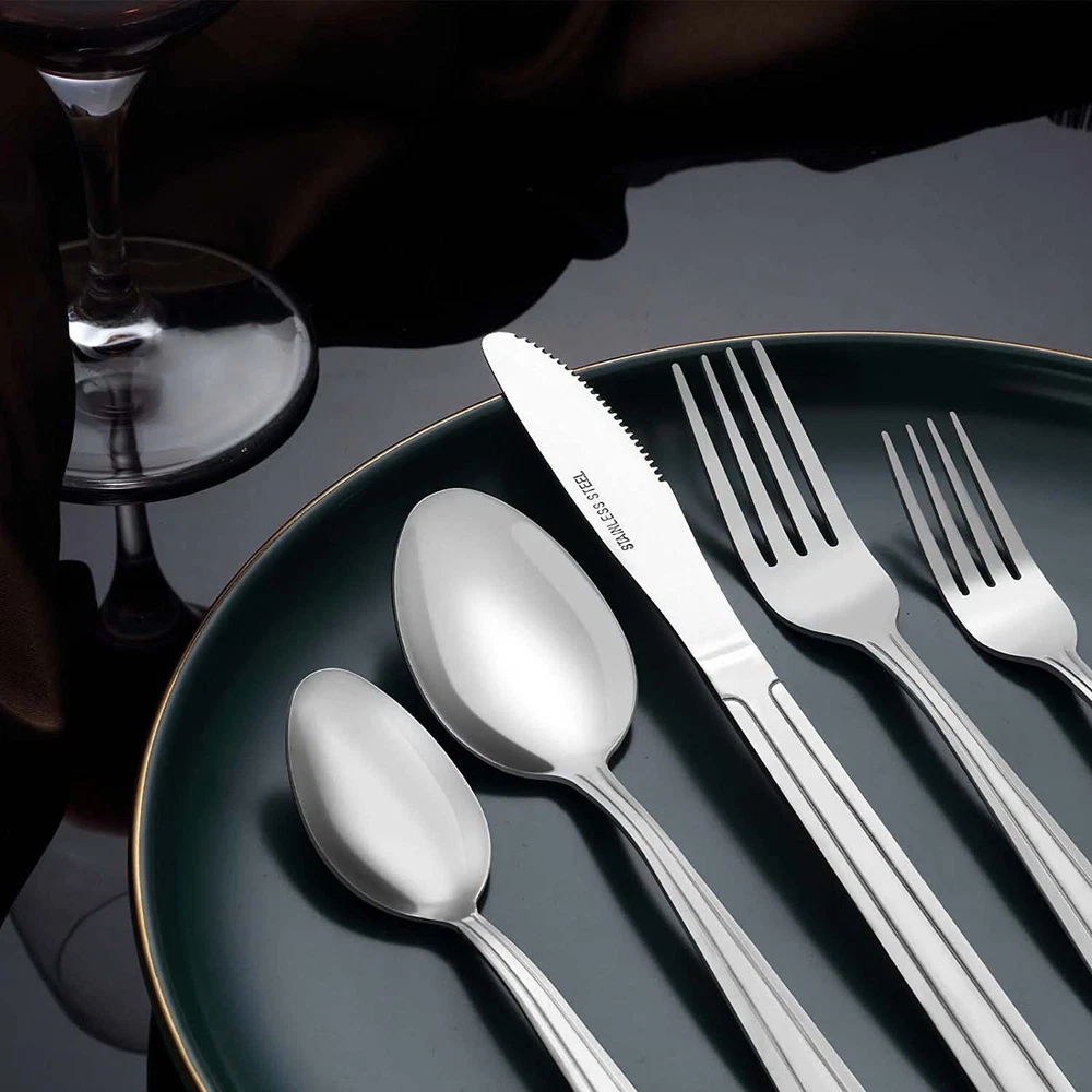 72 Pcs Flatware Set for 12 Mirror Polished Tableware Set for Home Entertaining Premium 72-Piece Silverware Set- This silverware set Includes 12 dinner forks, 12 salad forks, 12 dinner knives, 12 dinner spoons, 12 teaspoons and additional 12 steak knives, which is suitable for 12 people. Great Value with 12 Steak Knives- The 72 pieces flatware sets include 12 additional steak knives with sharp serrations are easy to slice steaks or disassemble a turkey. At the same time, the handle of the steak knife is round and the ergonomically arc design. High Quality Materials- This cutlery set is made of high quality stainless steel which is very durable, corrosion resistant, nickel free and will not produce residues or odors. Mirror Polished and Pattern Design- The silverware sets are highly mirror polished and has smooth edge. The stainless steel flatware has a unique texture design on the front side of each handle to make the cutlery set more elegant. Furthermore, the elegant silverware set complements most tableware, elevating everyday meals into a fine dining experience. Multiple Uses & Dishwasher Safe- The silverware set is not only suitable for everyday use, but also for holiday parties, weddings, camping and entertainment. Meanwhile, the silverware set is dishwasher safe. Package Included: 12 Dinner Knife 12 Steak Knives 12 Dinner Spoon 12 Dinner Fork 12 Salad Fork 12 Teaspoon Using Instruction : Please wash these silverware sets before first use. After use, please clean and dry the silverware sets completely for their durability. Don’t scratch the silverwares with the iron wire to keep their surface smooth. The cutlery sets are dishwasher safe that you can run them in dishwasher to save time. Shipping/Fulfillment We offer FREE shipping to most States except for the following: California, Connecticut, District of Columbia, Massachusetts, Louisiana, Maryland, Mississippi, Tennessee, Washington, New Mexico, Illinois We use a selection of shipping services such as but not limited to: UPS, FedEx, USPS, DGM SmartMail Expedited, etc. We only ship to the lower 48 states, no APO/FPO addresses, or PO Boxes allowed. Local pickups and combined shipping options are not provided at this time. ORDER FULLFILLMENT Most items are forwarded to our supplier for processing, which will then be fulfilled through a distributor that is closest to your location. Th ese distributors may be names you recognize or sourced from smaller local operations. Return You can return a product for up to 30 days from the date you purchased it. Any product you return must be in the same condition you received it and in the original packaging. Payment We accept payment by any of the following methods: PayPal, GPay, Venmo, Visa, Mastercard, American Express, and Discover Feedback Customer satisfaction is very important to us. If you have any problem with your order, please contact us and we will do our best to make you satisfied. Contact Us If you have any queries, please contact us via eBay. We usually respond within 24 hours on weekdays. Please visit our eBay store to check out other items for sale! Thank you for shopping at our store.