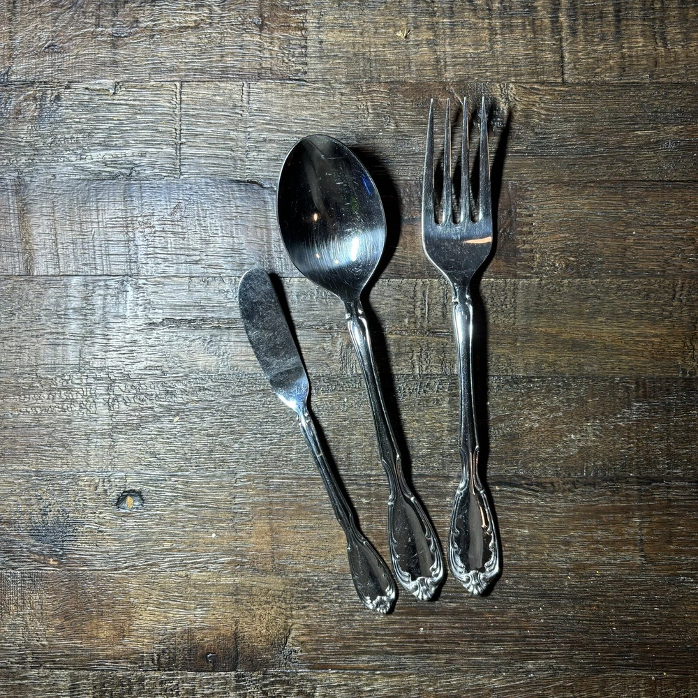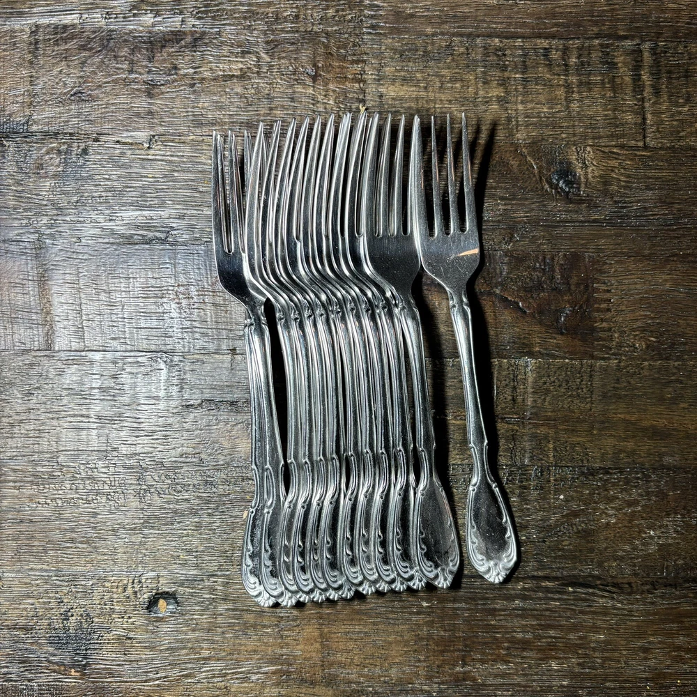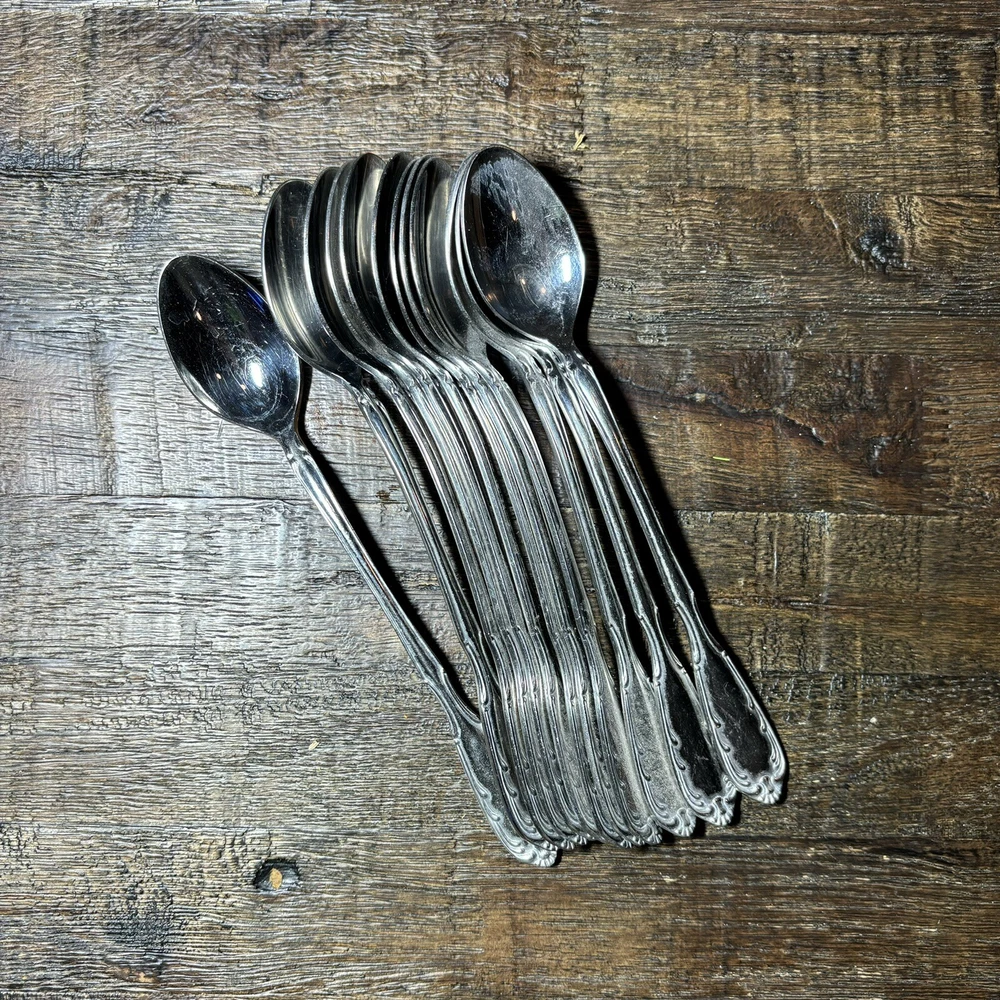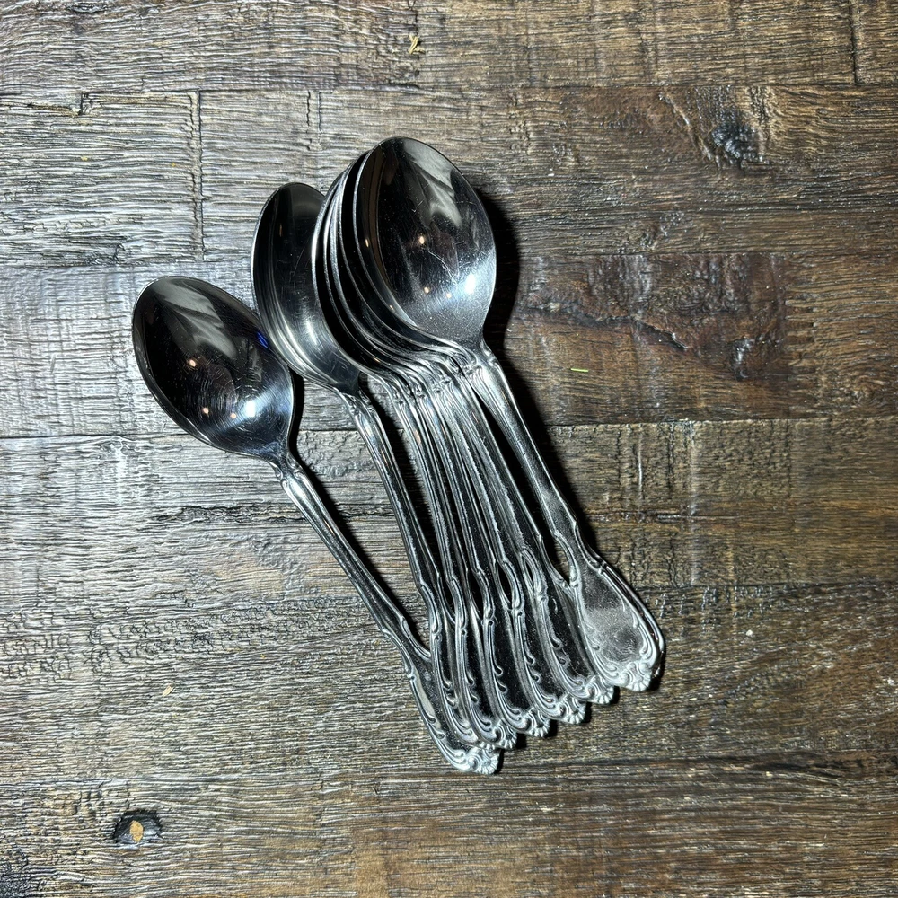 72 Peice Set! Service for 10 Plus Hostess Set These items are pre-owned. Overall, they are in very good condition with some wear (fine scratches) due to age and use. 12 - Dinner Knives 12 - Dinner Forks 12 - Place Spoons 13 - Salad Forks 8 - Teaspoons 12 - Ice Tea Spoons 1 - Master Butter Knife 1- Serving Spoon 1- Serving Fork