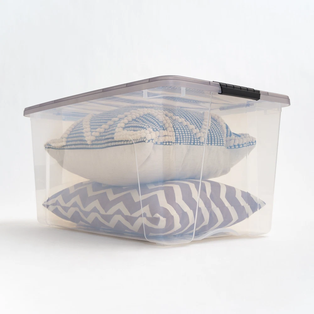 Declutter and organize with ease using these reliable storage containers designed for everyday use in any space. These plastic storage bins with lids are a practical and efficient solution for organizing your home, garage, office, or classroom. Whether you need to store clothing, tools, crafts, pantry goods, or holiday decorations, these storage totes offer the strength, capacity, and convenience you need. Each storage bin features a secure latching lid to keep contents protected from dust, dirt, and moisture, making them perfect for both short-term and long-term use. The storage bins with lids are ideal for storing seasonal items, kids’ toys, school supplies, or office materials. These totes for storage are designed to keep your space neat and your belongings easily accessible. Built-in handles make every storage tote easy to carry and move, while the stackable design allows you to save floor space and maximize vertical storage. These totes stack securely to help organize closets, shelves, pantries, basements, and garages. The sturdy construction of these storage totes with lids ensures long-lasting performance, even with frequent use. Perfect for any room or setting, these storage bins are a versatile choice for dorm rooms, laundry rooms, classrooms, or during a move. Whether you're creating a more organized home or simply need a dependable tote for packing away items, these plastic storage bins with lids are the ideal choice. Take control of clutter and simplify your life with these all-purpose storage containers. From everyday essentials to seasonal storage, these bins provide a dependable and stylish way to stay organized. Designed for durability, ease of use, and space-saving efficiency, these storage totes deliver reliable performance and flexible storage for any lifestyle. Bins with 72 Qt. capacity – Large interior provides ample room for bulky items, seasonal gear, or household essentials. Storage containers built for durability – Strong plastic construction ensures long-lasting use for all your storage needs. Storage bins with lids – Secure latching lids keep your items protected from dust, dirt, and moisture. Totes for storage and organization – Ideal for home, garage, basement, or office use to reduce clutter and stay organized. Plastic storage bins with lids – Durable bins with tight-fitting lids provide easy access to contents while keeping items protected. Storage totes with stackable design – Save space by stacking multiple bins vertically in compact areas. Storage totes made for convenience – Lightweight and easy to carry with built-in side handles. Bins for multipurpose use – Great for clothing, tools, crafts, decorations, and more. Storage totes with secure latches – Snap-tight latches keep contents secure whether you're storing or transporting.