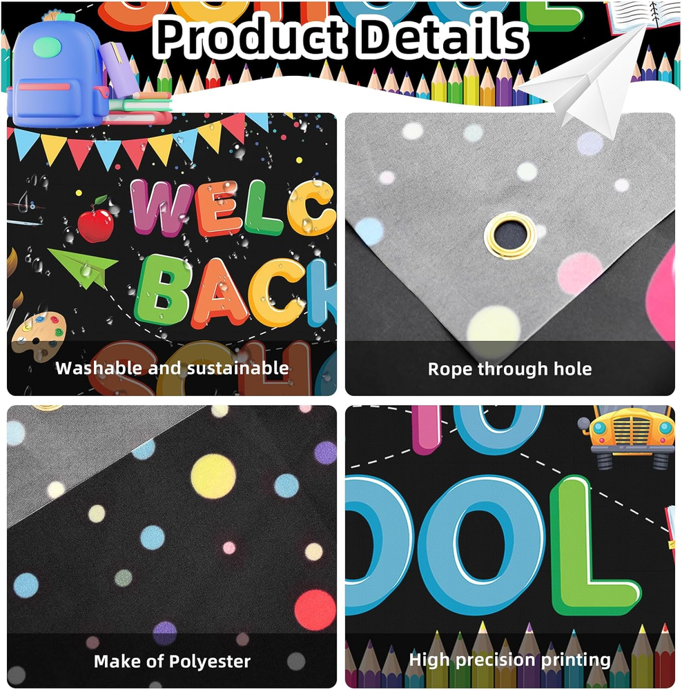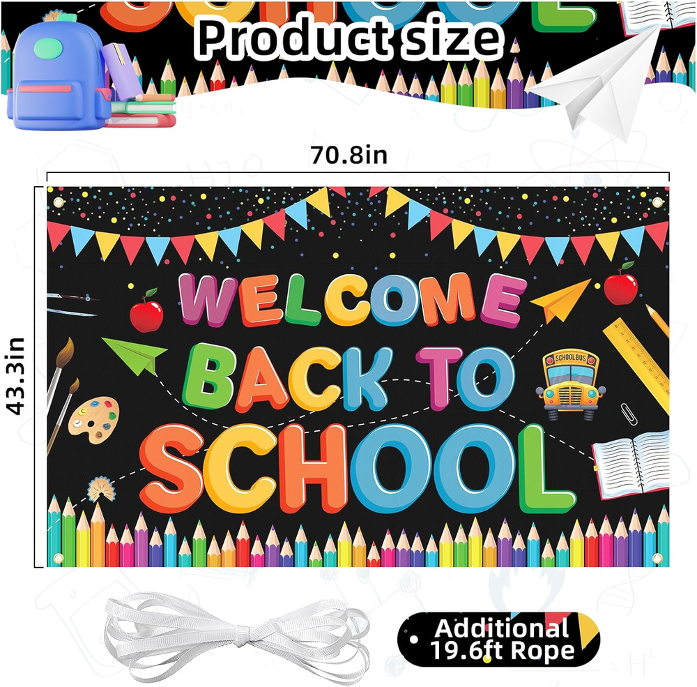 Fast Shipping On All Items 30 Days Money Guarantee Customer Support Excellent Service 100% Satisfaction Satisfaction Guaranteed 72 x 44 Inch Welcome Back to School Banner - First Day of School Hanging Banner Backdrop, Large Welcome Sign Poster Bulletin Board Flag Wall Decorations for School Classroom Specification Item model number GST35 Color Multicolor Product Dimensions 72"L x 44"W Fabric Type Durable Poylester Fabric Item Weight 5 ounces Theme back to school Recommended Uses For Product Entryway, Outdoors, School, Teacher's Office Occasion back to school Special Feature Fade Resistant, Foldable, Lightweight, UV Resistant, Wrinkle Resistant Specific Uses For Product Indoor, Outdoor Product Care Instructions Hand Wash Only 44.0 "w x 72.0 "w. Weight: 5.0 oz Item Description Durable Fabric: Crafted from lightweight, wrinkle-resistant, fade-resistant, and UV-resistant polyester fabric material for long-lasting use. Colorful Design: Features vibrant illustrations of school supplies, books, pencils, and an inspiring welcome message to create a lively atmosphere. Large Size: Measures 72 x 44 inches to provide a prominent backdrop for classroom displays and bulletin boards. Easy to Hang: Comes with pre-punched holes and a string for hassle-free hanging on walls, bulletin boards, or anywhere else in the classroom. Back to School Theme: Perfect for welcoming students back to school, creating a festive atmosphere, and fostering excitement and anticipation for the school year ahead. Product description Perfect for Classroom Decorations and Parties. It sets a positive tone for the first day of school and fosters excitement and enthusiasm. More Product Details Large Size Measuring 72 x 44 inches, this banner provides a prominent backdrop that can be easily seen from a distance. Vibrant and Engaging Design Featuring colorful illustrations of school supplies, books, pencils, and an inspiring "Welcome Back to School" message. High-Quality School Banner Crafted from durable fabric material, this Welcome Back to School Banner is built to withstand the demands of the school environment. Easy to Hang The banner comes with pre-punched holes and a string, allowing for hassle-free hanging. Large Size for Impactful Displays. It can be easily displayed on walls, bulletin boards, or anywhere else in the classroom where it can be seen and appreciated by students and teachers alike. More Suitable Occasions This Welcome Back to School banner can be used in classrooms, hallways, libraries, or any other area where a warm and inviting atmosphere is desired. This "Welcome Back to School" banner can also be used on school buses, adding a festive atmosphere to the new academic year, and creating excitement and anticipation. A dependable choice for classroom decoration. Other Choices Add to Cart Add to Cart Add to Cart Customer Reviews 4.7 out of 5 stars 26 4.6 out of 5 stars 16 4.3 out of 5 stars 5 — 4.9 out of 5 stars 17 Price $8.99 $ 8 . 99 $6.99 $ 6 . 99 — — $7.99 $ 7 . 99 Material Fabric Polyester Fabric Fabric Paper and Cardstock Paper and Cardstock Size 5.9 x 3.6 ft 5.9 x1 ft 9.8 x 1.6 ft 3m per string 3m per string Quantity 1 piece two-string 1 piece two-string two-string Back to School Party ✔ ✔ ✔ ✔ ✔ Color Colorful Colorful Colorful Colorful Colorful About us We offer the best prices around on high quality products. Our E-store includes media such as books, movies, music and games while offering electronics, toys, sporting apparel, clothing, tools, general home, garden items and more. Shipping We are always working hard to ensure your package arrives as soon as possible. Please understand that some factors like weather, high postal traffic, and the performance of shipping companies are outside of our control. We offer free shipping to the lower 48 states and ship within 2-3 business days of payment, usually sooner. We do not accept P.O. Boxes. Please provide a physical address. For shipping outside of the continental USA, we only use eBay's Global Shipping Program.The item is shipped to KY and then sent to the rest of the world. International customers are responsible for all duties and taxes. Continue to check out to calculate costs for shipping the item to your country. Messages regarding eBay's Global Shipping Program MUST be directed at eBay EXCLUSIVELY. Returns We offer a 30-Day Return Policy on items in which you are not completely satisfied with. You have the option of a full-refund or an exchange of the item. No returns are available on items shipped outside of the USA Satisfaction We try over very best to make sure every customer is completely satisfied. If there's a problem, message us! We're happy to help. Payment Options Shop With Confidence