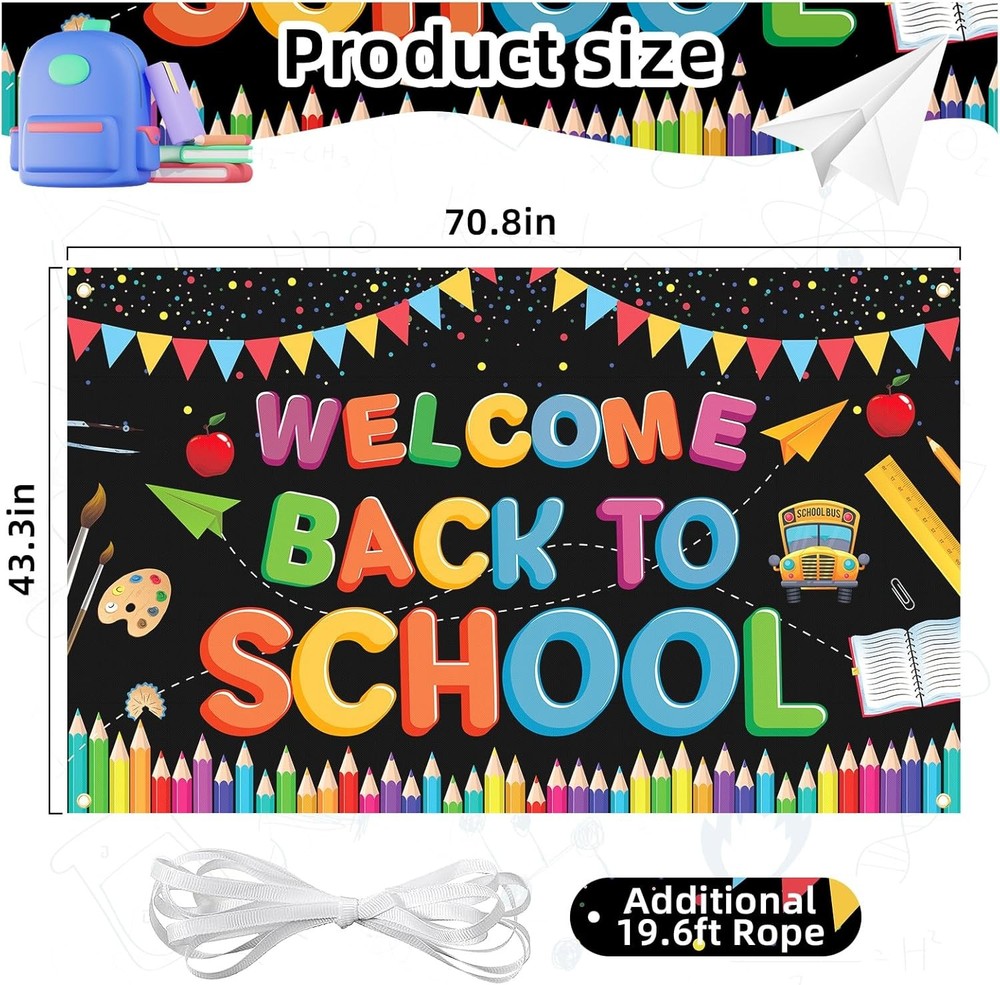 Free eBay listing template designed by dewiso.com 72 x 44 Inch Welcome Back to School Banner - First Day of School Hanging Banner Backdrop, Large Welcome Sign Poster Bulletin Board Flag Wall Decorations for School Classroom FREE AND FAST SHIPPING! About this item Durable Fabric: Crafted from lightweight, wrinkle-resistant, fade-resistant, and UV-resistant polyester fabric material for long-lasting use. Colorful Design: Features vibrant illustrations of school supplies, books, pencils, and an inspiring welcome message to create a lively atmosphere. Large Size: Measures 72 x 44 inches to provide a prominent backdrop for classroom displays and bulletin boards. Easy to Hang: Comes with pre-punched holes and a string for hassle-free hanging on walls, bulletin boards, or anywhere else in the classroom. Back to School Theme: Perfect for welcoming students back to school, creating a festive atmosphere, and fostering excitement and anticipation for the school year ahead. Product We offer a 30-Day Return Policy on items which you are not completely satisfied with. You have the option for a full-refund or an exchange of the item. No returns are available on items shipped outside of the US . Shipping We offer Free Shipping to the US and ship within 2 business days of payment, usually sooner. We use UPS express shipping. That's why your products are usually delivered within 3 days . Contact We try our very best to make sure every customer is completely satisfied. If there's a problem , message us! We're happy to help. 24/7 live chat available.