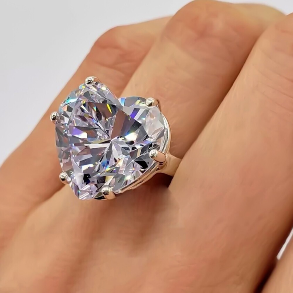 $ 166.957.20 Ct EGL Certified Heart Cut Solitaire White Diamond 925 Sterling Silver Ring