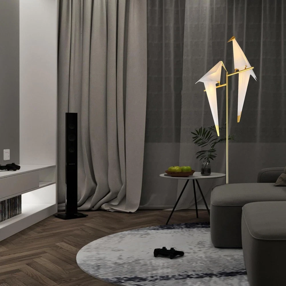 72In Modern LED Floor Lamp, 2-Birds Floor Light Gold Metal Lamp Fixtures