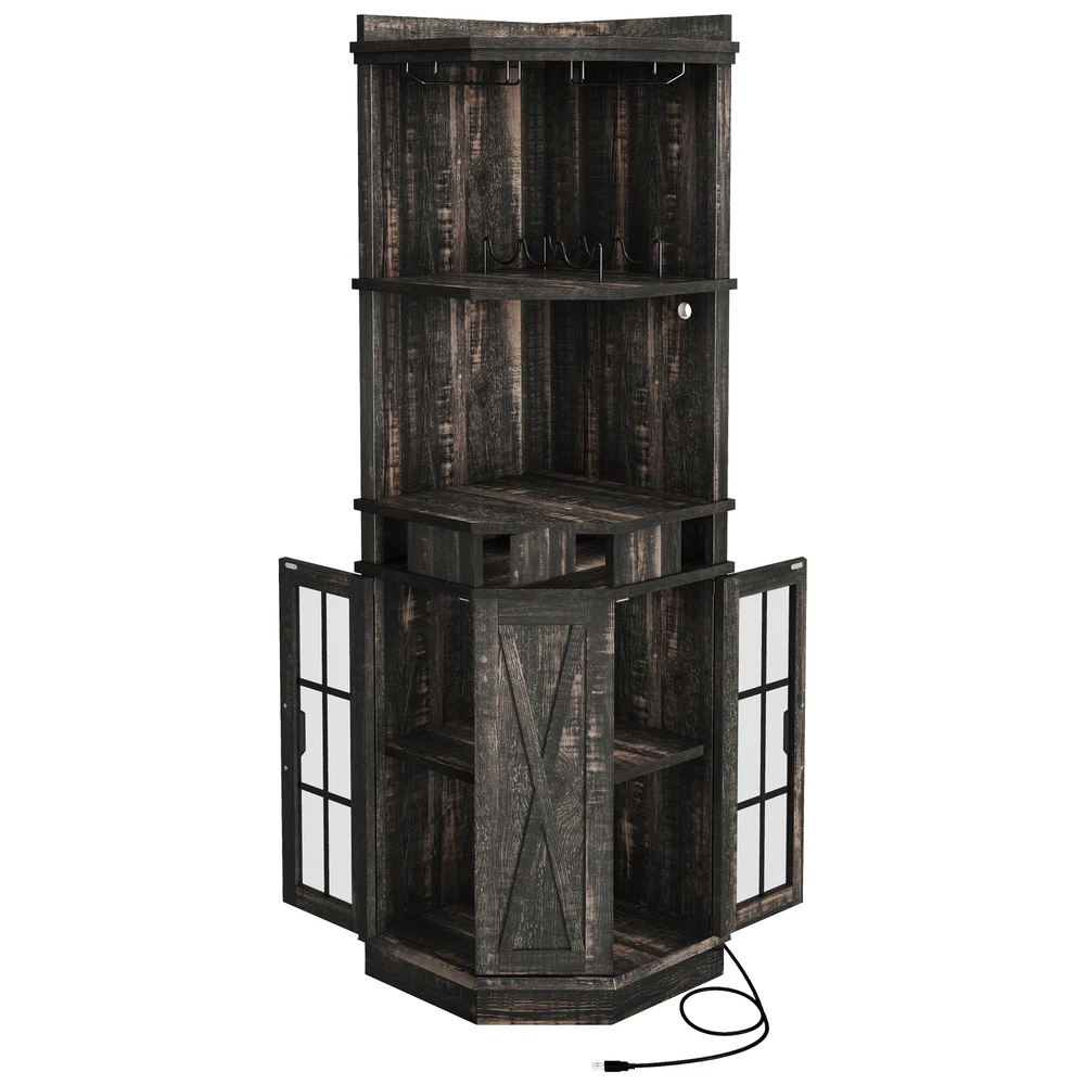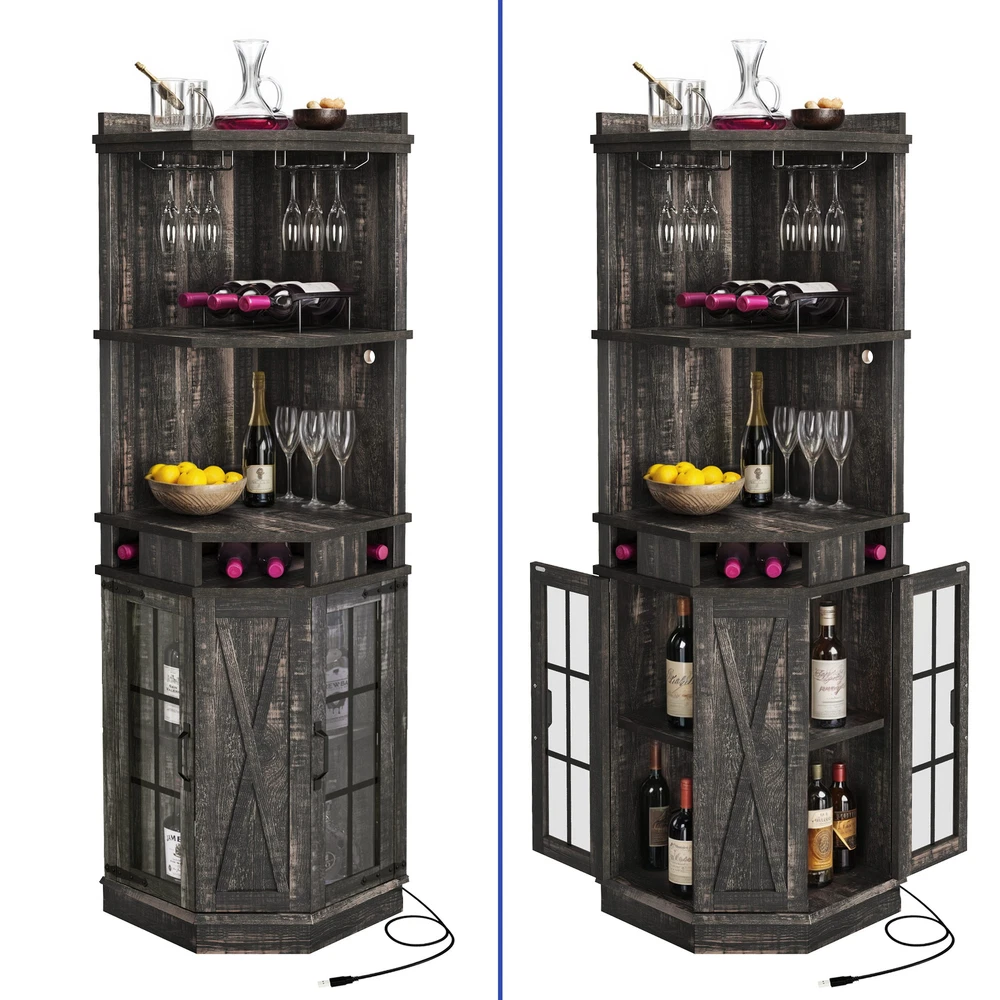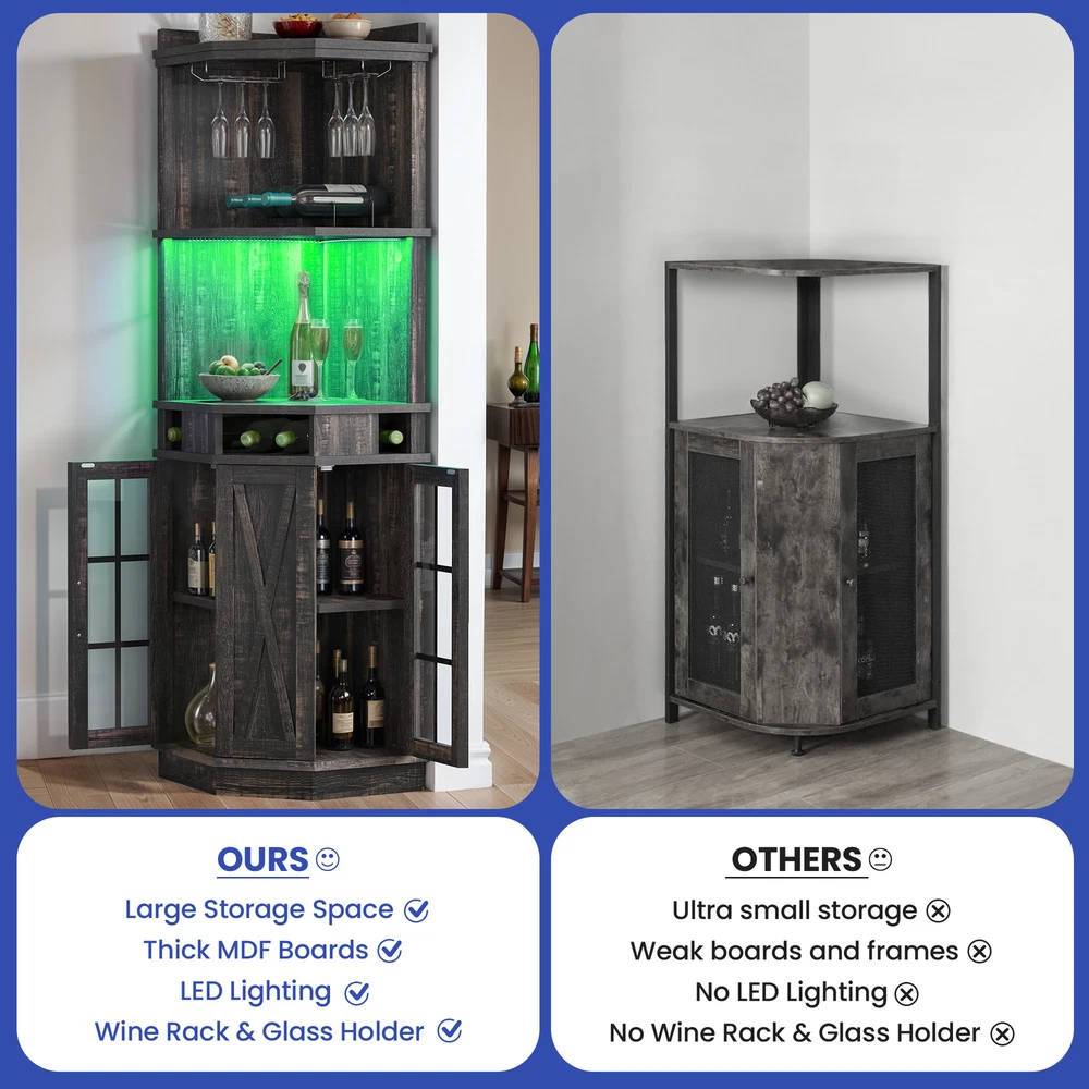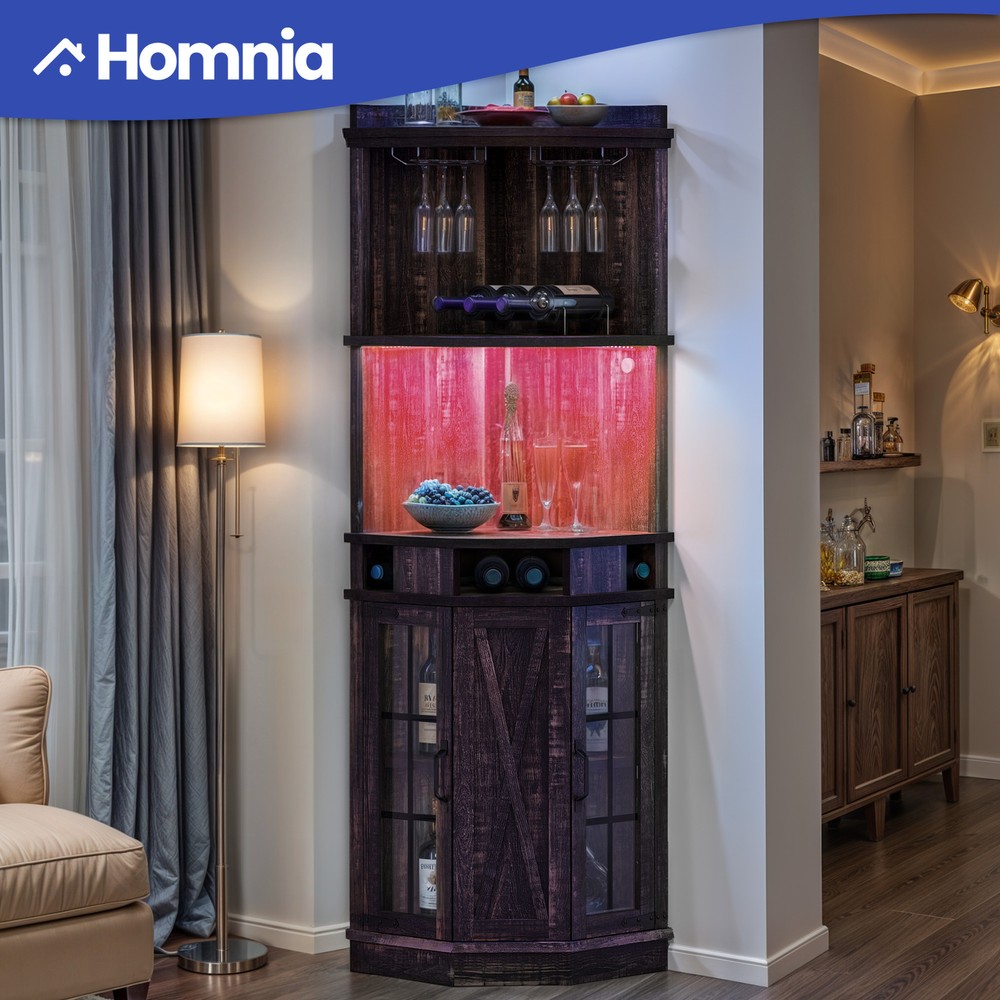 72" Corner Bar Cabinet Liquor Storage Wine Bottle Rack Glass Door with LED Lights Product Description NOTE: Professional Installation would be Highly Recommended. Description: 1. Color: Black Oak 2. Material: MDF, Particle Board, Glass, Metal Handle 3. Room Type: Kitchen, Entryway, Living Room, Dining Room 4. Special Design: With Cabinet, Wine Glass Holder, Wine Rack, Adjustable Shelves, Waterproof Light Strip, Remote Control, Customizable LED Light, 12 Color Lighting Modes Features: 1. Adjustable Brightness LED Light: The Wine corner cabinet features 17 colors modes, 4 dynamic flashing modes, and adjustable brightness to create the perfect ambiance for any occasion. Whether it's a wine tasting, a lively party, or simply showcasing your collection, this cabinet offers both dazzling style and easy access to your favorite wines. 2. Large Storage with Adjustable Shelves: Three open shelves showcase your glassware and favorite wines elegantly. The lower cabinet, featuring glass doors, helps keep your barware neatly organized. Inside, adjustable shelves allow for customized storage. This design enhances both functionality and aesthetics in your bar area. 3. Sturdy Material & Stable Cabinet: Made from premium engineered wood, this corner wine bar cabinet is built for lasting durability. Its sturdy 2.75-inch thick base is dustproof and offers excellent stability. This ensures your wine collection is stored safely and securely. Enjoy both reliability and functionality in your storage solution. 4. Versatile Cabinet: These wine cabinets feature sharp 90-degree angles for a seamless fit. They are perfect for enhancing the style and utility of any room, whether it’s your dining room, living room, kitchen, or bedroom. The design brings both elegance and practicality to your space. Add a touch of sophistication to your home with these versatile cabinets. Dimensions: 1. Product Dimensions: 28.34"L X 18.11"W X 72"H 2. Corner Width: 18.11"W 3. Dustproof Base: 2.75"H 4. Maximum Load Capacity: 77 lbs 5. Item Weight: 86.53 lbs Package Included: 1. 1 x Corner Cabinet 2. 1 x Instructions 3. 1 x Accessory Kit Shipping 1. Normally the item will be dipatched within 1 business day if payment is cleared before 12pm PST. 2. Please verify the correct shipping address in your PayPal account before making the payment. We only dispatch the item to the address that is sent to us at the time of checkout. 3. We don't ship to Hawaii, Alaska, Puerto Rico, APO/FPO/PO Boxes. 4. We don't provide local pick-up service. 5. Normally we will use USPS, UPS, FedEx & LTL to dispatch items. Payment 1. We accept PayPal and credit card. 2. We will ship to the confirmed Paypal shipping address that is provided with the payment only. Return 1. 30 days Money Back Guarantee. 2. Please contact our customer service to receive a RMA form first if want to return the item. 3. All returned items MUST in new condition with the original package. Contact If has any problem, please contact us by sending an ebay message. Our customer service will resolve the problem as soon as possible. On Jul 3, 2024 at 01:08:26 PDT, seller added the following information: On Jul 14, 2024 at 21:06:23 PDT, seller added the following information: On Jul 24, 2024 at 05:30:25 PDT, seller added the following information: On Aug 5, 2024 at 19:28:32 PDT, seller added the following information: On Aug 8, 2024 at 04:06:03 PDT, seller added the following information: On Aug 28, 2024 at 22:13:25 PDT, seller added the following information: On Sep 18, 2024 at 21:49:59 PDT, seller added the following information: On Oct 20, 2024 at 22:11:07 PDT, seller added the following information: On Nov 11, 2024 at 19:16:15 PST, seller added the following information: On Nov 17, 2024 at 22:18:37 PST, seller added the following information: On Nov 22, 2024 at 00:23:58 PST, seller added the following information: On Nov 30, 2024 at 17:58:57 PST, seller added the following information: On Dec 16, 2024 at 23:14:06 PST, seller added the following information: On Dec 22, 2024 at 18:02:01 PST, seller added the following information: On Jan 30, 2025 at 18:47:21 PST, seller added the following information: On Feb 12, 2025 at 20:36:15 PST, seller added the following information: On Mar 12, 2025 at 18:55:44 PDT, seller added the following information: On Mar 16, 2025 at 23:53:10 PDT, seller added the following information:
