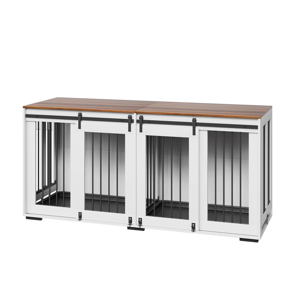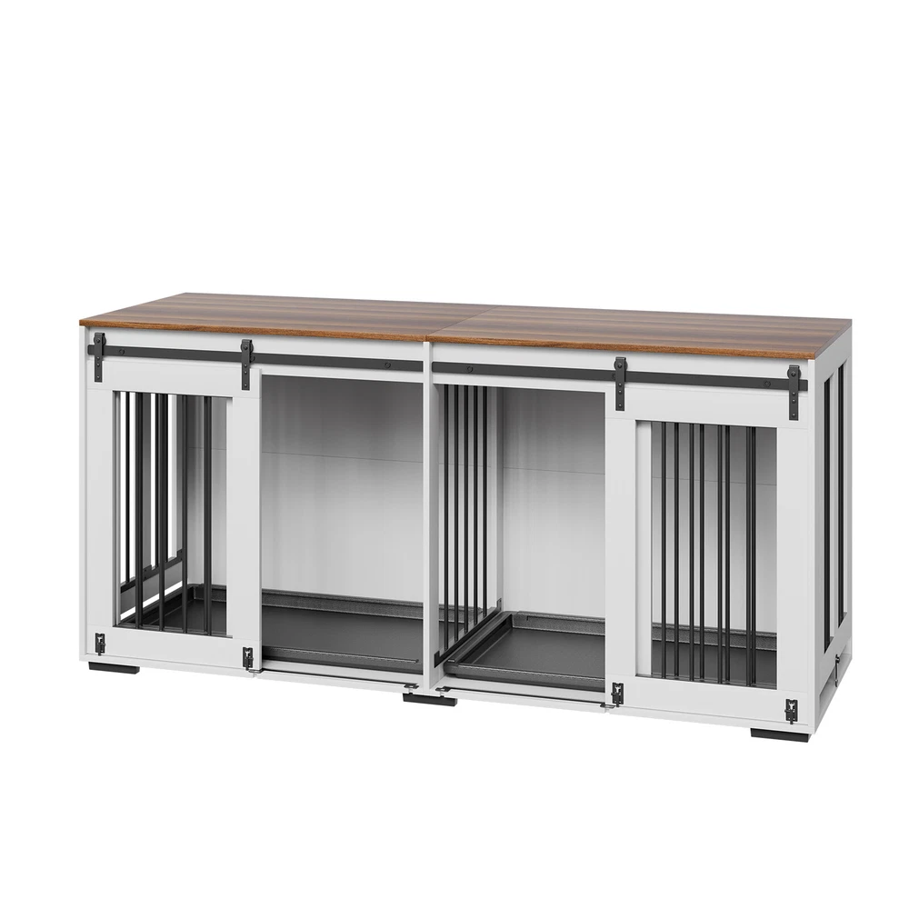 🎱71 Inch Large Dog Crate Furniture for 2 Dogs Wooden Double Dog Crate with Door