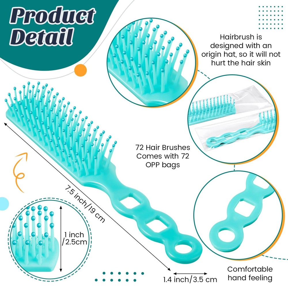 Features: Practical to use: The curl styling brush features a long handle part for easy control, the tooth part adopts a curved design that closes to your headline, flexible separate bristles allow you to adjust the strength for more comfortable combing. Lightweight to carry: The curl detangler brush is lightweight and portable for you to carry around, and won't take up too much space, you can create various hairstyles even when you need to travel or for business trips. Specifications: Material: plastic, nylon Color: cyan Size: approx. 7.5 x 1.4 inches Quantity: 72 pieces Package includes: 72 x Curly hair brushes Notes: Manual measurement, please allow slight errors on size. The color may exist slight difference due to different screen displays. Enough Quantity: the package includes 72 pieces of hair styling brushes for women in teal and black color matching design, which looks simple yet classic, suitable for most men and women to use, and the number also allows you to share with family members Soft Bristle Design: the styling brush is designed with soft nylon bristles, it can provide a softer, denser, and enhanced movement on your hair, good for smoothing, shaping, polishing the hair, and defining the curls Lightweight to Carry: each brush for curly hair measures approx. 19 cm/ 7.5 inches in length and just 80 g in weight, which allows you to use them in most places, such as travels and business trips, not add too much burden while providing much convenience Suitable Occasions: the vented and curved handle part of the wavy hair brush is comfortable for you to touch and grip, easy for most people to brush hair, ample in quantity, available for homeless, hotels, women's shelters, homeless care package supplies Reliable Craftsmanship: these men hair brushes are crafted by quality plastic material, long lasting, gentle for the scalp, hard to fracture or fade, easily remove your hair knots, comfortable to use