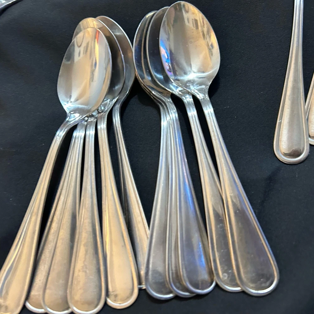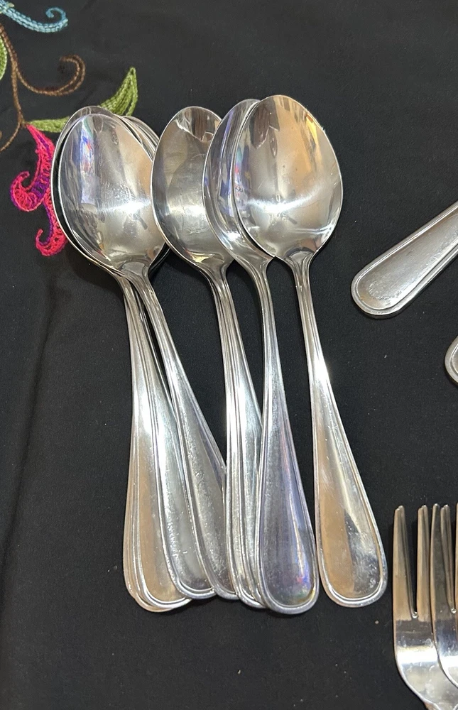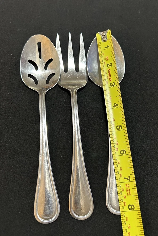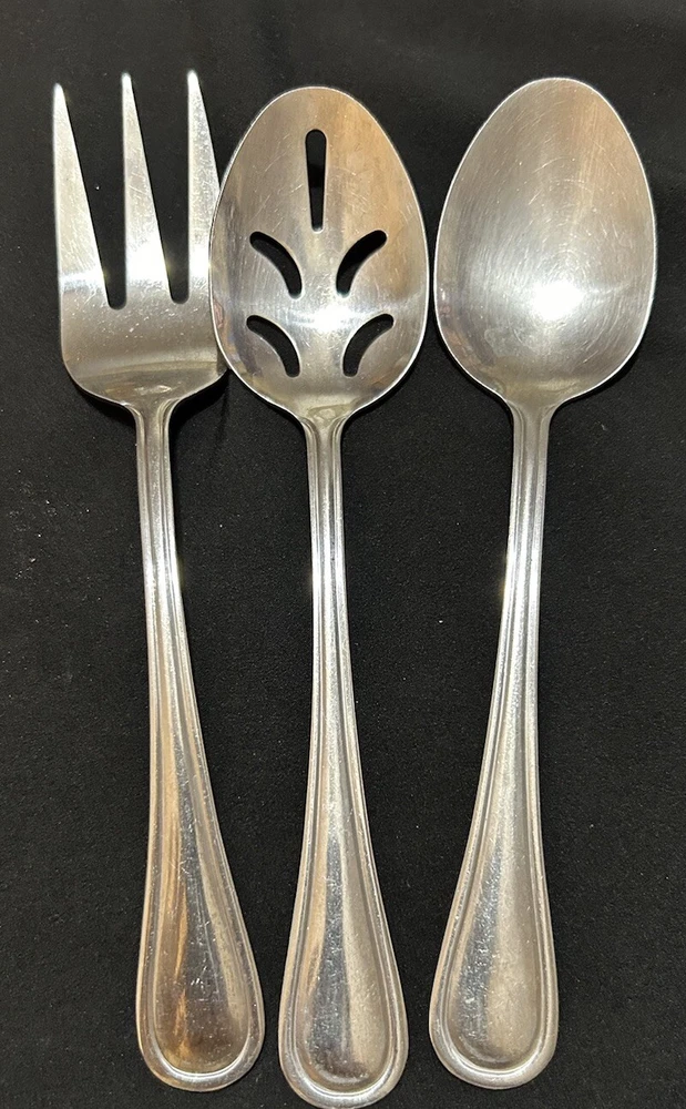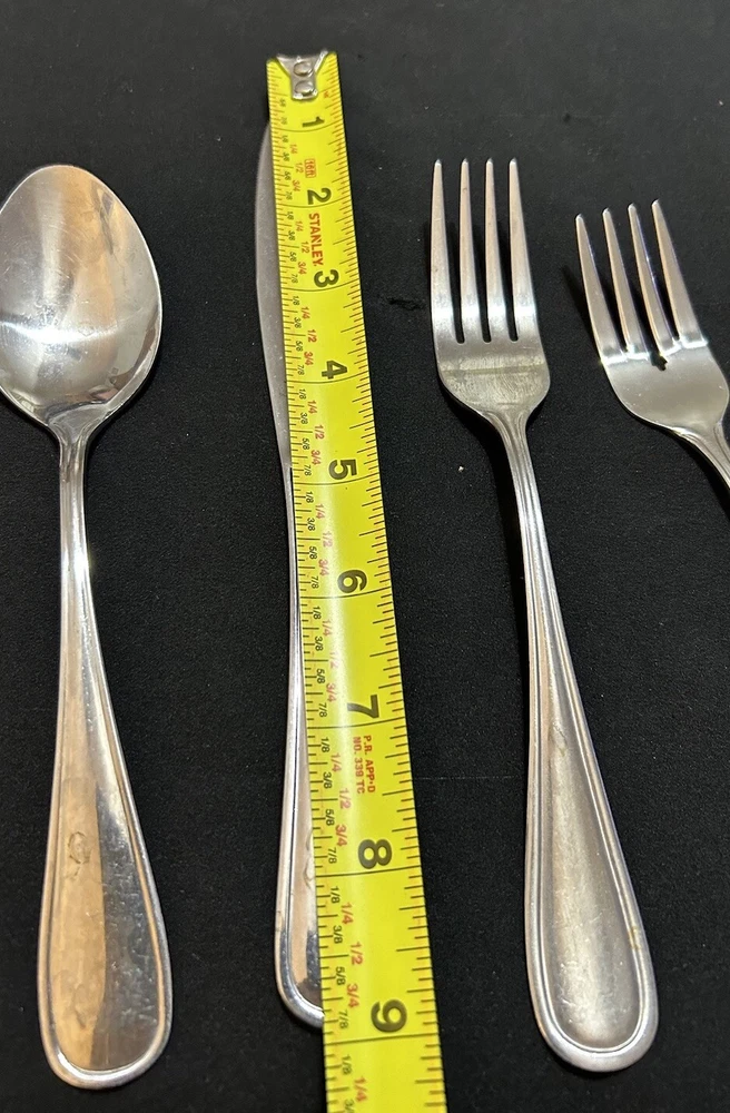 71pc Gibson Stainless Classic Dinner & Serving Hostess Set Forks Knives Spoons 12 Teaspoons 10 Dinner knives 12 Salad forks 9 Dinner forks 10 Dinner spoons 12 Cocktail forks 2 ice tea spoons 5pc Serving set Good vintage condition . Normal signs of wear and tear, Minor scratches, and some discolorations. Please study pictures carefully before purchasing Feel free ti ask any questions. Thank you for visiting our store! Bag70A