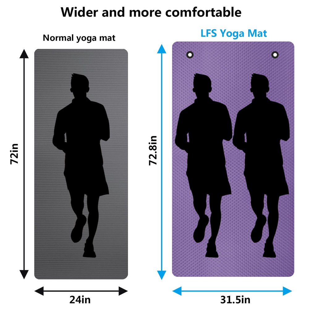 Extra thick for comfort and balance: Firm 10mm extra thick fitness mat w/ mat strap alleviates stress on pressure points such as joints, hips, hands, and knees. 72.8" X 31.5" extra wide. Our high-density, non-slip performance top provides unmatched durability and cushion. Mats are crafted from premium eco-friendly, non-toxic materials to create the perfect combination of heavy duty toughness, comfort and stability. Hangable and easy to clean: It is easy to keep clean and fresh for your next workout. Use a mix of gentle soap and water, wipe clean, and hang it to dry. Do not submerge. Non-slip surface:Unique wave shape non-slip material keeps you steady and balanced while staying securely on the floor, preventing injury and allowing you to focus on your practice or workout. Durability: yoga mat, thick, durable material allows for everyday use, regardless of the intensity of your exercise. Ideal for your home or studio practice.