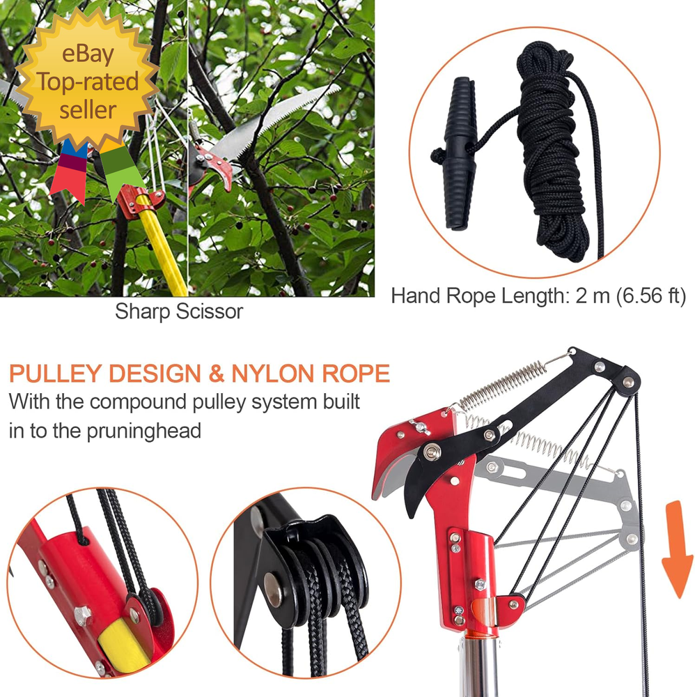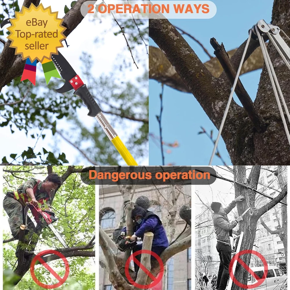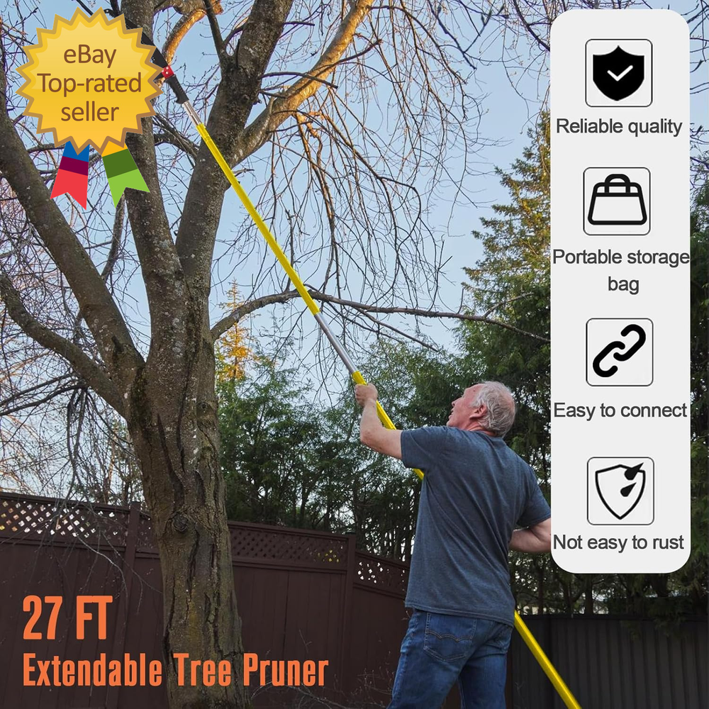 Store New Arrivals Add to Favorite View Feedback Contact Pole Saws for Tree Trimming, 7.3-27 Ft Tree Pruner Manual Pole Saw, Extendable L Description Item model number Pole Saws for Tree Trimming Batteries Required? No Power Source manual Included Components 1 x Saw Sleeve, 1 x PE Bag, 8 x Poles, 1 x Extra Double-Hook Saw Country of Origin China Warranty Type Limited Warranty Item Weight 15.67 pounds Surface Recommendation Fiberglass Handle Material Fiberglass Batteries Included? No Blade Shape Rectangular Blade Length 27 Inches Blade Material Carbon Steel Special Features Dual Systems Number of Teeth 120 Special Feature Dual Systems Product Dimensions 1.26"L x 1.26"W x 324"H 【Pole Saws for Tree Trimming】This tree pruner pole saw is designed for easy tree trimming. With its strong toughness and sharpness, it can effortlessly cut through branches. Suitable for palm trees, pine, fir and oak and more. This manual pole saw is widely used in lawns, gardens, forestry and other places where trees need to be trimmed. You can also easily trim high and hard-to-reach branches without bending down, climbing a ladder, and avoiding the dangers of working at heights. 【Spring-Action Pruning Jaws and Hacksaw Head】 Ideal for shearing smaller branches, the pulley-operated spring-action pruning jaws are made of hardened carbon steel. The high-strength alloy hacksaw head, after high-temperature heat treatment, features sharper grinding teeth on three sides for smoother cutting, making it very suitable for sawing thicker branches. 【Extendable Pole Saw】 The tree pole saw has 8 poles of 3.28 feet each, with a maximum length of 27ft, this extendable tree trimmer allows you to reach higher branches without the need for a ladder. It provides convenience and safety during tree trimming. 【Durable and Sturdy】 The long branch trimmer blade is crafted from rust-proof and long-lasting 0.05" / 1.2 mm thick carbon steel. The epoxy resin pole is lightweight and durable. Corrosion resistance, strong bearing capacity, and good insulation performance. It ensures long-lasting performance and can withstand tough tree trimming jobs. 【Easy Assembly】 The tree pole pruner is easy to assemble, the pole connection is threaded structure, easy to install and remove. Palm tree trimmer comes with a sturdy nylon bag for easy portability. Buy with confidence. We provide 90 days warranty service, if you have any questions, please feel free to contact us via email. We will solve it for you within 24 hours. 27 Foot Extendable Tree Trimmer Parameters: Blade Material: Alloy steel Pole Material: Epoxy resin Max Length: 27 Foot Package Included: 1x Saw Blade with Handle 2x Backup Saw Blade 1x Base Pole with Handle 6x Epoxy Resin Poles 1x Saw Sleeve 1x Pruning Jaws 1x Canvas Bag for Pole Saws Extendable Design: Featuring an extendable design, this manual pole saw can reach heights of up to 26ft, allowing you to trim high branches without the need for a ladder. This not only saves you time but also ensures your safety during tree trimming. High Quality Steel: Durability is a key feature of our pole saw. Crafted with high-quality materials, it is built to last. The strong toughness and sharpness of the blade ensure precise cuts every time. Rest assured, this manual branches pruner is not easy to deform or fracture, making it a reliable choice for all your tree trimming needs. Wide Range of Applications: With its strong toughness and sharpness, this long branch trimmer is designed to make tree trimming a breeze. Whether you have palm trees, long branches, or need to prune your trees regularly, this extendable tree trimmer has got you covered. Long handle pruner ideal for pruning, trimming leaves at forestry, lawn, garden and other place that needs to trim the branches and leaves. Double Systems: Tree tree pole pruner is equipped with two systems,Scissor head and saw blade head can be easily switched as required. Safe and Stable: Strong bearing capacity and good stability of aluminum alloy interface. Easy to Carry: Palm tree trimmer kit comes in a canvas bag for easy carrying and moving. Easy to Install: Assembly is a breeze with this pole saws for tree trimming. It is designed with ease of use in mind, allowing both beginners and experienced users to set it up quickly. ABOUT US We offer the best prices around on high quality products. Our E-store includes media such as books, movies, music and games while offering electronics, toys, sporting apparel, clothing, tools, general home, garden items and more. SHIPPING We are always working hard to ensure your package arrives as soon as possible. Please understand that some factors like weather, high postal traffic, and the performance of shipping companies are outside of our control. We offer free shipping to the lower 48 states and ship within 2 business days of payment, usually sooner. We do not accept P.O. Boxes. Please provide a physical address. For shipping outside of the continental USA, we only use eBay's Global Shipping Program. The item is shipped to IL and then sent to the rest of the world. International customers are responsible for all duties and taxes. Continue to 'check out' to calculate costs for shipping the item to your country. Messages regarding eBay's Global Shipping Program MUST be directed at eBay EXCLUSIVELY. RETURNS We do not accept returns under normal circumstances. However, we will gladly consider a return if the item is received broken or if the wrong size is sent to you. In all other cases, returns will not be accepted. CUSTOMER SATISFACTION We try our very best to make sure every customer is completely satisfied. If there's a problem, message us! We're happy to help.