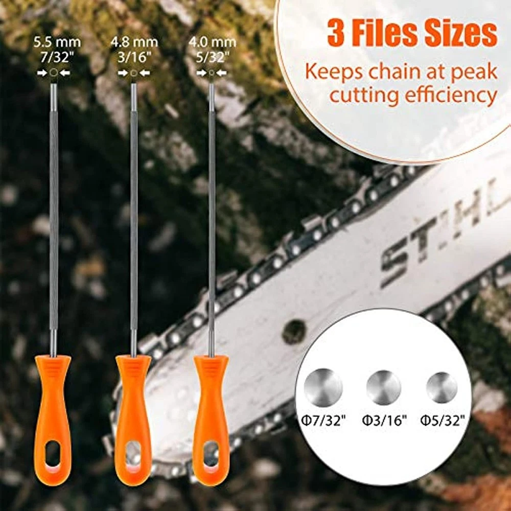 Round File 7/32 Inch Chainsaw File Handle Sharpener Suitable For Chainsaw DESCRIPTION Product features: -What You Get: You can receive 3pcs chainsaw chain sharpening files for fast and accurate cuts while maintaining and preserving the life of your chainsaw chain -Reliable material: These chainsaw sharpeners are made of high-strength steel, the handle is made of plastic, high-temperature quenching is carried out on the of the file, which has high strength and better wear resistance -Various Sizes: These round sharpening files come in 3 different sizes including 5/32 inch, 7/32 inch and 3/16 inch, 3 sizes are available for your better participation in sharpening your chainsaw , Help improve the cutting efficiency of the chainsaw. -Thoughtful Handle Design: The plastic handle can help you control this hacksaw file comfortably, it can also help you reduce fatigue and improve for precision, this plastic handle will bring you a comfortable using experience, can be used for a long time, plastic handle The large holes on the top also help with hanging -Wide Application: This grinding file can meet the needs of most people, for woodworking and metalworking enthusiasts, for carpenters and DIY projects in home, garden, workshop, . Package list: 3x chainsaw chain sharpening files Note: . The real color of the item may be slightly different from the pictures shown on website caused by many factors such as brightness of your monitor and light brightness. 2. Please allow slight manual measurement deviation for the data. POLICES Shipping Payment WARRANTY We only ship to confirmed ebay Order addresses. Please comfirm that your Order address is in line with your shipping address. Please kindly note that the c ombined shipping is not provided because the shipping fee is calculated by weight. Also, the each additional item means exactly the the same color and size. It takes about 7 -15 working days to US; about 10-30 working days to other countries. Transit time may be a little delayed because of the bad weather and customs inspection . If you do not receive your item within 30 working days since payment finished, please contact us immediately for further assistance. Payment must be completed within 5 days. If you have any problems about payment, please contact us via ebay message. We strive for 100% customer satisfaction! Positive Feedback is very important to us. If you have any questions, p lease feel free to contact us via "Ask seller a question" . We will reply your email within 24 working hours. On May 28, 2025 at 21:19:39 PDT, seller added the following information: