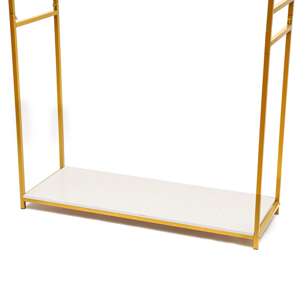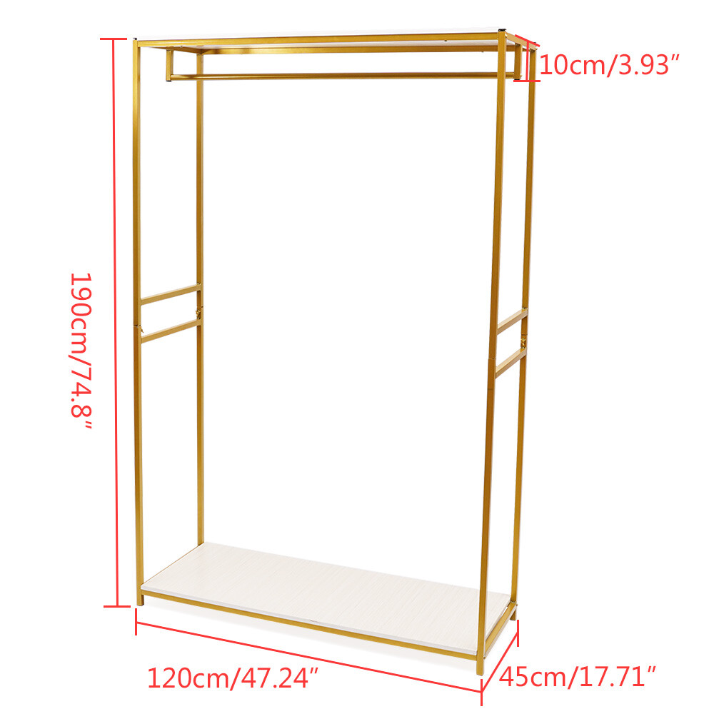 Application It is suitable for hanging clothes, dresses, scarves, towels, etc. in bedrooms, cloakrooms, laundry rooms, clothing stores, boutique stores, shops, studios, dance halls, and other places. Specification Color: Gold Style: Modern Shape: Rectangular Material: Iron, Wood Process: Spray Painting Assembly Required: Yes Mounting Type: Free Standing Square Tube Diameter: 20mm/0.79in Product Size: 120*45*190cm/47.24*17.71*74.8in Package Size: 121.4*46*14.5cm/47.8*18.11*5.71in Bar Load Load Capacity: 5kg/11.02lbs Bottom Shelf Load Capacity: 10kg/22.05lbs Gross Weight: 18.5kg/40.79lbs Package Included 1* Clothing Display Rack Other Accessories for Assembly Metal Cloth Storage Rack Garment Rack Freestanding Dress hanging shelf+Foot Pat Application It is suitable for hanging clothes, dresses, scarves, towels, etc. in bedrooms, cloakrooms, laundry rooms, clothing stores, boutique stores, shops, studios, dance halls, and other places. Specification Color: Gold Style: Modern Shape: Rectangular Material: Iron, Wood Process: Spray Painting Assembly Required: Yes Mounting Type: Free Standing Square Tube Diameter: 20mm/0.79in Product Size: 120*45*190cm/47.24*17.71*74.8in Package Size: 121.4*46*14.5cm/47.8*18.11*5.71in Bar Load Load Capacity: 5kg/11.02lbs Bottom Shelf Load Capacity: 10kg/22.05lbs Gross Weight: 18.5kg/40.79lbs Package Included 1* Clothing Display Rack Other Accessories for Assembly Notes Please allow the slight color difference caused by the shooting light and 1-3cm error due to manual measurement, and make sure you do not mind before ordering. Payment Delivery details Terms of sales About us Contact us Payment We accept ebay payment 。 Fees such as import duties, taxes are not included in the item price or shipping costs. These charges are the buyer's responsibility. Delivery details Shipping: 2-9 working days to: USA Terms of sales We maintain high standards of excellence and strive for hundred percent customer satisfaction. Feedback is very important to us. We hope that you contact us immediately before you give neutral or negative feedback, so that we can address your concerns. It is impossible to address issues if we do not know about them! About us Your satis faction is our ultimate goal. We work hard to earn your trust and future business. Our certified technicians have tested each item before shipping. The unit comes with 1 year limited warranty on all manufacturing defects. a) If you receive a defective item, you may return it or ask for a discount. Please contact us within 14 days after you receive the package. b) What you returned must be intact and in its original packaging as re? u. Customer is responsible for shipping costs of the returned item. c) We will cover the cost of shipping back t with the shipping rate indicated in the registration page. We will send you a new unit or refund the full payment you paid. Thank you. Contact us Business Hour Business Hour: Monday To Friday: 8:30 AM to 5:00 PM (Beijing China time) Due to time zones, our reply to your questions may not be immediately. But within above working time, we will reply your email within 24 hours. If it's non-workdays, please kindly be patient and wait till Monday. Please contact us with ebay message. Please feel free to contact us if you have any questions. Monday To Friday: 8:30 AM to 5:00 PM (Beijing China time) Due to time zones, our reply to your questions may not be immediately. But within above working time, we will reply your email within 24 hours. If it's non-workdays, please kindly be patient and wait till Monday. Please contact us with ebay message. Please feel free to contact us if you have any questions.