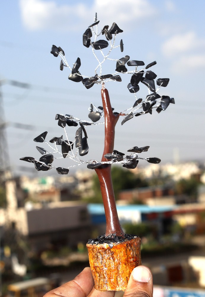75 Black Onyx Gemstone Silver Branch Bonsai Money Tree Decoration JW