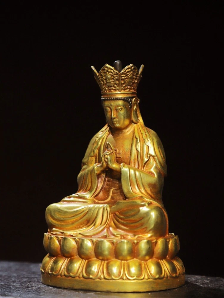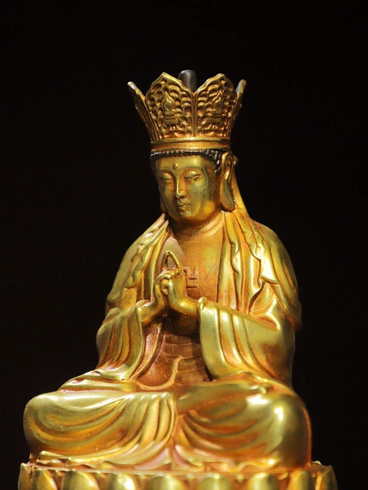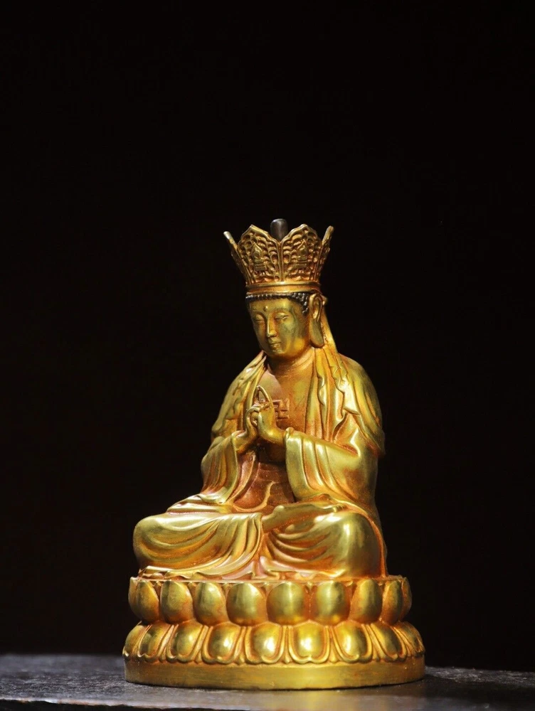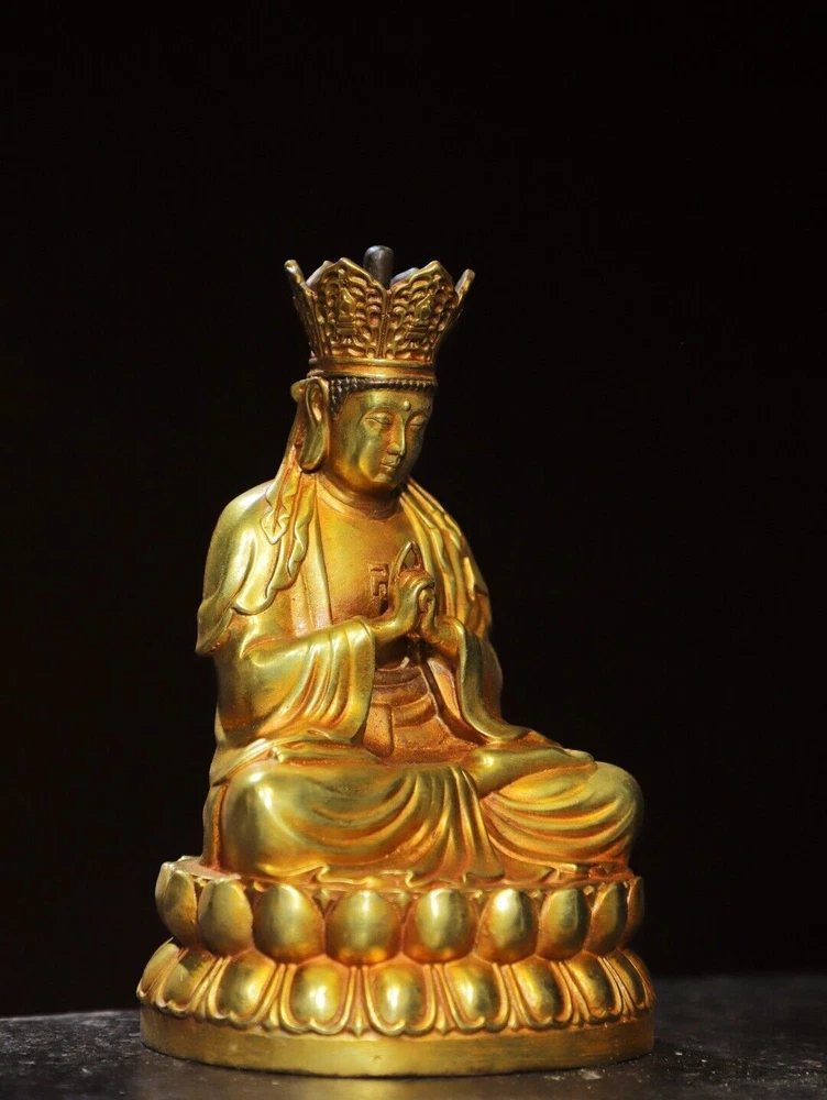 Size: Height: 19cm Wide: 12cm weight: 1.35kg Material: bronze gilt NOTE: Withno wood stand!!!! Condition: Good condition Origin: China