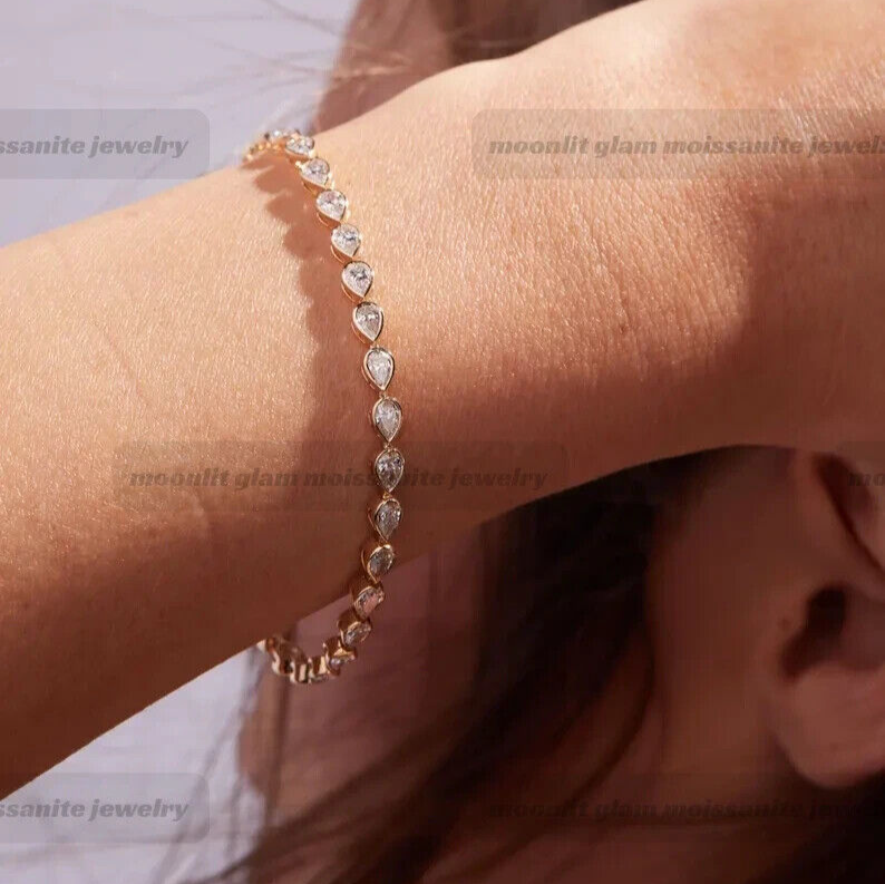 $ 8.1914K Yellow Gold Plated Tennis Bracelet with 1Ct Lab Sapphire for Women