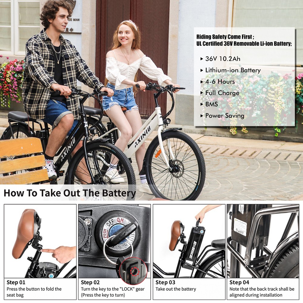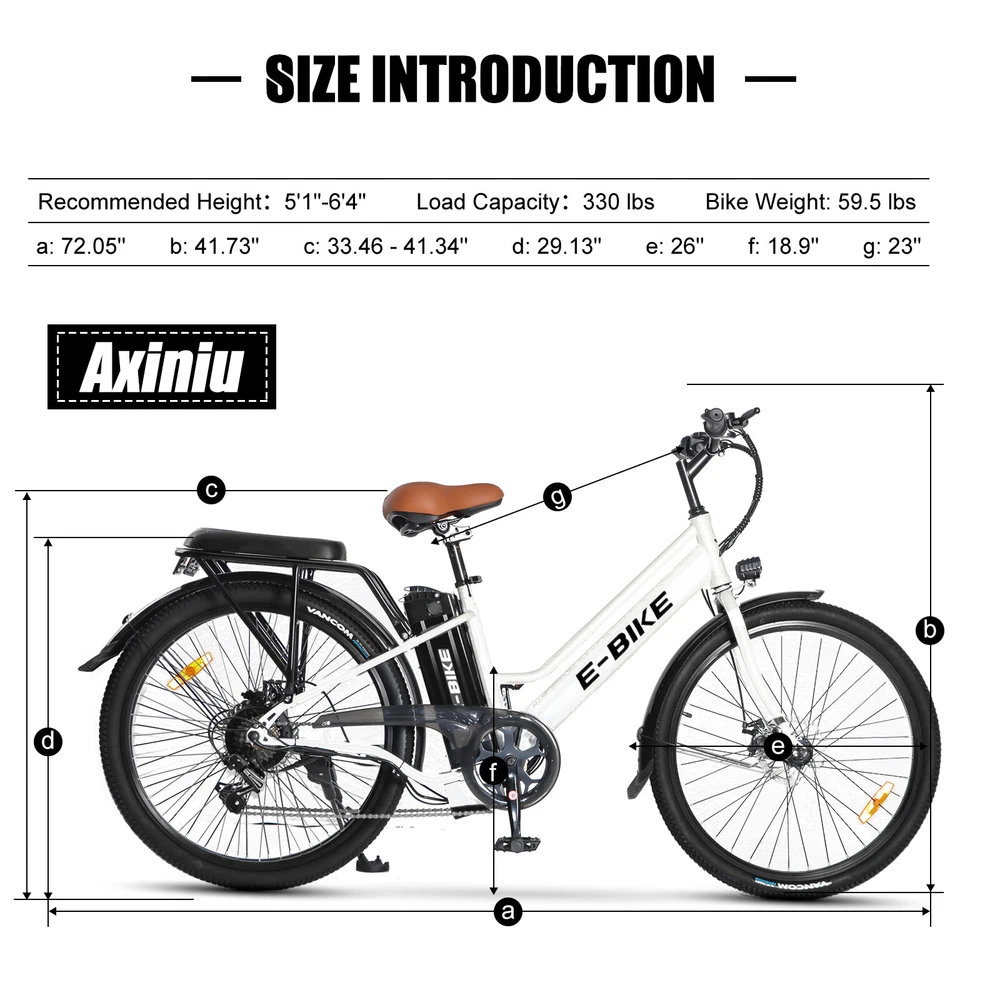 Store Categories Store Categories LED Work Light LED Light Bar LED Headlight LED Whip Light Led Fog Light Front&rear Bumpers Mount Bracket Home & Garden Children Toy discount items Business & Industrial E-bike UTV Accessories Other About this item 【Premium Performance&Endless Fun】 Our Novel Commuter E-Bike is a powerhouse of performance, with a 750 W brushless motor capable of reaching speeds of up to 25MPH. Its 7-speed transmission and front suspension system ensure a smooth ride, even over mildly hilly terrains, making it the ideal companion for commuting, traveling, and sightseeing. 【Adjustable&Dual】 Designed with a Step-Thru frame, and features a height-adjustable seat and angle-adjustable handlebar, ensuring a personalized and comfortable ride for all. Made from high carbon steel, it's solid and durable, with a weight capacity of 350 lbs, ensuring it's a durable and long-lasting investment. 【Superior Battery Range】 This electric bike is equipped with a high-performance 36V 13AH battery that charges quickly, taking only 4-6 hours to charge fully. In pure electric mode, the battery provides a long-lasting range of up to 25 miles. In Pedal-Assist mode, the range is even more impressive, extending up to 35 miles, allowing you to enjoy a worry-free riding experience and explore further than ever before. 【Diverse Riding Experiences】 Choose from three riding modes to cater to your specific needs. You can choose from full-electric mode for a silent and emission-free ride, pedal-assist mode for a more traditional cycling experience with a boost when you need it, and fully-pedal mode for a workout—expanding your riding options for a truly personalized experience. 【[Safety & Comfort Beyond Compare】 Axiniu E-bike features an LCD screen that displays key information and front & rear safety lights; this bike offers true safety and security. Enhanced by dual disc brakes and front shock absorbers, it delivers powerful stopping ability, ensuring both safety and comfort, even in all weather conditions. Features: 36V/13Ah Removable Built-in Lithium-ion Battery 750W Powerful Brushless Motor Large Intuitive LCD Display & Adjustable handlebar Customer questions & answers Q: Does this bike can be operated as a normal bike without the motor assist? A: Yes,this ebike has 4 riding modes,which are Ebike&Pedal-assisted&Normal bike,walk mode,if you don't turn on the display and power, you can ride as an ordinary bicycle. Q: How far can I go on a full charge? A: Up to 50 miles, more or less depending on your riding style, level of pedal-assist and/or throttle, rider weight, hills, and headwinds/tailwinds Q: What is the highest speed the e-bike will go? A: It can go up to 19MPH on pedal-assist mode. Q: What are the suitable height and weight for this Ebike? A: Recommended height is 5.1-6.4 inches. Max load capacity is 330 lbs. Q: Can I make a copy of the key ? A:Of course you can , we will provide 2 keys in original package and you could copy them as back-up Package: 1 X Electric Bicycle with Battery 1X Free Lock 1x battery charger The item is UL 2849 certified Payment Shipping Returns Contact us Feedback Payment We only accept payment via eBay by PAYPAL . Item will be shipped out within 24-48 hours after payment completed. Please make sure your eBay address is correct before you pay. All the unpaid case will automatically opened after 4 days because the ebay final value charge of the transaction. Shipping United States Shipped by USPS/UPS/Fedex , usually takes 3-7 working days to complete delivery. Package will be sent out within 24-48 hours after the pament is cleared. Pick-up is unsupported service. We will not be responsible for any delivery failure due to unclear address. Delivery is not available on weekends, public holidays or after business hours. Returns We will accept returns or refund or exchange if they are unused and unmarked within 60 days . If you received wrong of defective products, please take photos and contact us to confirm. We must protect your interest as promsied. Remember to contact us via eBay message firstly. Please don't open the return request. Thanks in advance! Contact us Office Opening Times: Monday to Friday-9:00AM-18:00PM Beijing Time. We do our best to respond within 12-24 hrs. If no response within 24 hrs, please check the spam in your mail box. Ask us about bulk discounts if you want to buy 3 or more. Our store is good ebay seller and we are renowned auto suppliers seller in China who had earned the highest feedback on high quality we have factory in HongKong. Our Company is a Branch company that of a manufacturer which producing the lighting equipment and accessories for vehicles. We move and in charge our main business in E-commerce on eBay nowadays. Feedback We apprecaite your business and strived to improve our customer service and our commitment to quality. We will leave a postive feedback immediately after payment is received. We appreciate a positive feedback as much as you do. Please do NOT leave negative or neutral feedback. If for some reason there is any issue with the purchase, please contact us prior to leaving feedback, and we will be glad to work with you to have it resolved.