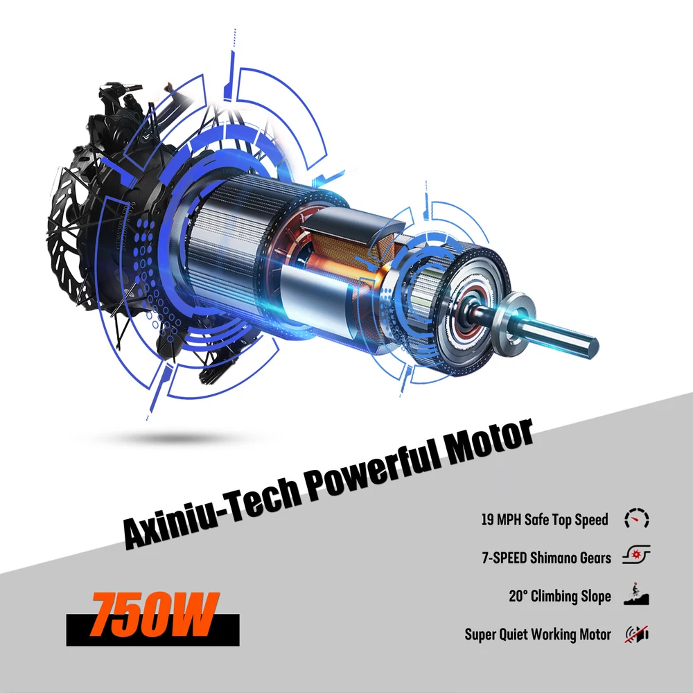 $ 424.0526" Electric Bike Bicycle 22Mph Commuter City Bikes Adults 750W E-bike Axiniu