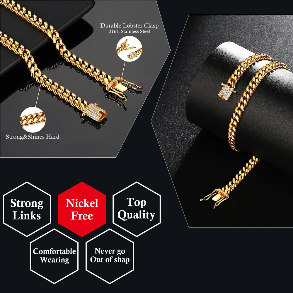 SAFE & SECURE SHOPPING 100% SATISFACTION GUARANTEED FAST SHIPPING 7.5-30'' 18K Gold Color Stainless Steel Cuban Link Chain Necklace HipHop Jewelry Product Description Welcome to my store Description: About us: Please don't leave us neutral or negative feedback before contacting us. We will do our best to resolve your issue until your satisfaction. Contact us: If you have any questions or advice, please don’t hesitate to contact us. we will reply within 24 hours on weekdays. if there have any problem when you receive your item, or you have any questions about the shipping, please don't leave negative or neutral feedback before you contact us. we promise to help you solve the problem well. thanks in advance. Payment Shipping Returns Contact Us Feedback LIMITED LIFETIME WARRANTY Payment We accept All Type of Payment. Shipping We only send items to the registered eBay address. Items will be shipped within 3 business days from the date payment is received (not include public holiday and weekend) Most times you will receive your order within 8-13 business days after we transfer your package to the delivery company. We offer combined shipping for buying multiple item. As per eBay regulations, import duties, taxes, and customs charges are the buyer's responsibility. Returns If for any reason, your jewelry does not fit, need different size, or simply decide to send it back for a refund, you can simply fill the exchange sheet included in the package. If you need more assistance, please feel to contact us and we will be happy to assist you. All items must be in new condition for refund to be applied. If the item that you returned to us is damaged, altered, or not in original condition, it will not be accepted for refund. Contact Us We are proud to offer quality service and we glad to see you in our eBay store. The larger the order, the bigger the discount! If you have any questions about our products, please do not hesitate to contact us.Thank you for your interest in our company, we hope that you will be satisfied with the service and quality of our products. If you need cooperation, please contact us, We usually reply eBay messages no later than 24 hours except that we are off on weekends. Feedback We appreciate your positive feedback and 5-star Detailed Seller Ratings (DSR), and will do the same for you on eBay at the same time. We value every customer. Please make sure you contact us before leaving a negative or a neutral feedback, or giving us a low DSR.There are always ways to work things out to meet your satisfaction. LIMITED LIFETIME WARRANTY We offer lifetime warranty on the ring and the stones for any defects. If there is a defect, such as a stone falling off, we will inspect your item. If the damage is due to a manufacturing defect, we will be more than glad to repair it and even exchange it if necessary. Warranty does not cover normal wear and tear, lost products or abused products. You can also contact us if you want it re-polished so it looks like the day you first received it. Copyright © 2022 Tongtool 0.5ct Round Cut Moissanite Heart Pendant 925 Sterling Silver Necklace for Women 38.98 USD Free shipping 2.52Ct D Color VVS1 Moissanite 925 Silver Huggie Hoop Earrings for Women New 75.03 USD Free shipping 4ct 3mm Moissanite 925 Sterling Silver Tennis Earrings for Women 94.99 USD Free shipping 1.98 Ct Round Cut Moissanite Tassel Stud Drop Earrings Real 925 Sterling Silver 54.13 USD Free shipping 6.5mm Moissanite Tennis Bracelet Solid 925 Sterling Silver GRA VVS1 for Women 35.99 USD Free shipping 925 Sterling Silver Heart Photo Locket Pendant Necklace 18 inch for Women Men 56.98 USD Free shipping 925 Sterling Silver Herringbone Chain Necklace 1.7mm/3mm Women Men 12.33 USD Free shipping 1.32Ct MOISSANITE Full Eternity Band Ring 925 Sterling Silver Engagement Ring 33.98 USD Free shipping 1CT MOISSANITE Wedding Ring 925 Silver Real 925 Sterling Silver -Pass Tester 47.48 USD Free shipping 2-3CT MOISSANITE Women Engagement Ring 925 Sterling Silver Fashion Jewelry 43.99 USD Free shipping