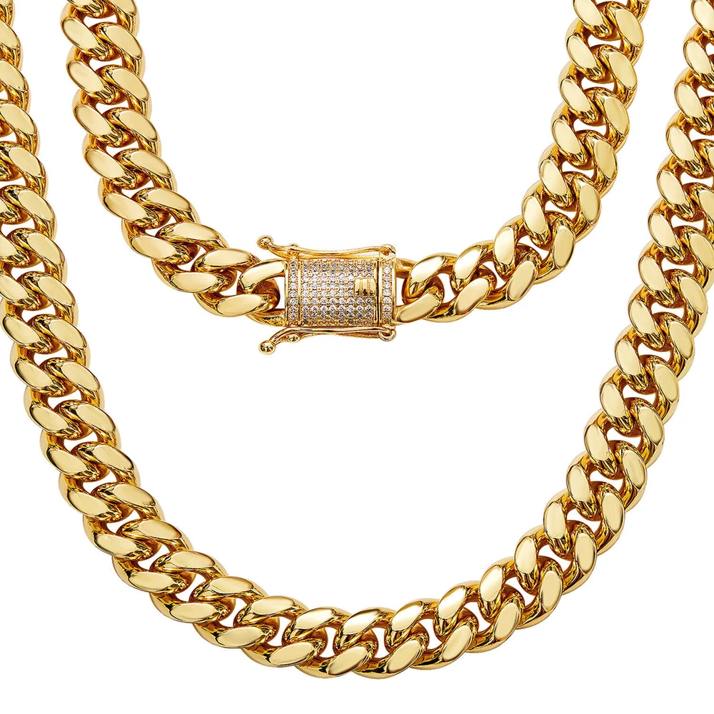 $ 7.9418K Gold Stainless Steel Cuban Link Chain for Men 7.5-30 Inch
