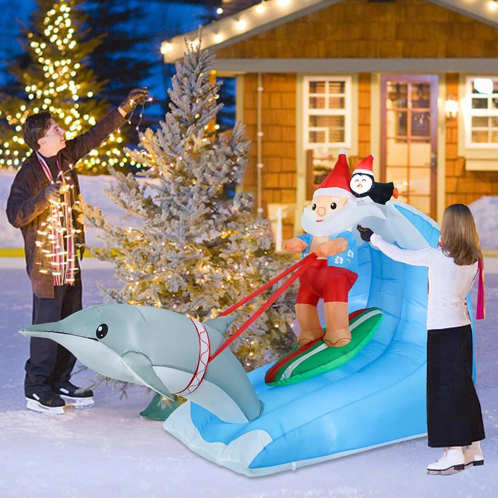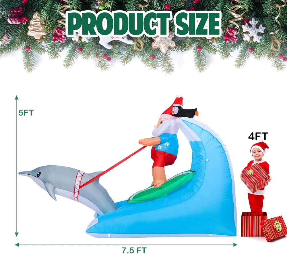 Cute Appearance Design: 7.5Feet Long Christmas inflatables is perfect for use as indoor-outdoor Christmas decorations, which will add more festive atmosphere and fun to your Christmas and delight your neighbors, guests, children and family. Easy Setup & Bulit-in Bright LED Lights: Our Christmas inflatable has 2 built-in fan and multiple built-in LED lights. When plug it into a standard electrical outlet, it will inflate in seconds and illuminate your Christmas display to create a Christmas warm atmosphere. It was easy to take down and store for next Christmas. High Quality: Christmas decorations outside is made of waterproof soft polyester fabric, strong and durable, easy to fold after. Harsh climate only adds to its ambiance without affecting its use. Premium Service: Vipush takes great gratitude to our customers and always provide best service. Any in-sale or out-sale problems, please contact us freely. Perfect Size & Accessories: Except the blower and storage bag, the inflatable Christmas decoration comes with 4 stakes secure it on the tree or wall. These accessories can be firmly fixed on the ground. Product description