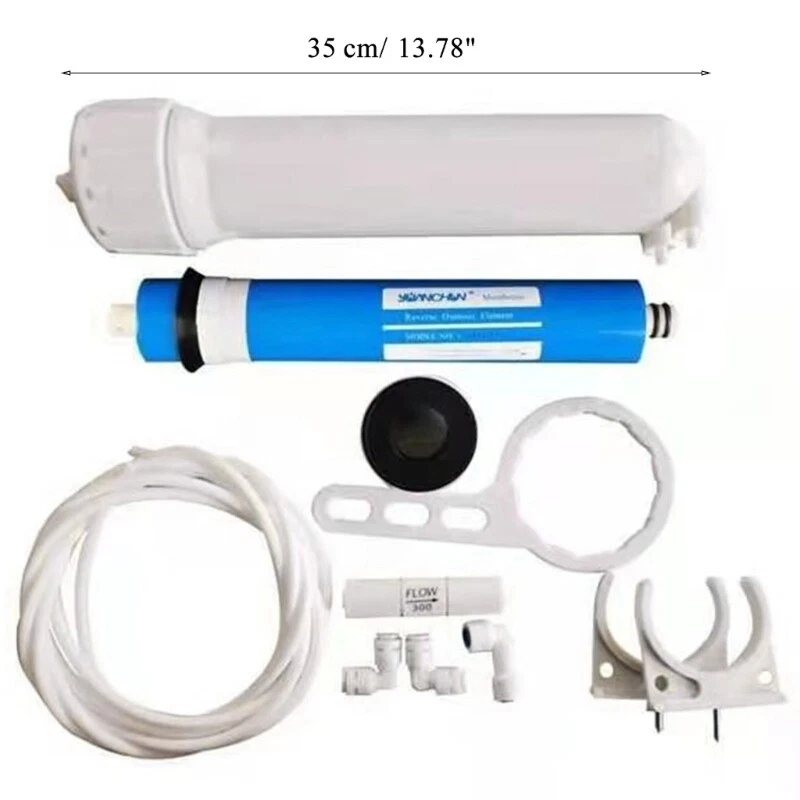Features: brand new and high quality brand new and high quality Household 1812 membrane are mainly used in various domestic water, hospitals, laboratories and other small water system equipment. The housing can accommodate most standard 1812 membrane The ribbed lid and for shell are all one-piece injection molded parts, so no solvent or glue is needed in the manufacturing process. The ribbed lid uses extreme square threads and two O-rings to ensure a leak-proof seal. [Not leaking] RO membrane housing adopts double-sealed no water bypass or water leakage problems, thickened bowl increases pressure resistance and explosion-proof strength. [Durable structure] Made of FRP and ABS, the structure is thicker, and the membrane for shell has better pressure resistance, excellent explosion-proof and heat insulation It can resist acid, ammonia, oil, electroplating solution and other corrosive chemicals. [High pollutant retention rate] Remove 97% of the total dissolved solids in the water. This film is only 0.1nm, which is 50 times smaller than heavy metals. Therefore, these reverse osmosis membranes can easily remove heavy metals, harmful minerals and other soluble salts in water. Enjoy your water with confidence! Specifications: Material: ABS Weight: 750g Size: As picture shows Package Includes: x Reverse Osmosis Membrane for Shell x Vontron Membrane 75G 3 x Elbow x Check for x 300cc Restrictor x RO Diaphragm Wrench x Winding Wire 2 x Clamp x 2m PVC Hose note: 1.Please allow 1-2cm errors due to manual measurement, make sure that you do not mind before you order. 2.Due to the difference between different monitors, the picture may not reflect the actual color of the item.