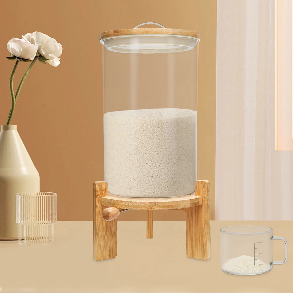 This glass storage container is a game-changer for keeping grains, cereals, and pet food fresh! The airtight bamboo lid locks out moisture and pests, while the sturdy wooden stand adds stability. The 7.5L capacity is perfect for bulk storage, and the clear glass lets me see contents at a glance. Love how it keeps my pantry organized and food lasting longer—definitely worth it!