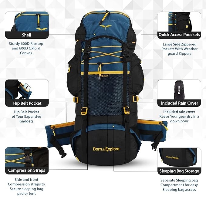Impulse 75L Rucksack Travel Backpack for Men | Hiking, Trekking, and Camping Bag | Large Capacity Tourist Bag for Travel (Thames) Description: Embark on your next adventure with the Impulse 75L Rucksack Travel Backpack , designed for the modern traveler and outdoor enthusiast. Whether you’re hiking, trekking, camping, or exploring new destinations, this spacious and durable bag is engineered to carry all your gear with ease. With a 75-liter capacity, this backpack offers ample storage space for everything you need while keeping you organized and comfortable during your travels. Key Features: Generous 75L Capacity : With a spacious 75-liter capacity, this travel rucksack offers plenty of room to store clothes, camping gear, trekking equipment, and other essentials for your outdoor adventures. Versatile Design : Ideal for hiking, trekking, camping, and traveling, the Impulse Rucksack is a versatile companion for a wide range of outdoor activities. Perfect for long trips, weekend getaways, and extreme expeditions. Durable & Water-Resistant : Made from high-quality, water-resistant materials, this bag is designed to withstand tough weather conditions and rough environments, keeping your belongings safe and dry. Ergonomic & Comfortable Fit : The backpack features padded shoulder straps and a breathable back panel for added comfort and support. The adjustable straps ensure a secure and personalized fit, reducing strain during long treks or extended use. Multiple Compartments : Equipped with several compartments, including side pockets, zippered sections, and a large main compartment, this bag keeps your gear organized and easily accessible. It also includes a top-loading main compartment for efficient packing. Heavy-Duty Zippers & Buckles : Built with sturdy zippers and secure buckles to ensure your items stay safely stored throughout your journey. Stylish Thames Design : With its sleek and functional design, the Impulse Rucksack combines durability with a modern aesthetic, making it both practical and stylish for outdoor excursions. Breathable Mesh & Ventilation : The back panel features a breathable mesh design to enhance airflow, preventing sweat buildup and keeping you cool on your hikes or travels. Why Choose Impulse? Impulse is committed to delivering high-quality, durable outdoor gear designed for both functionality and style. Whether you're an avid hiker, camper, or frequent traveler, the Impulse 75L Rucksack is built to keep up with your adventures, offering both comfort and reliability. Specifications: Material : High-quality water-resistant fabric Capacity : 75L Dimensions : Large and spacious for optimal packing (please refer to product images for detailed sizing) Straps : Adjustable padded shoulder straps, sternum strap, and waist belt for comfort Color : Thames (Stylish and versatile) Features : Multiple compartments, heavy-duty zippers, breathable back panel, and ergonomic design Perfect for Adventure Seekers Whether you’re planning a long trek through the mountains or a weekend camping trip, the Impulse 75L Rucksack is your ultimate travel companion. With its ample storage, comfortable design, and durable build, this bag is ready to take on any adventure.