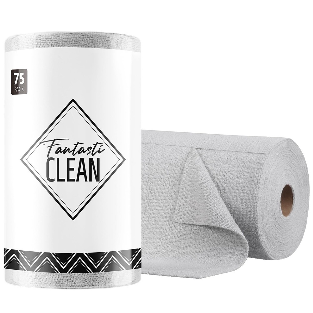 Microfiber Cloth Roll - Durable, Absorbent, and Reusable Cleaning Solution Quick Tear-Away Rag Reach: Swiftly grab a microfiber cloth from our convenient rolls for instant cleaning. Keep them stashed everywhere at home, in your shop, car, or garage for easy access. Alternative to Paper Towels: Designed for durability, these cloths are washable and reusable up to 50 times. The sturdy 175gsm microfiber ensures highly effective cleaning results. Exceptional Absorption: Handle any spill, wet or dry. These cloths can absorb up to 5 times their weight in water, capturing more dirt and drying quicker than conventional towels while staying odorless. Flawless Clean: Expect lint-free and streak-free results every time. Perfect for cleaning spills, wiping surfaces, and dusting without leaving any residue or harm. Performs exceptionally on glass, dishes, and smooth surfaces. Gentle and Premium Material: Made from 87% Polyester and 13% Polyamide, each 12'' x 12'' cloth is soft yet long-lasting. Comes on a convenient roll of 75-count microfiber cloths.