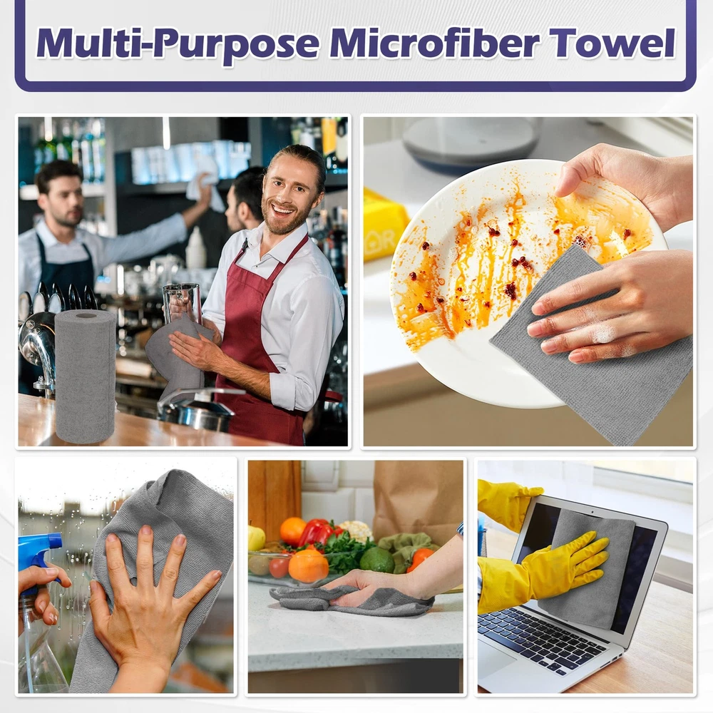 Microiber Cleaning Cloth, the ultimate cleaning companion for your home! Made with super soft and lint-free fibers, this cloth ensures a scratch-free cleaning experience for your clothes, paint, and other surfaces. Its high water absorption capacity allows you to quickly and effortlessly clean even the tiniest dust particles that are invisible to the naked eye. Whether it's household appliances, kitchenware, automobiles, bathtubs, windows, glass, or mirrors, this cloth delivers exceptional cleaning results, leaving your home sparkling clean. With its durability and long-lasting performance, you can rely on this cloth for daily use, saving you money in the long run. Experience the difference with and enjoy the convenience of reusable, lightweight, and highly absorbent cleaning tool. Get yours today and discover the joy of effortless cleaning! Quick Tear-Away Design: Packaged in a roll, these cleaning cloths can be easily torn off as needed, enhancing cleaning efficiency and convenience in home, kitchen, garage, car, electronics, and industrial spaces. Perfect Alternative to Paper Towels: Whether you're looking for a paperless alternative, want to avoid constantly spending money on consumable paper products, or simply want something more durable and soft than a paper towel, the microfiber towel roll is the perfect solution for you. Soft and Lint-Free: These microfiber cleaning cloths are ultra-absorbent and ultra-soft, attracting and removing dirt and dust without worrying about scratching surfaces. They leave no lint or fibers behind after use. These shop towels are a must-have for tasks such as changing oil and refilling fluids. Versatile Cleaning Towels: They are strong and absorbent enough to be used as disposable washcloths for your face or in the shower. These cleaning rags are perfect for housekeeping, washing dishes, cleaning glass surfaces, and cleaning cars. The tear-away towel roll offers a convenient and reliable solution for all your cleaning needs. Reusable and Machine Washable: These microfiber cleaning cloth rolls are easy to clean and dry quickly. Each sheet is washable and reusable up to 50 times. The microfiber towel rolls make your cleaning more efficient and reduce waste.