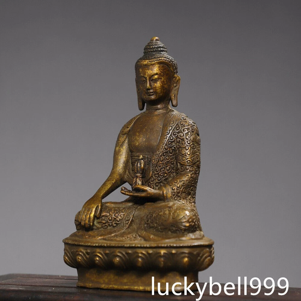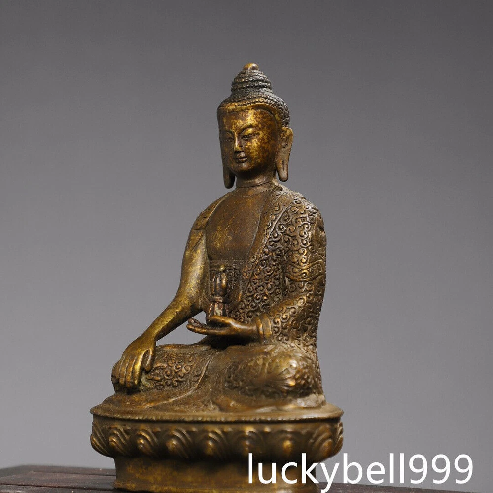 7.5-inch Antique Tibetan Bronze Gilt Tathagata Buddha Temple Statue